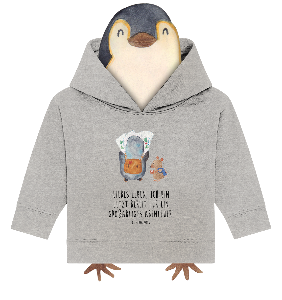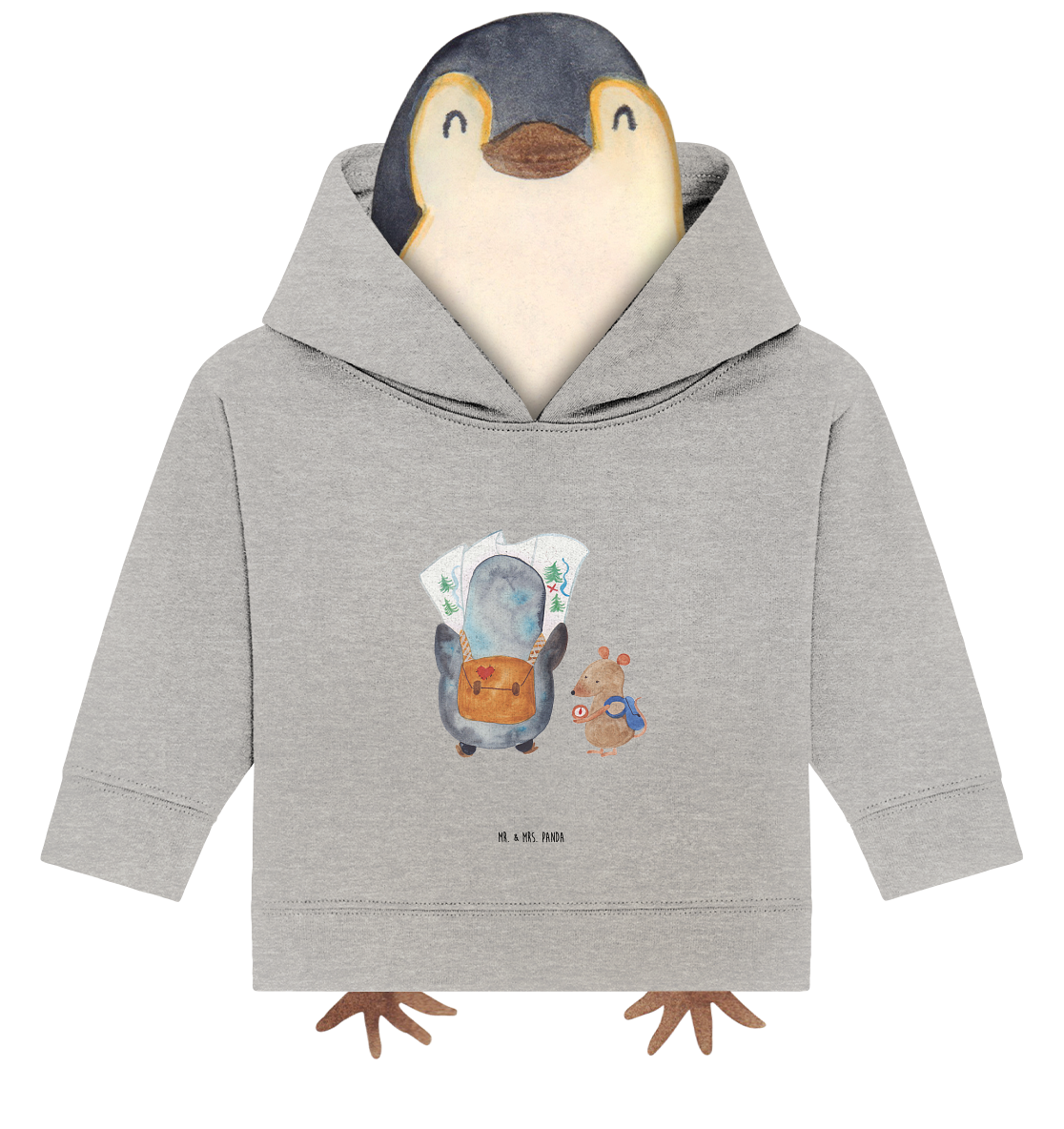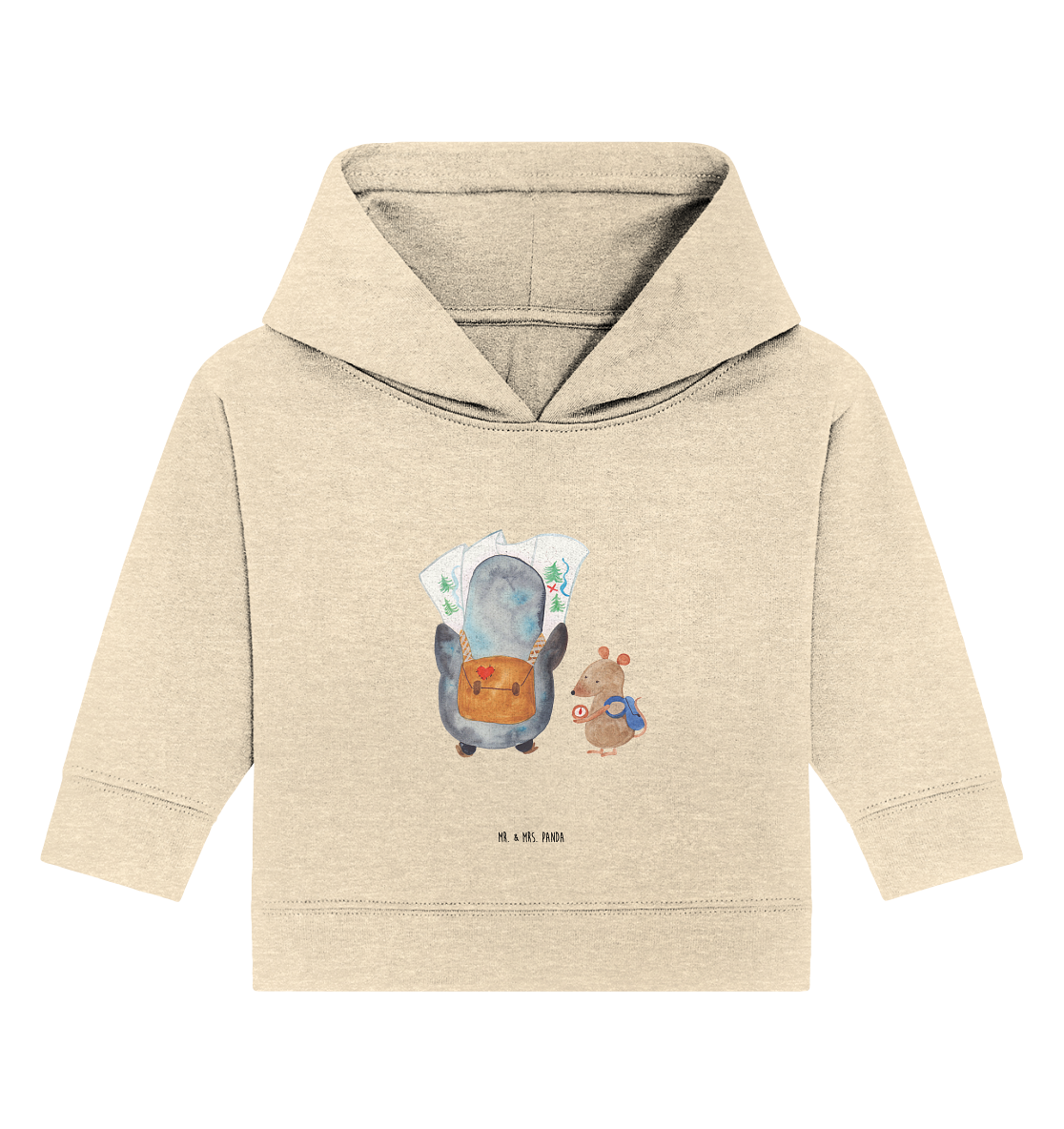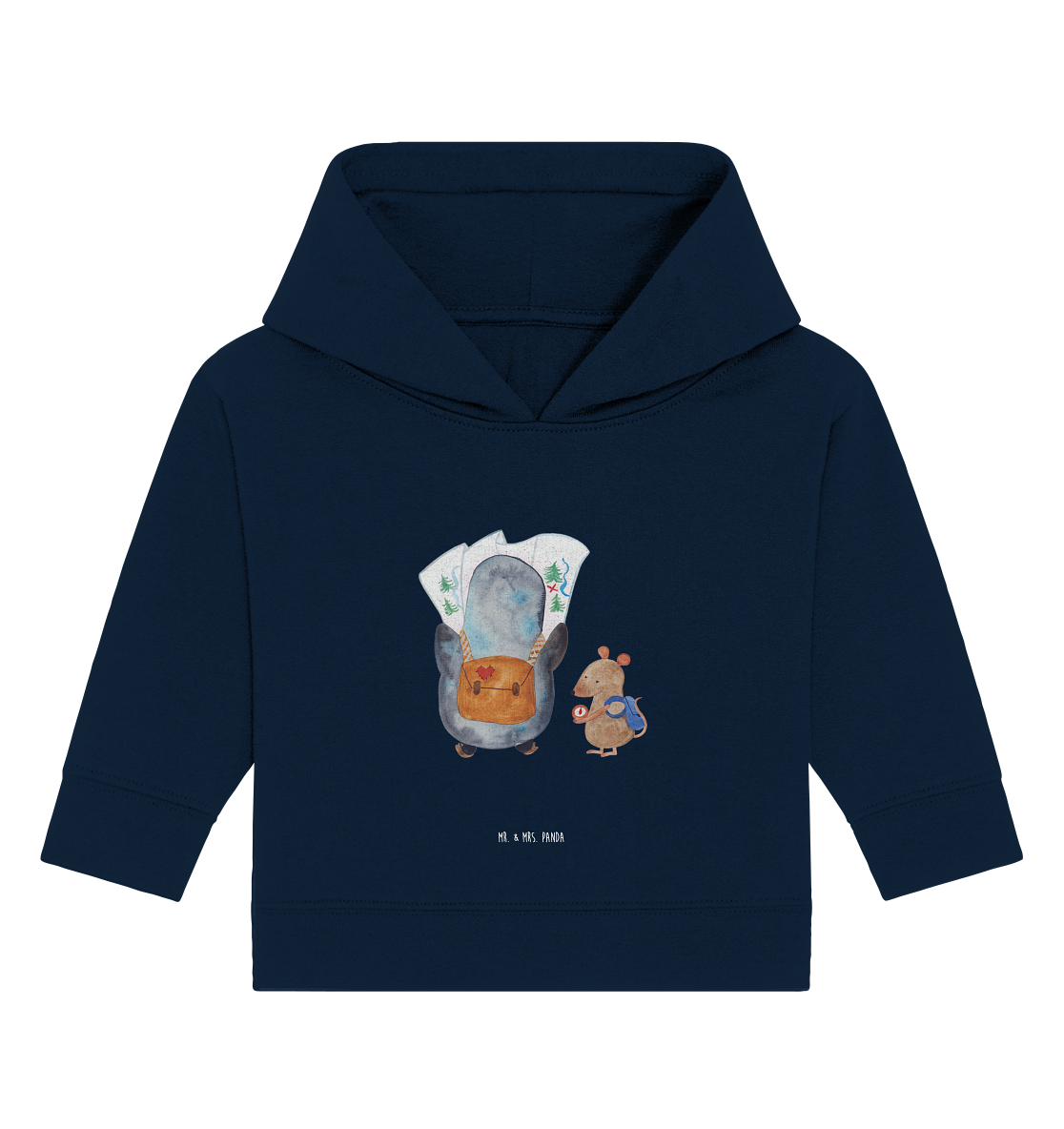 Organic Baby Hoodie Pinguin & Maus Wanderer - 12. - 18. Monat - mit Spruch - French Navy