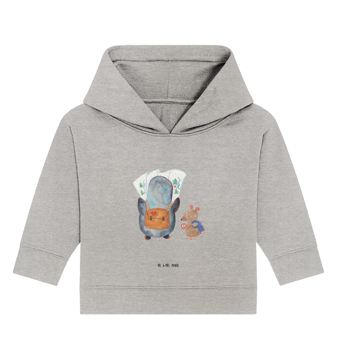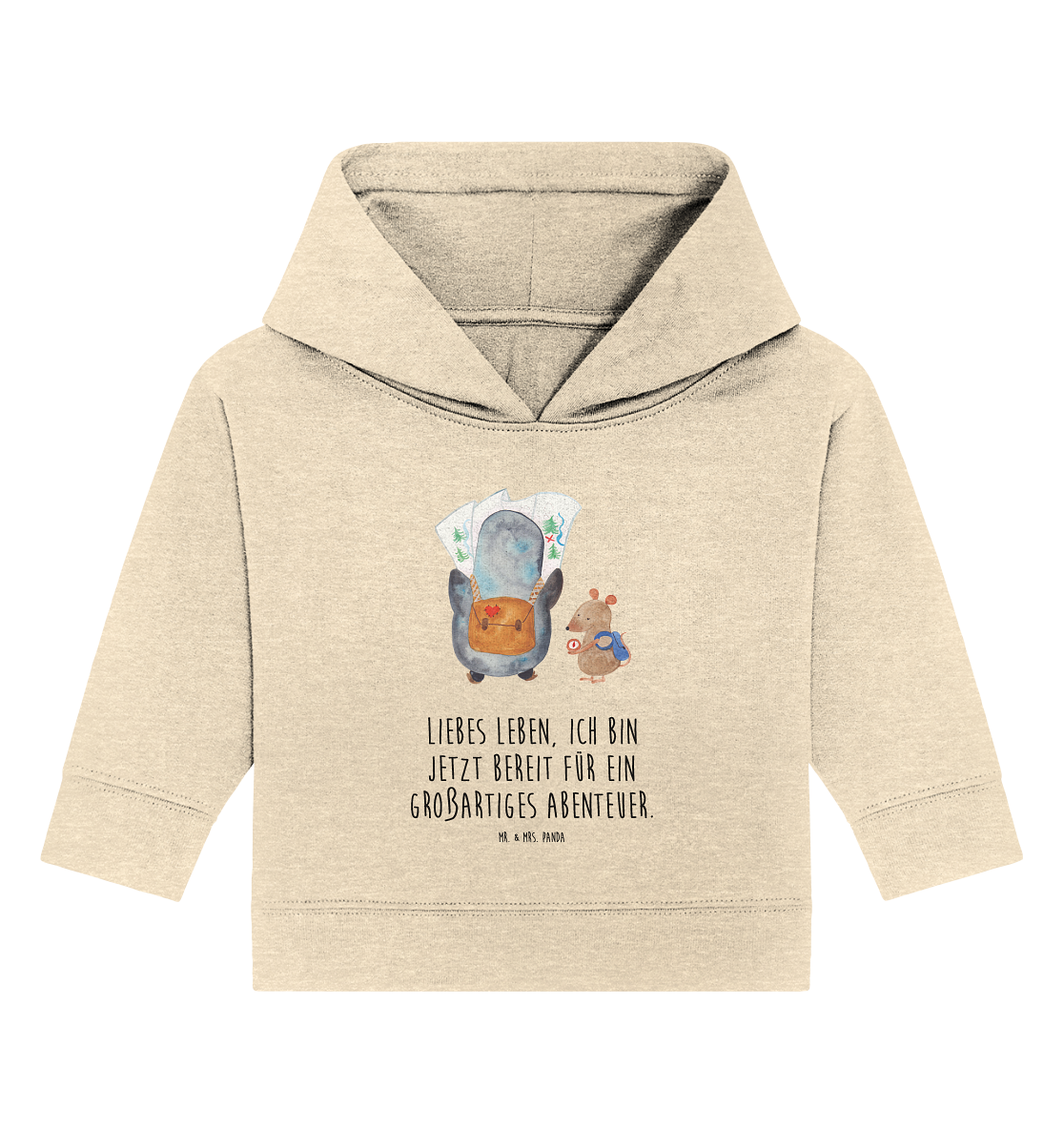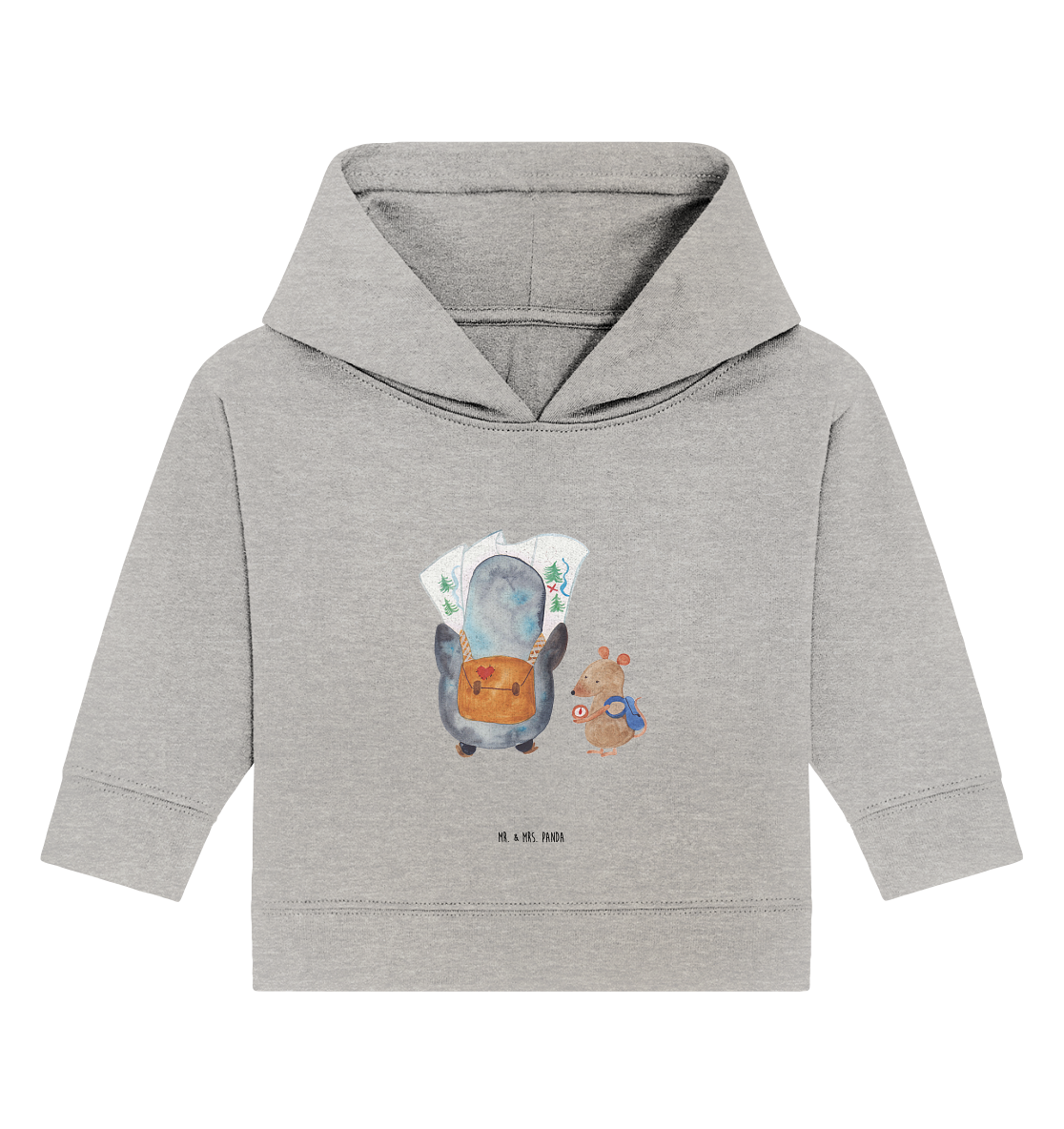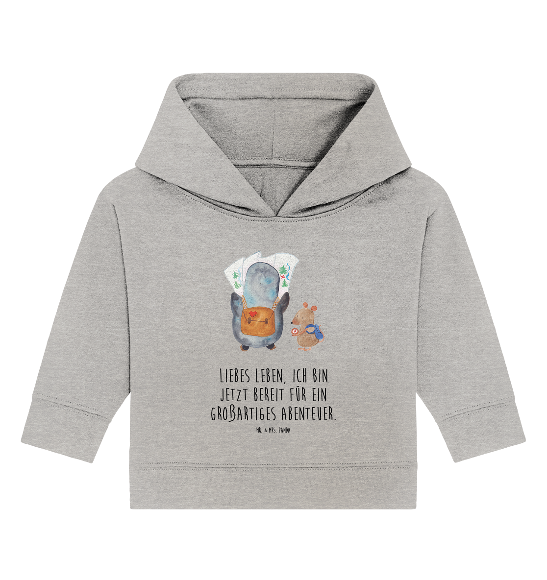 Organic Baby Hoodie Pinguin & Maus Wanderer - 12. - 18. Monat - mit Spruch - French Navy