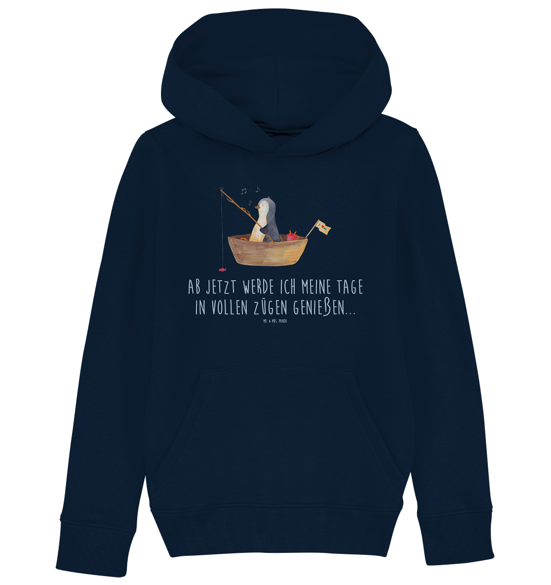 Organic Kinder Hoodie Pinguin Angelboot - 12-14 Jahre (152/164) - mit Spruch
