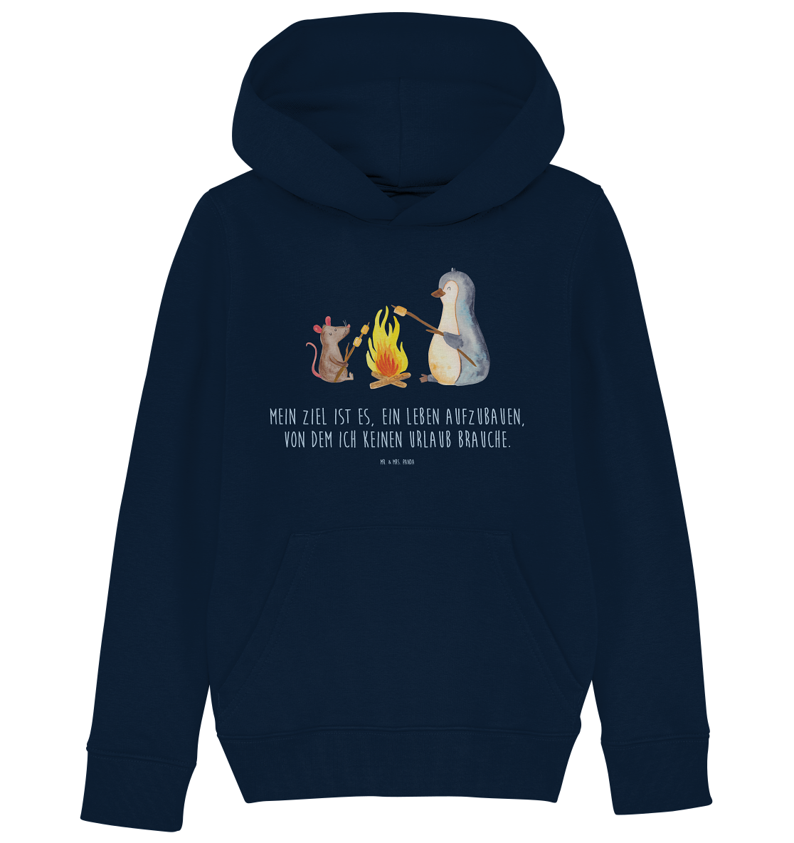 Organic Kinder Hoodie Pinguin Lagerfeuer - 12-14 Jahre (152/164) - mit Spruch