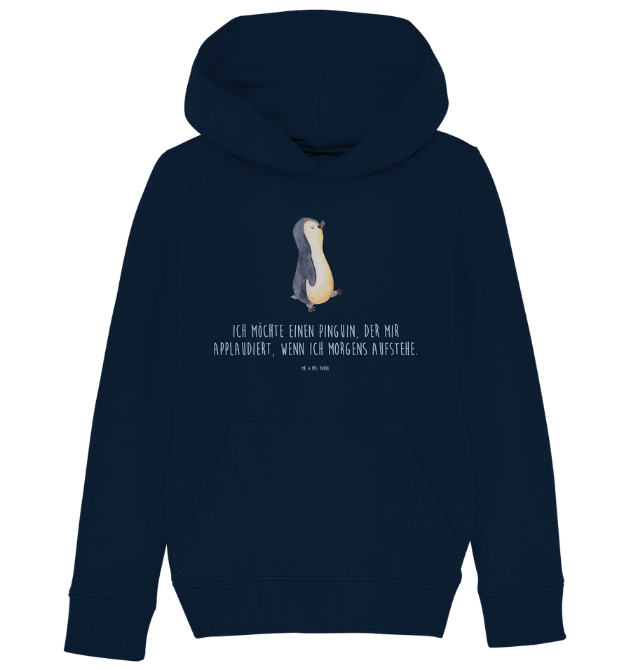 Organic Kinder Hoodie Pinguin marschierend - 12-14 Jahre (152/164) - mit Spruch