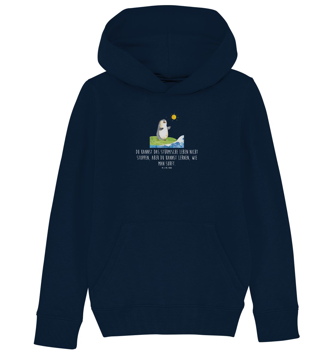 Organic Kinder Hoodie Pinguin Surfer - 12-14 Jahre (152/164) - mit Spruch