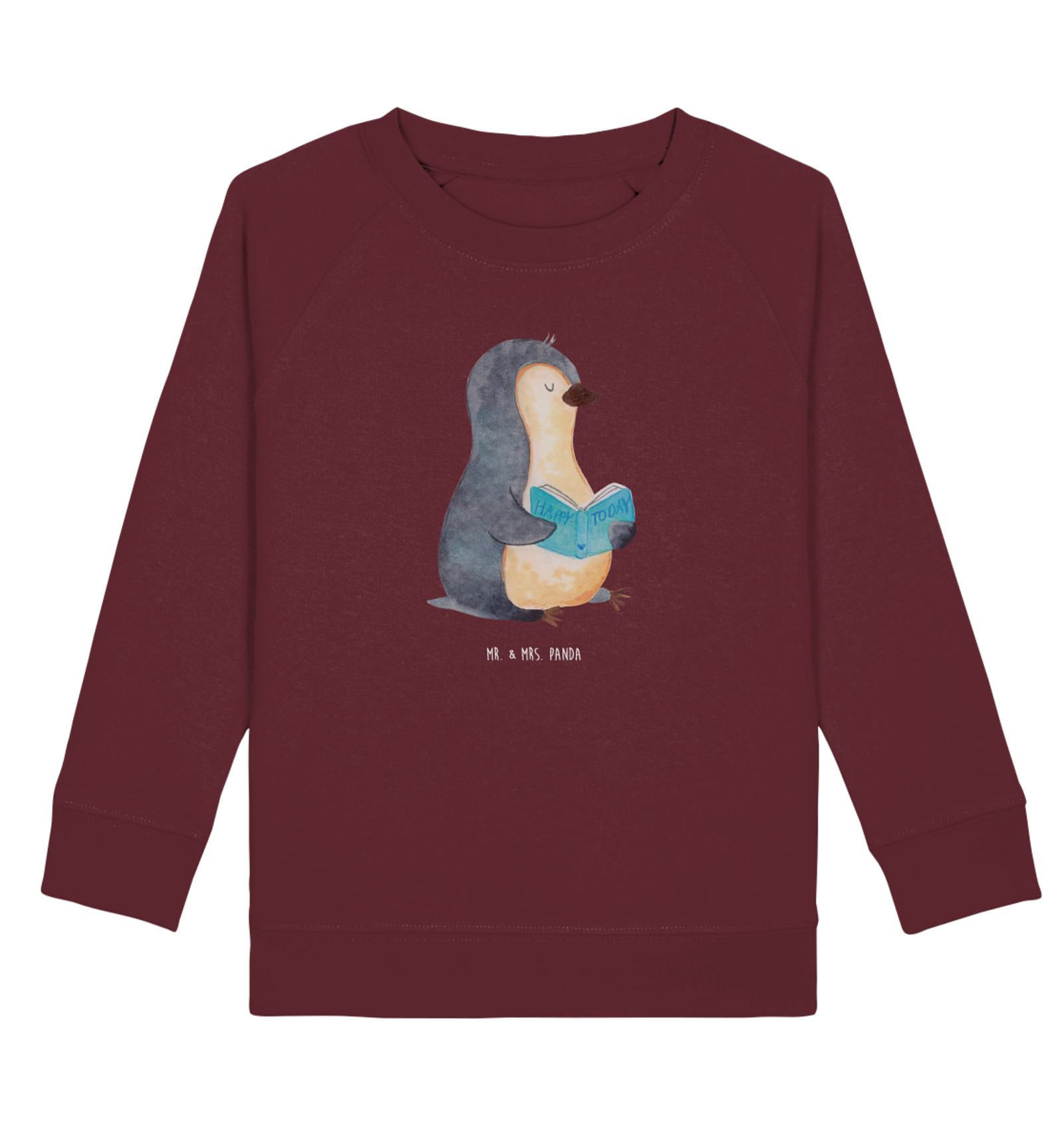Organic Kinder Pullover Pinguin Buch - 12-14 Jahre (152/164) - mit Spruch - Burgundy