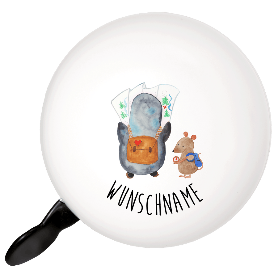 Personalisierte Fahrradklingel Pinguin & Maus Wanderer
