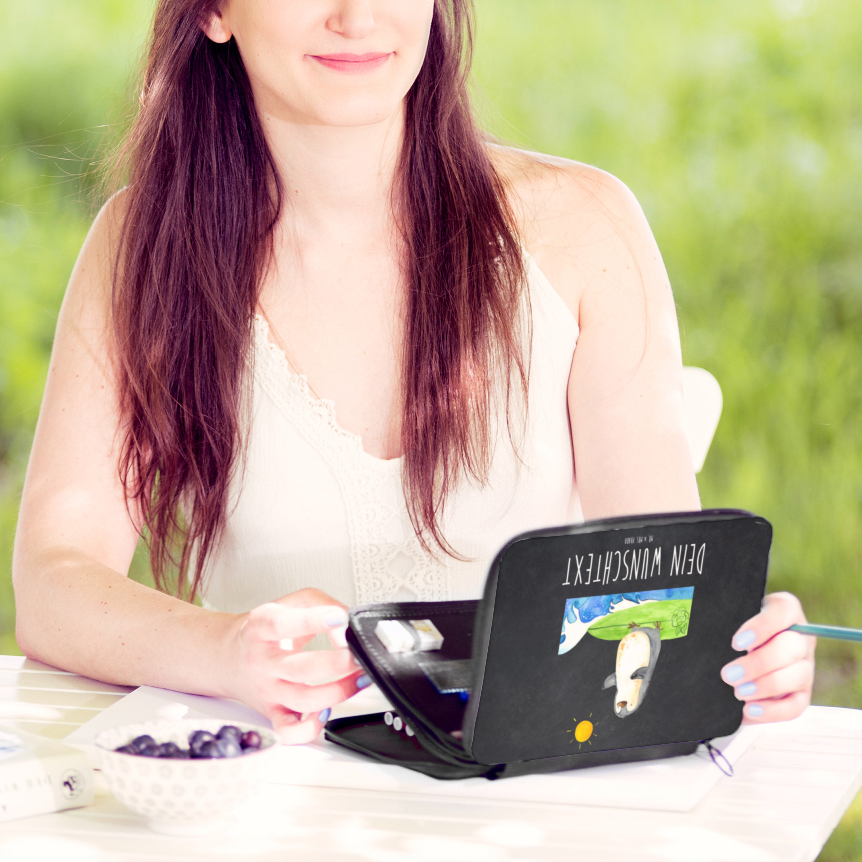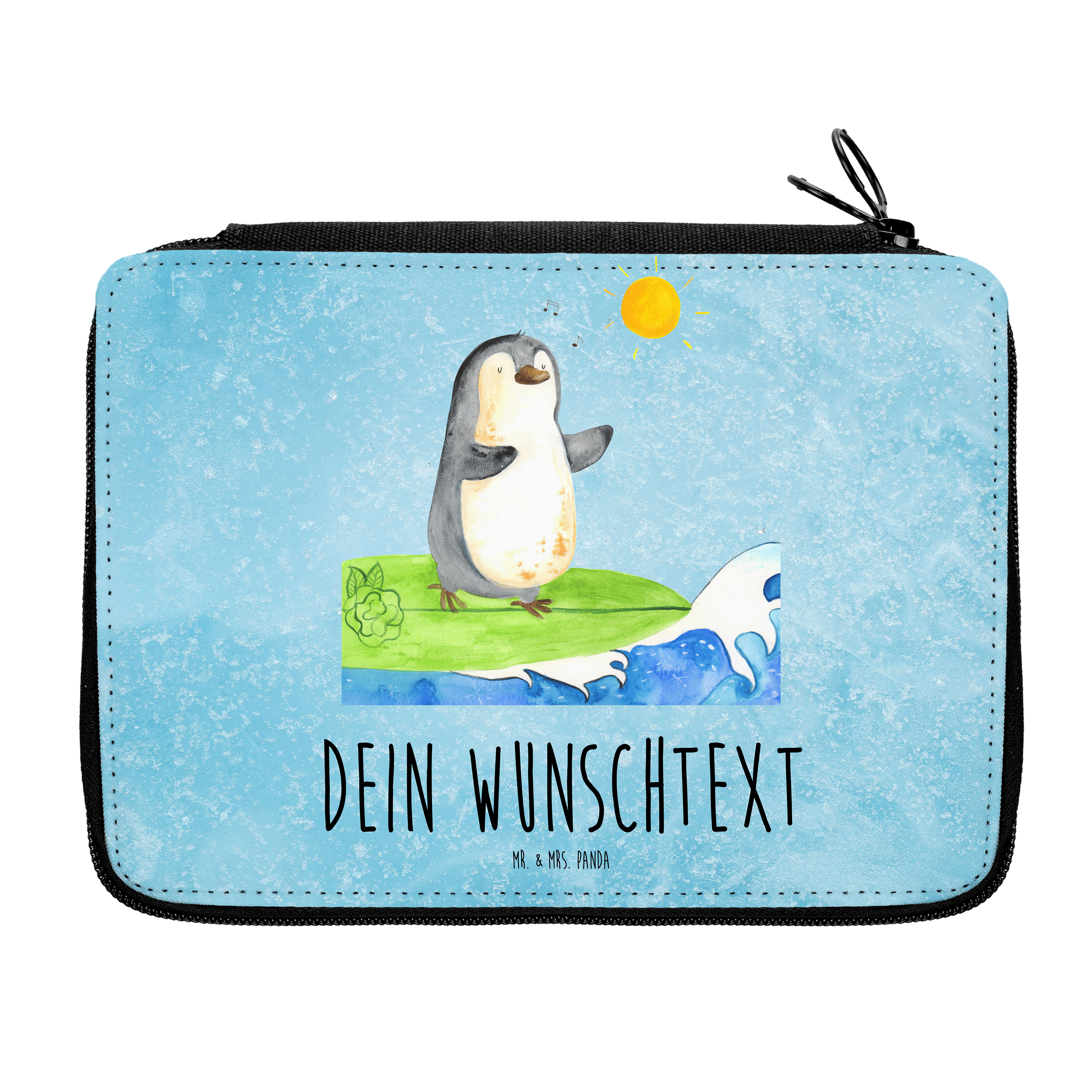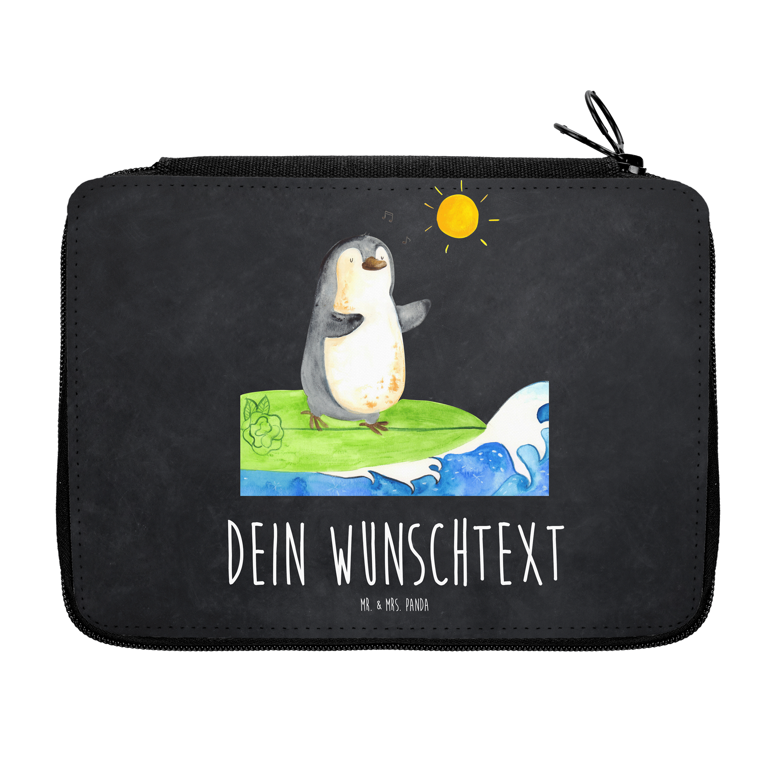 Personalisierte Federmappe Pinguin Surfer - Kreidetafel