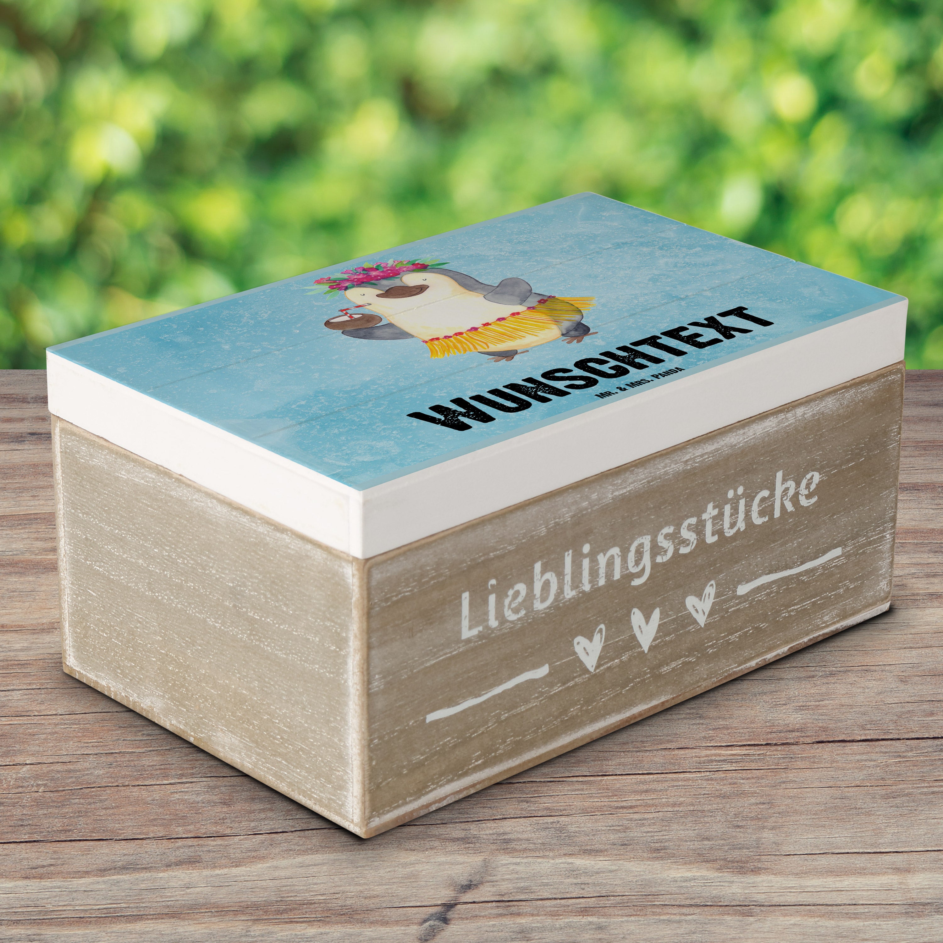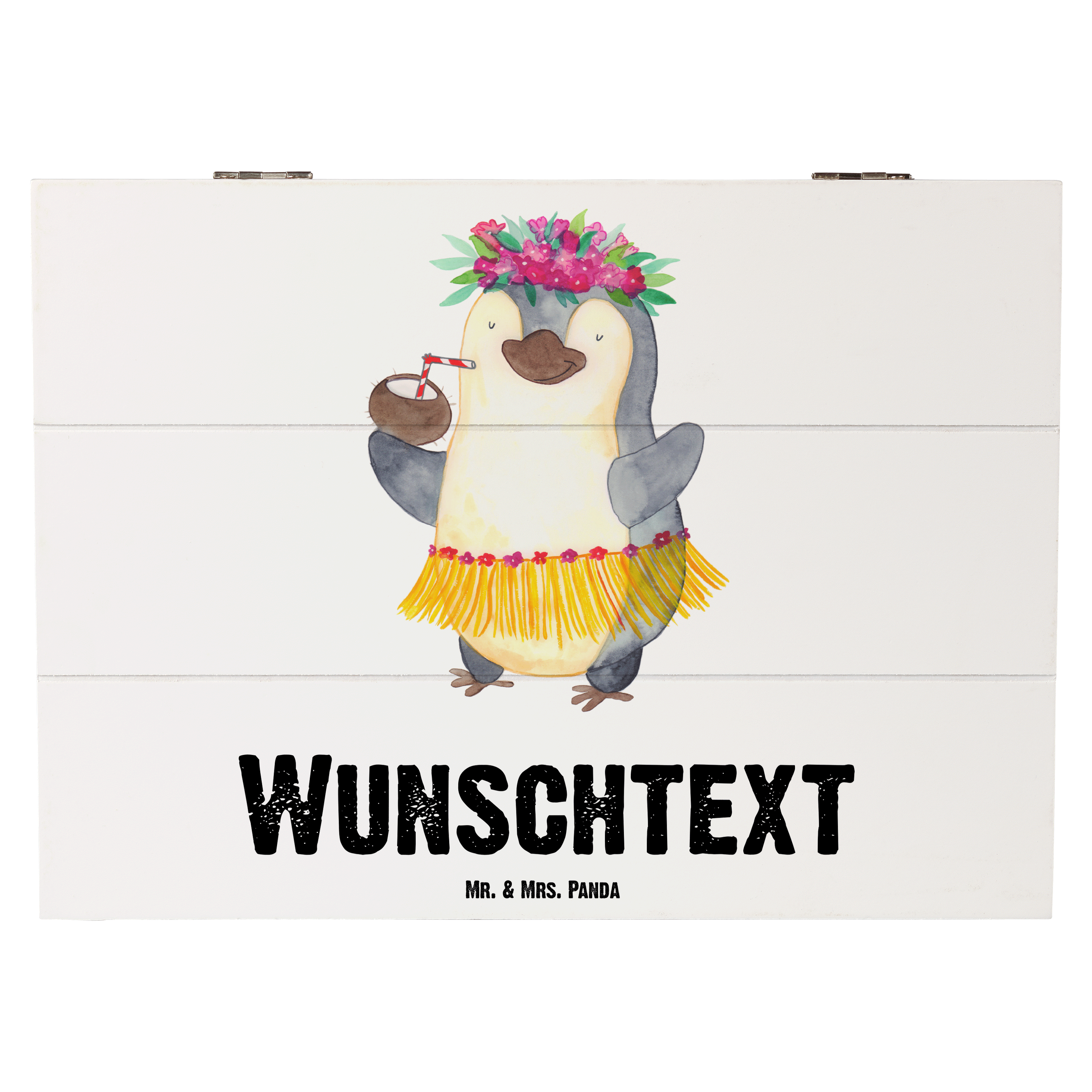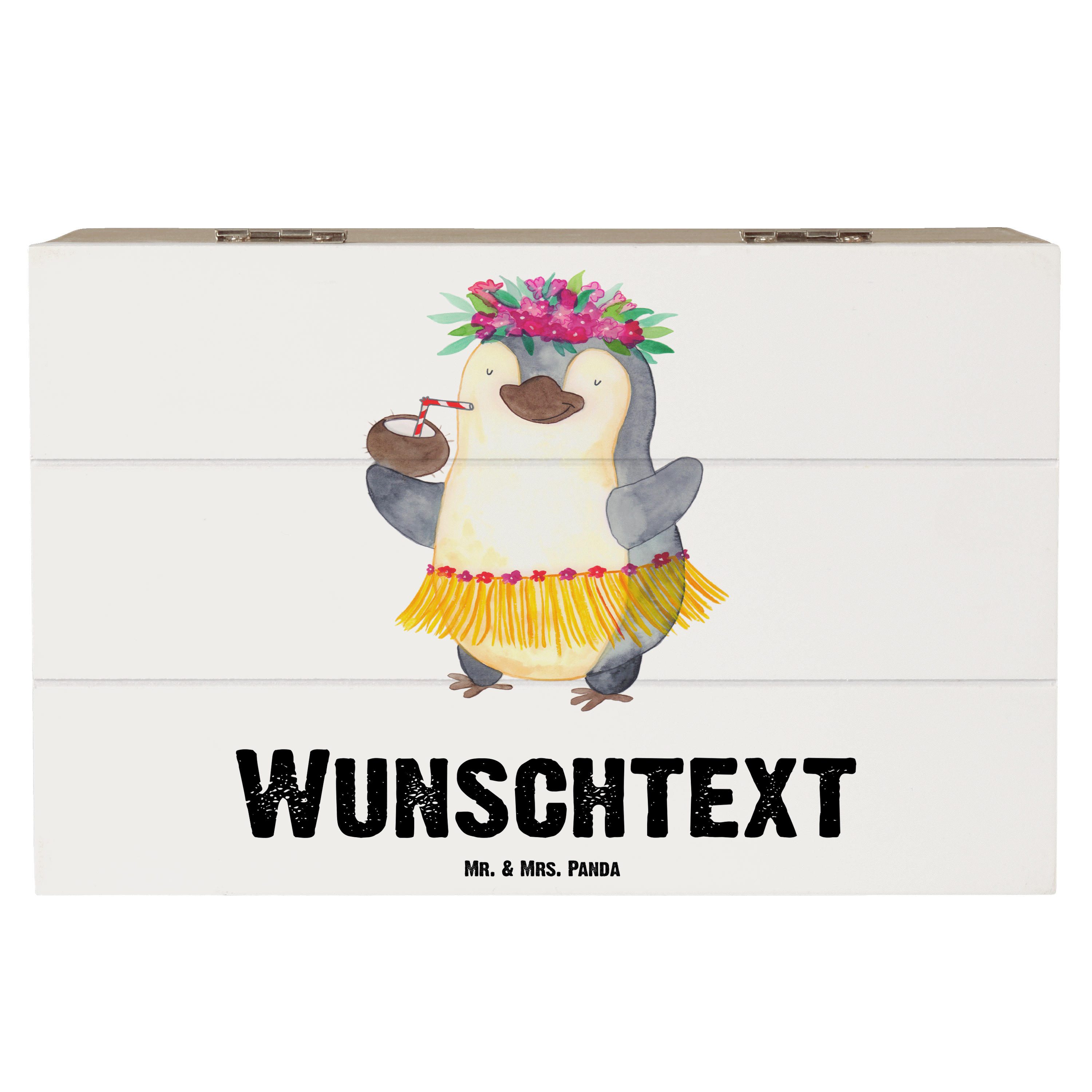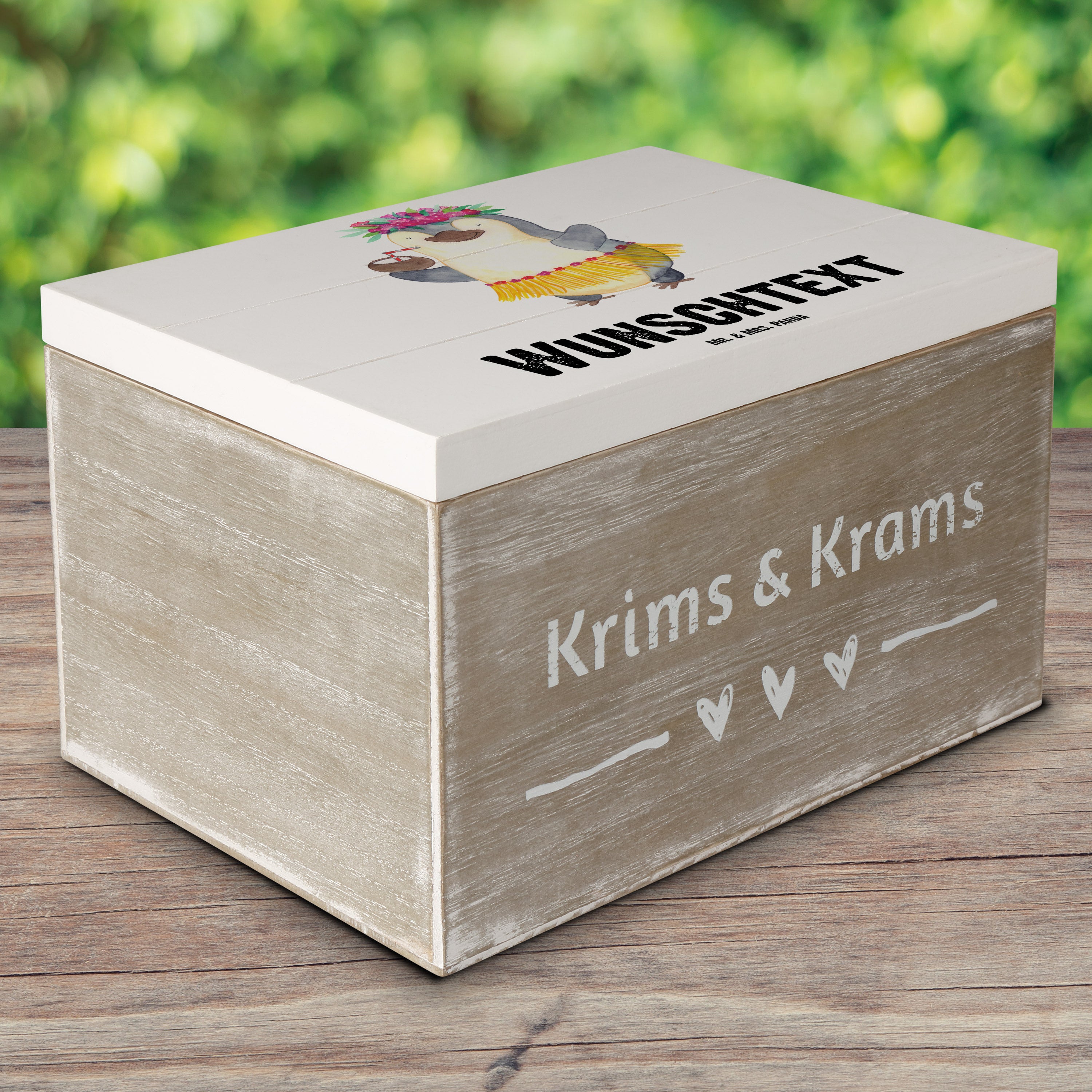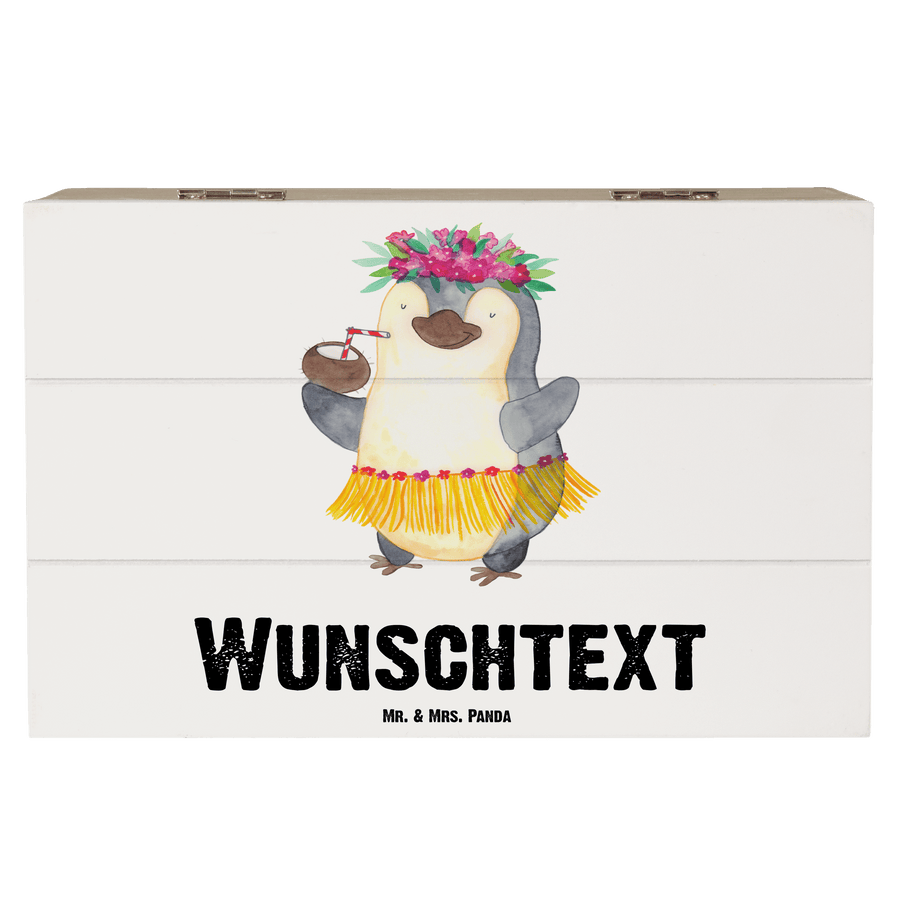 Personalisierte Holzkiste Pinguin Kokosnuss - Weiß - 19 x 12 cm