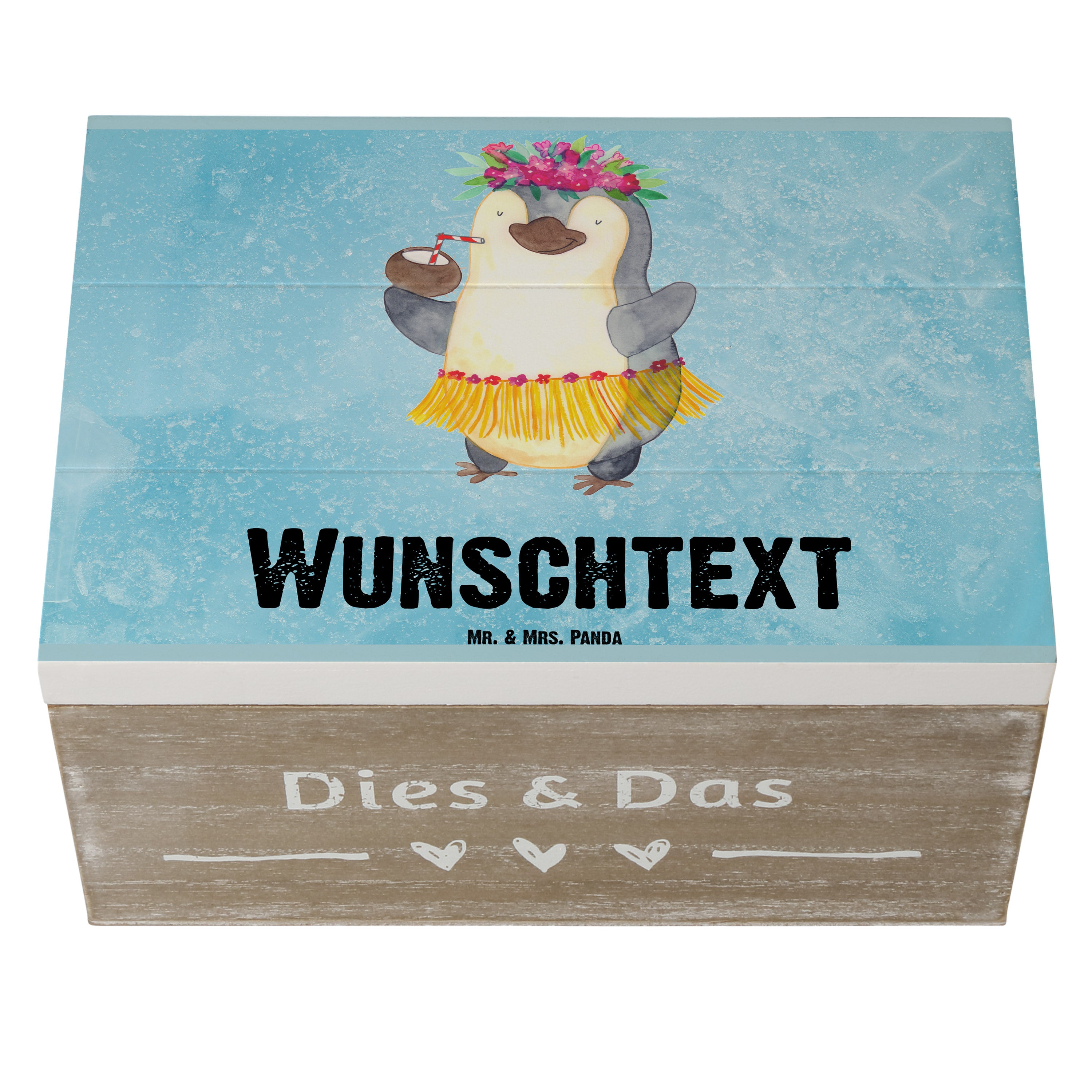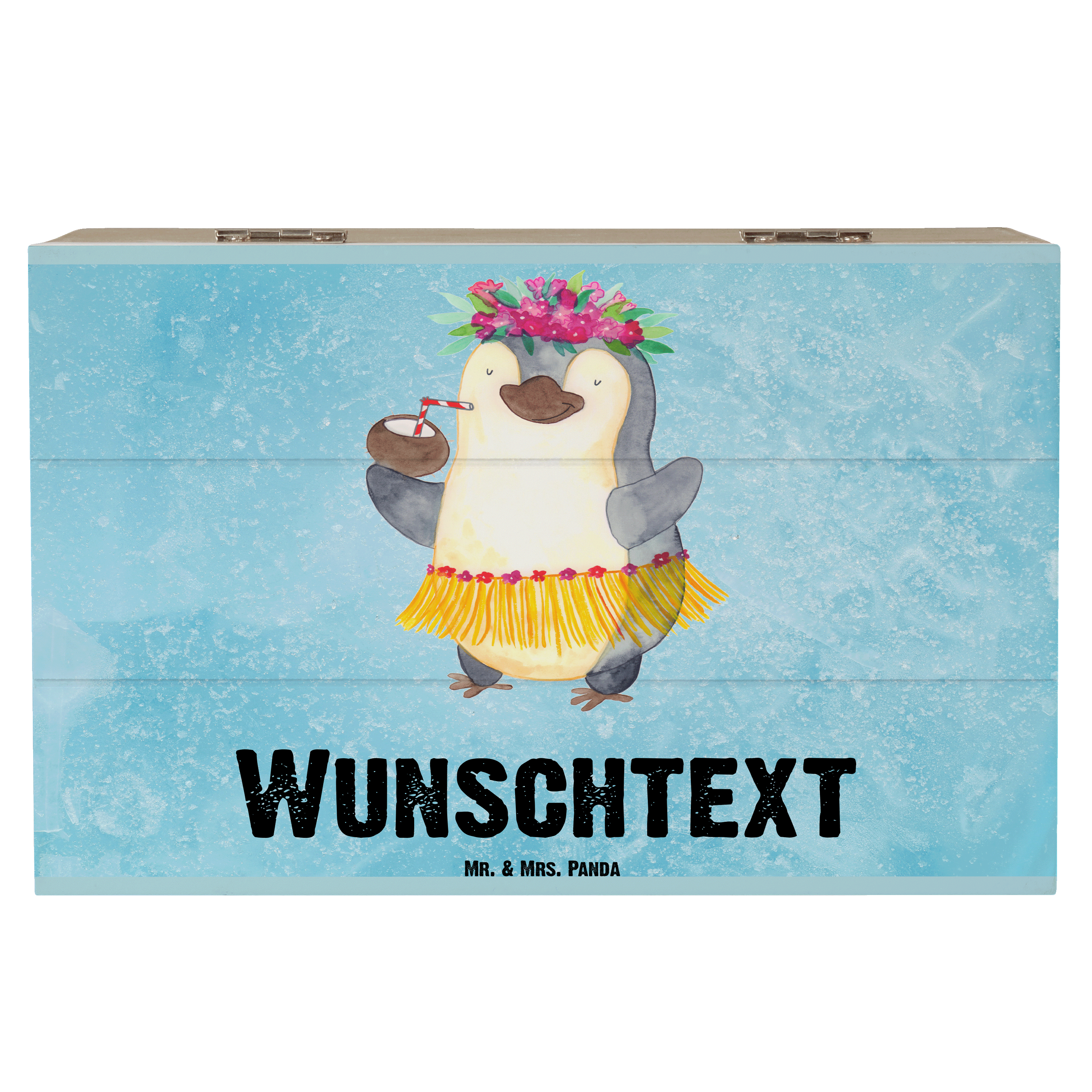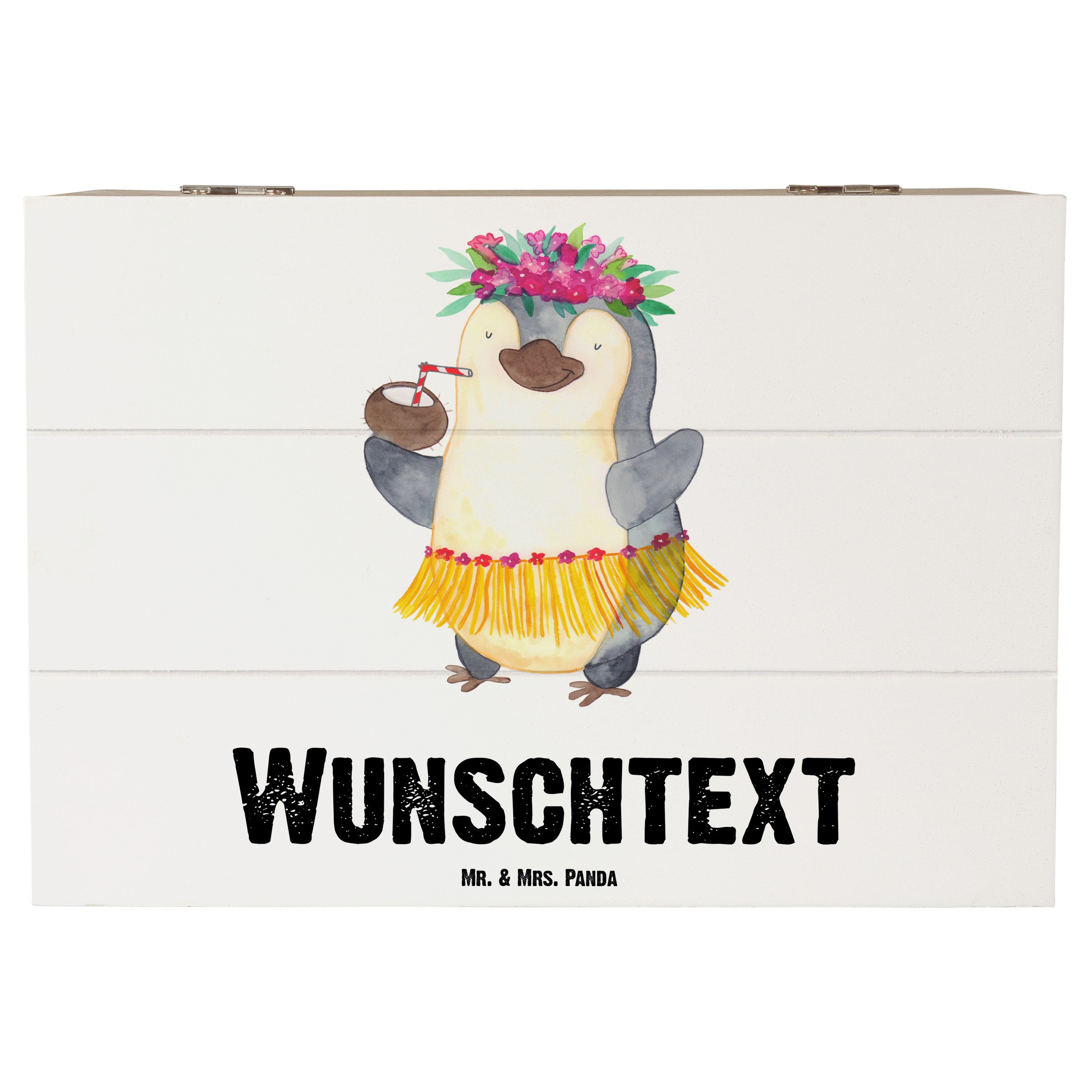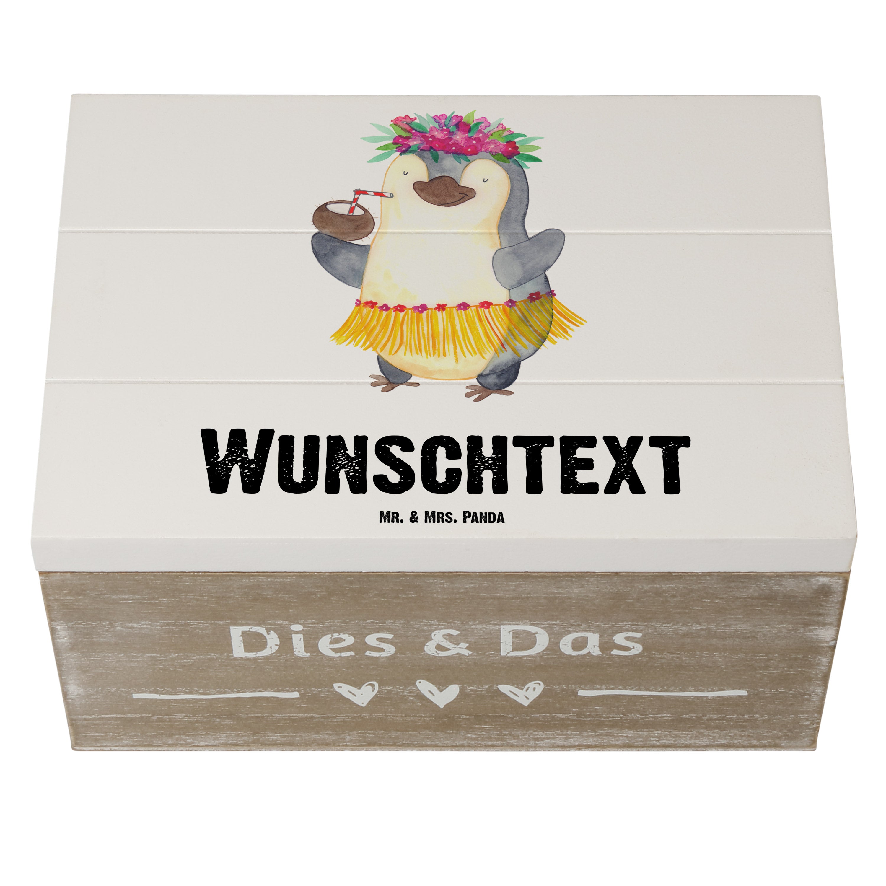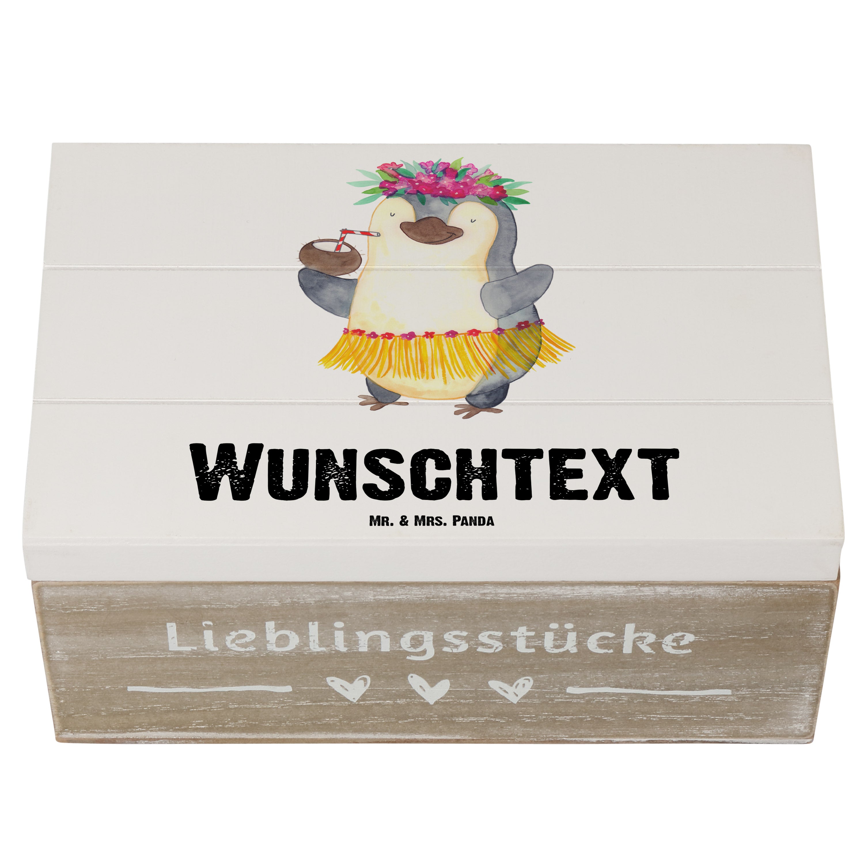 Personalisierte Holzkiste Pinguin Kokosnuss - Weiß - 19 x 12 cm
