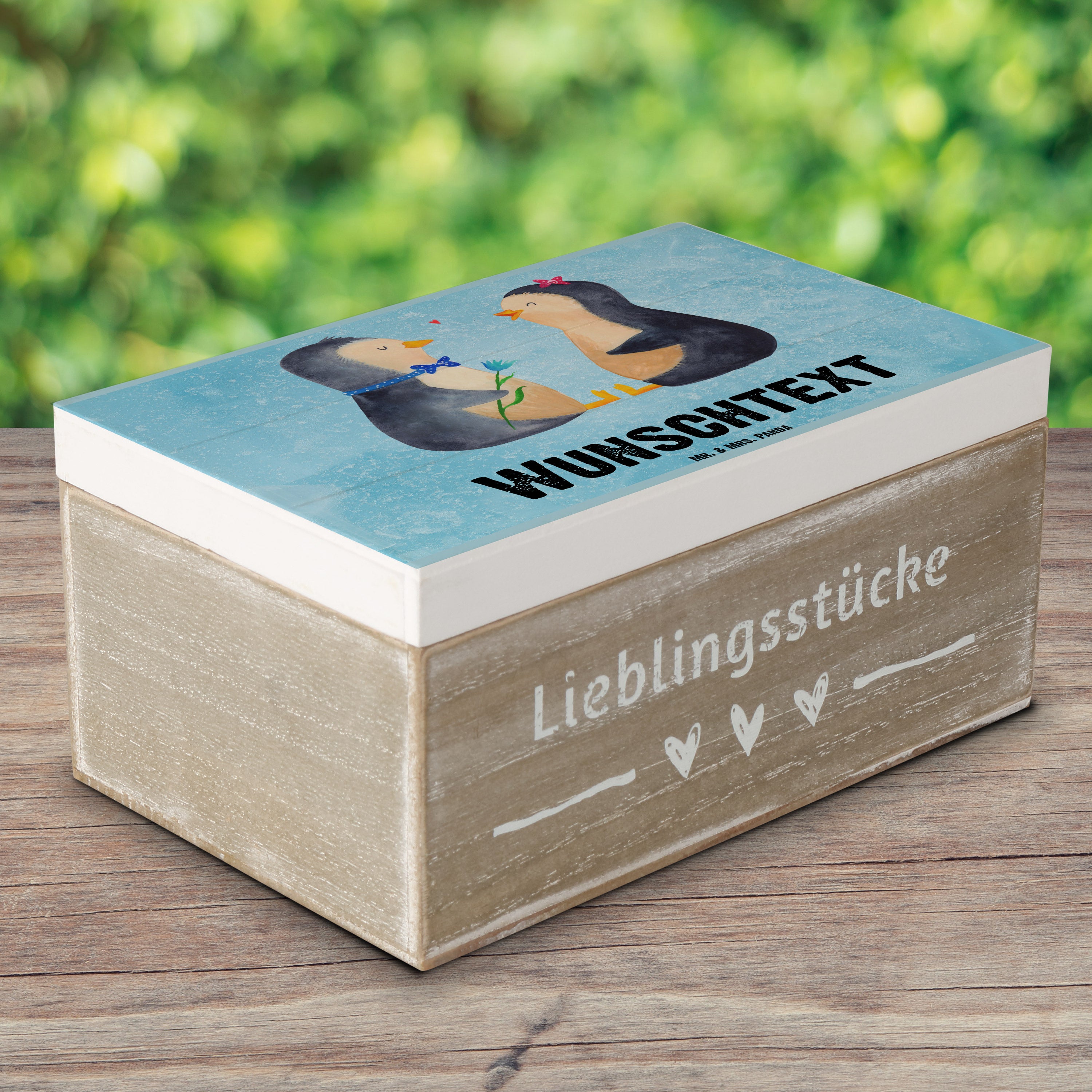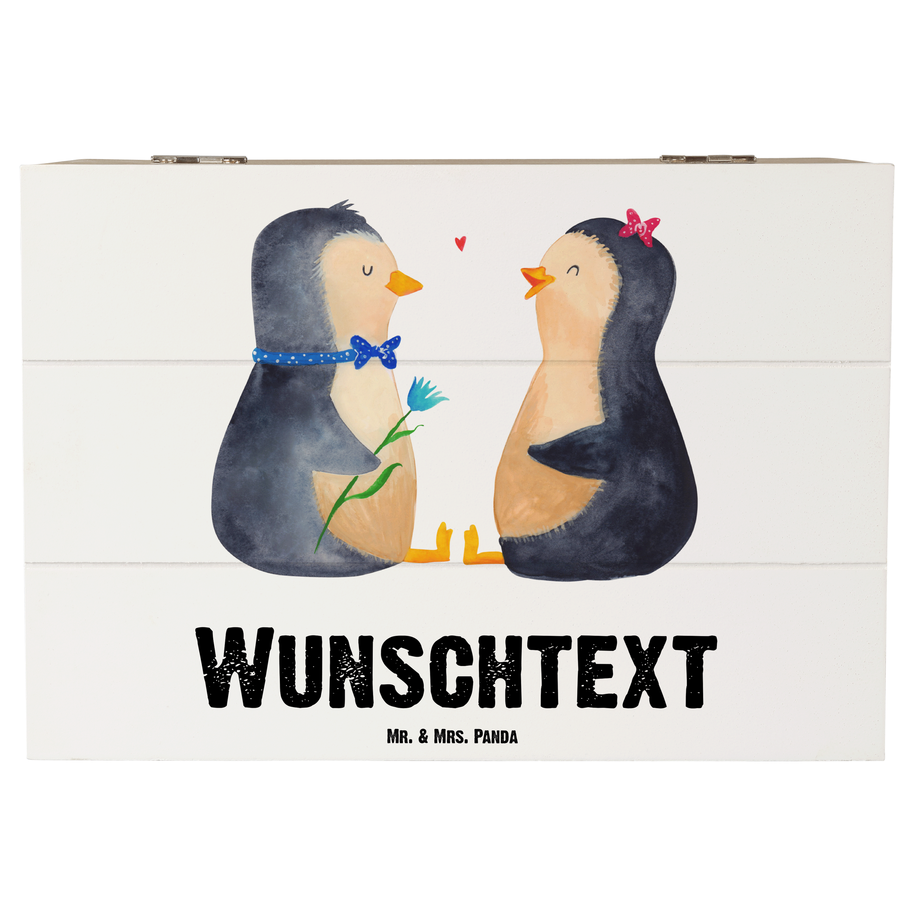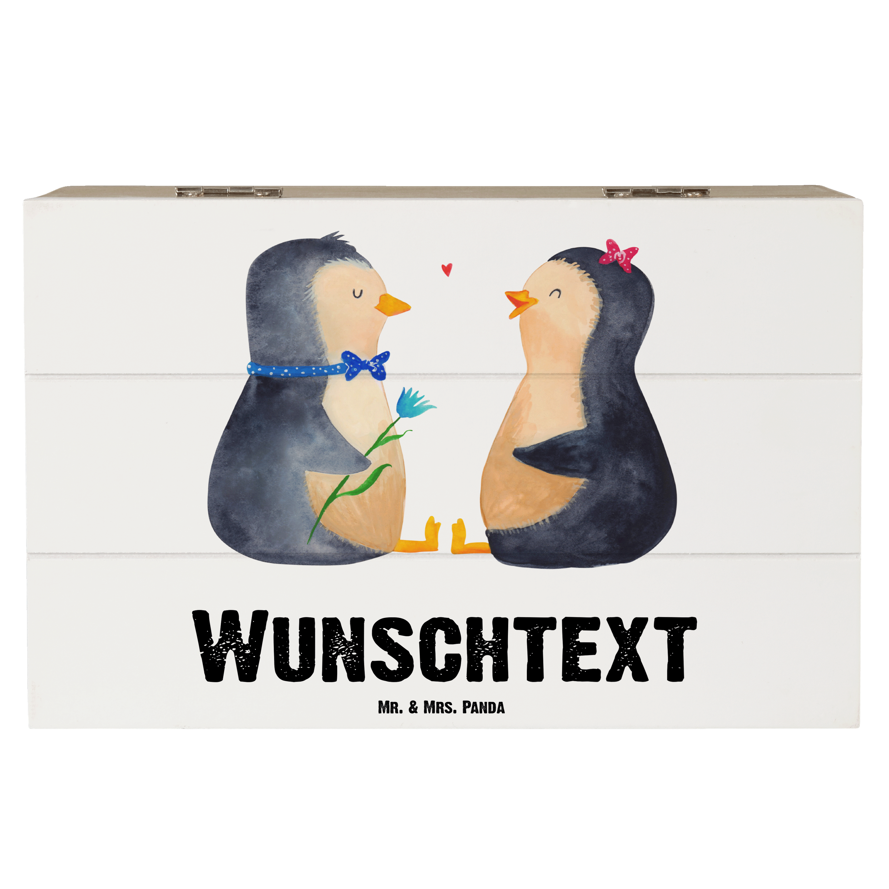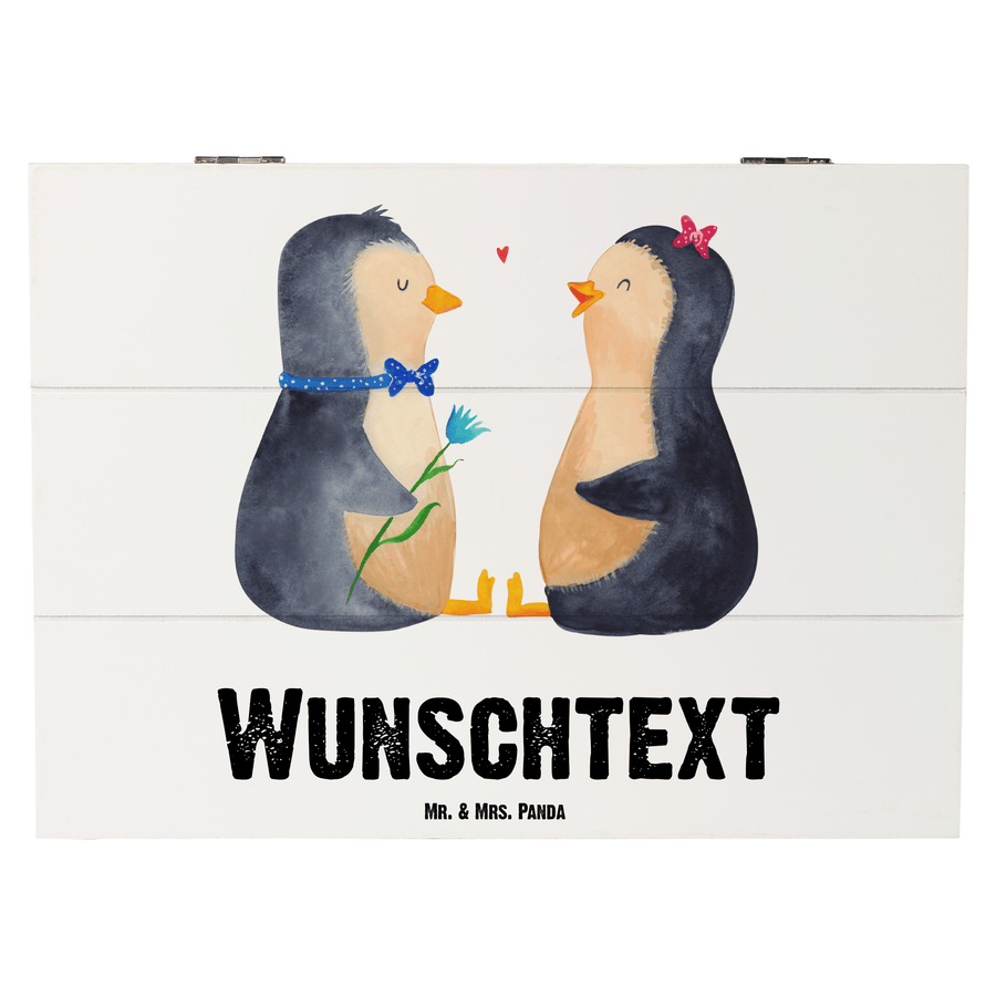 Personalisierte Holzkiste Pinguin Pärchen - 25 x 18 cm - Weiß