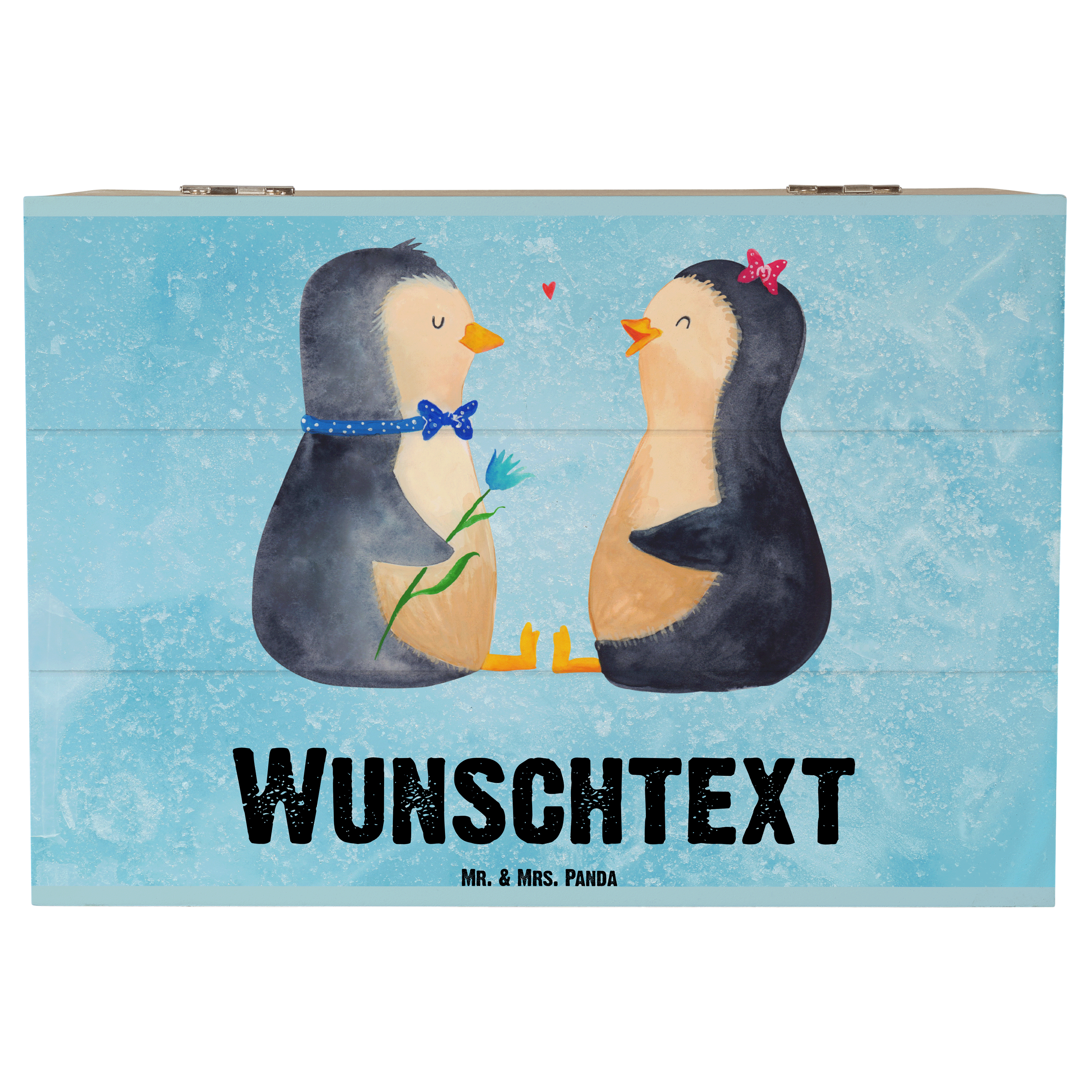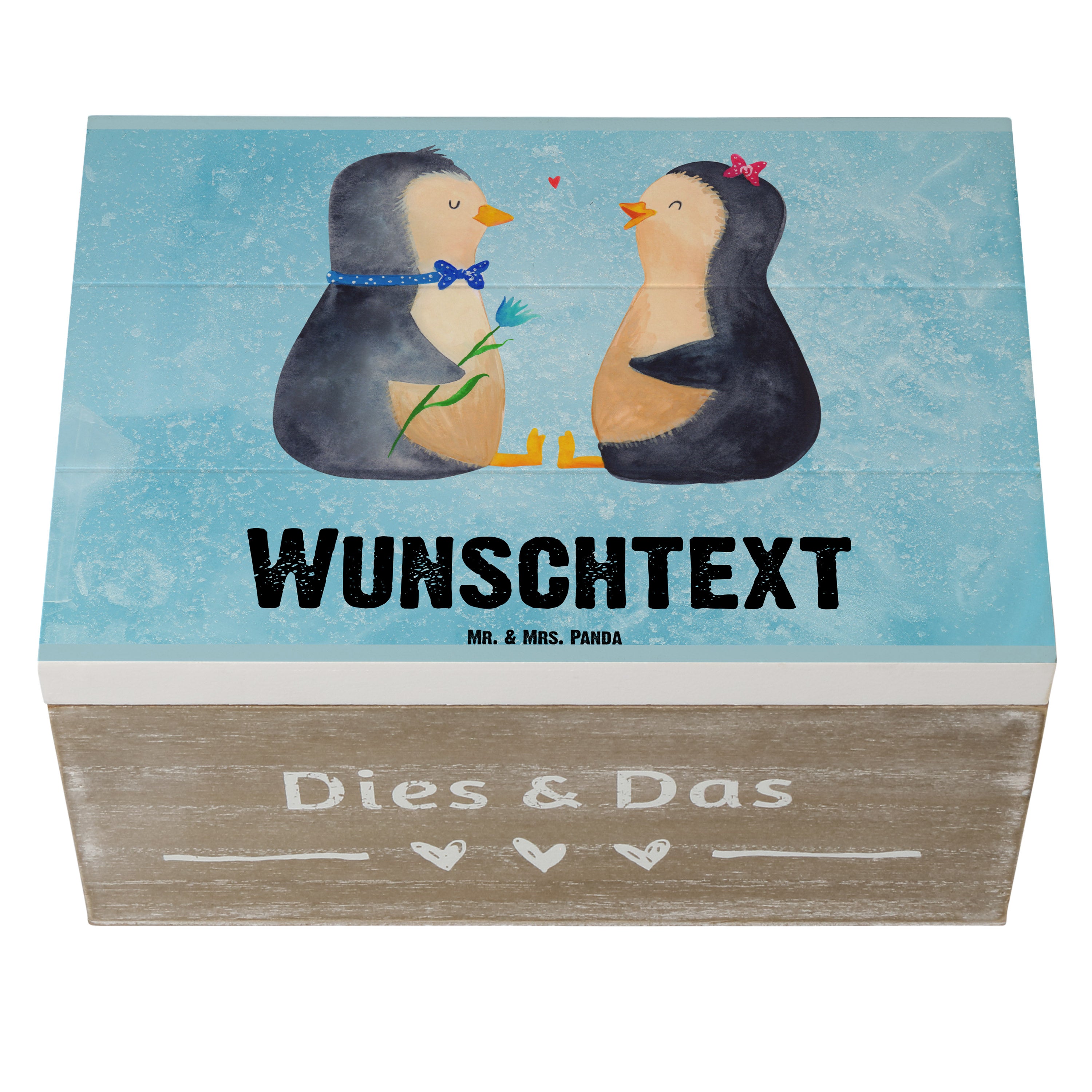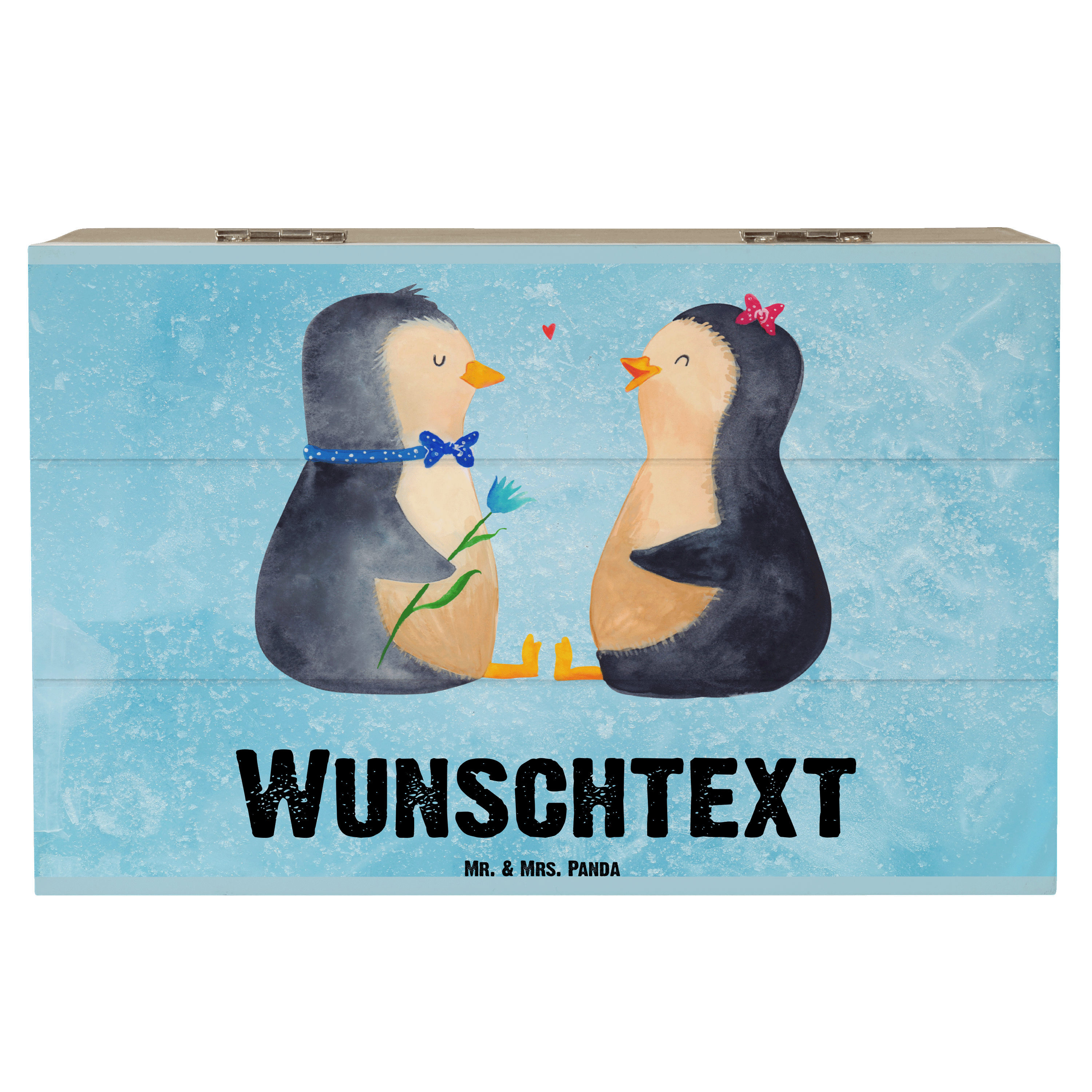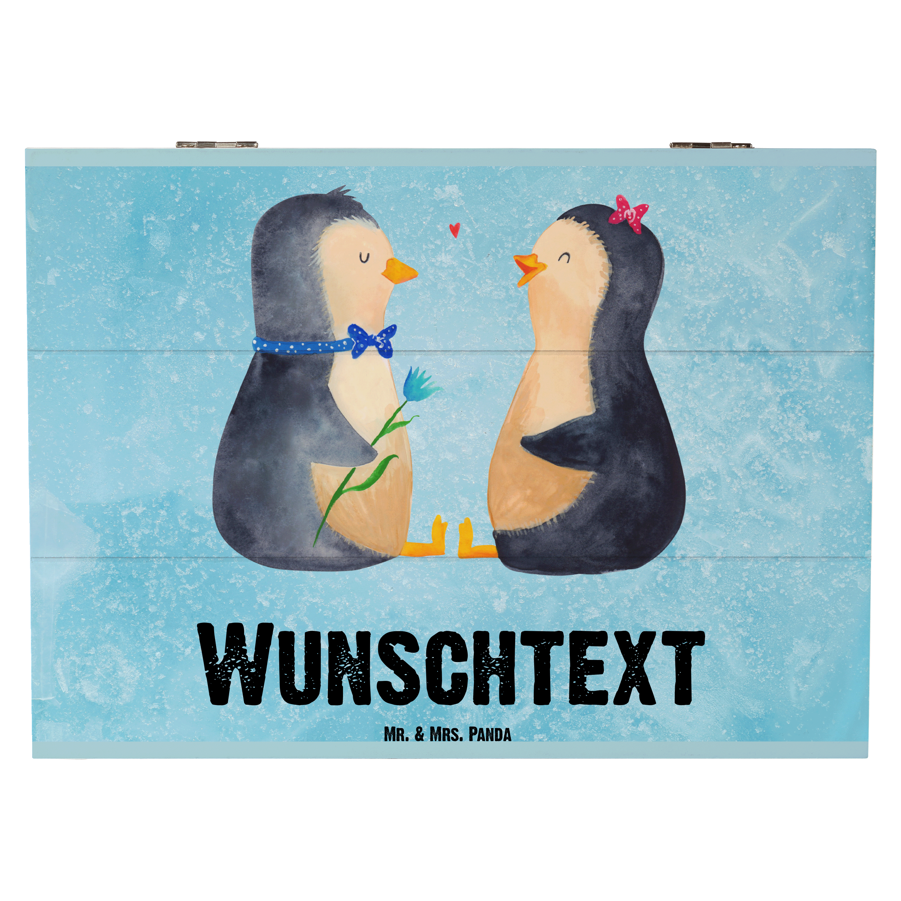 Personalisierte Holzkiste Pinguin Pärchen - 25 x 18 cm - Weiß