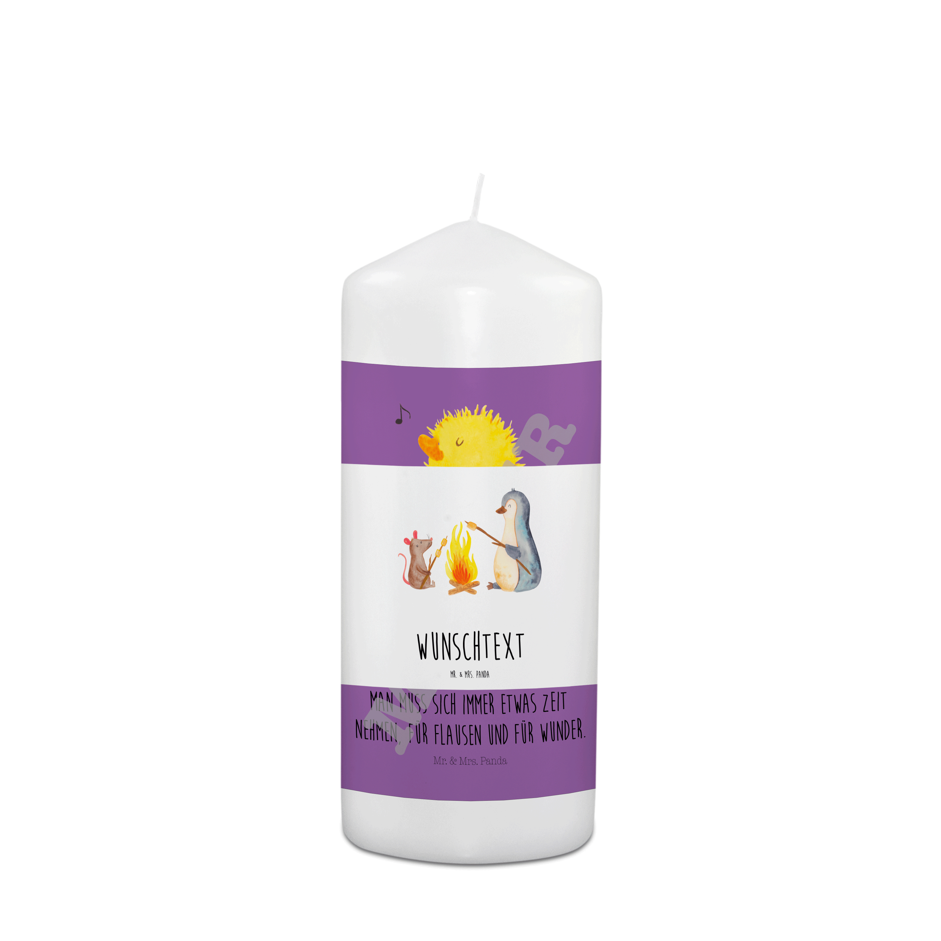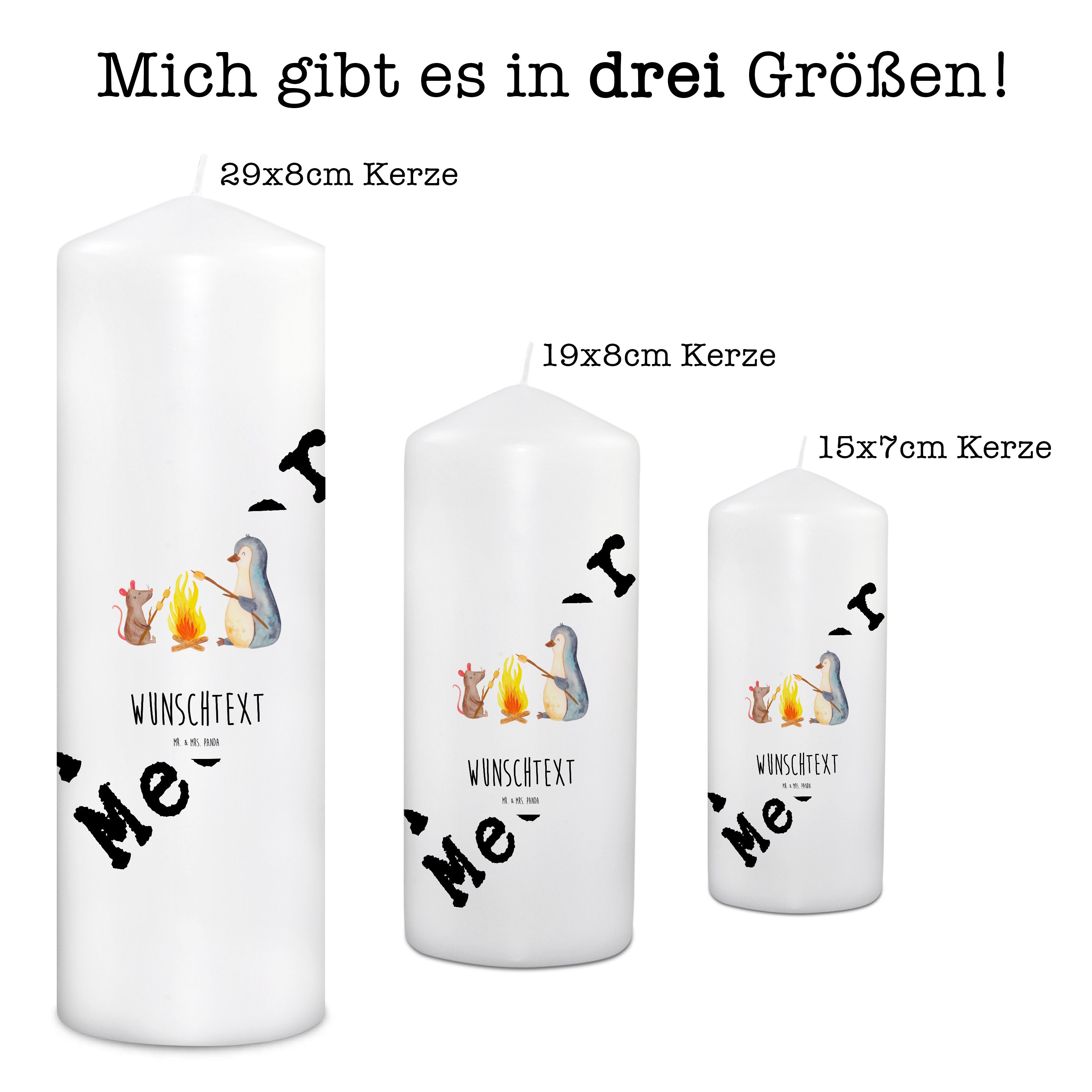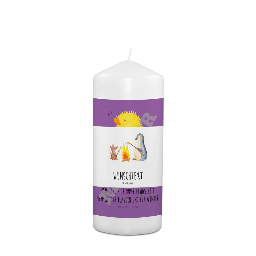 Personalisierte Kerze Pinguin Lagerfeuer - 15 x 7 cm