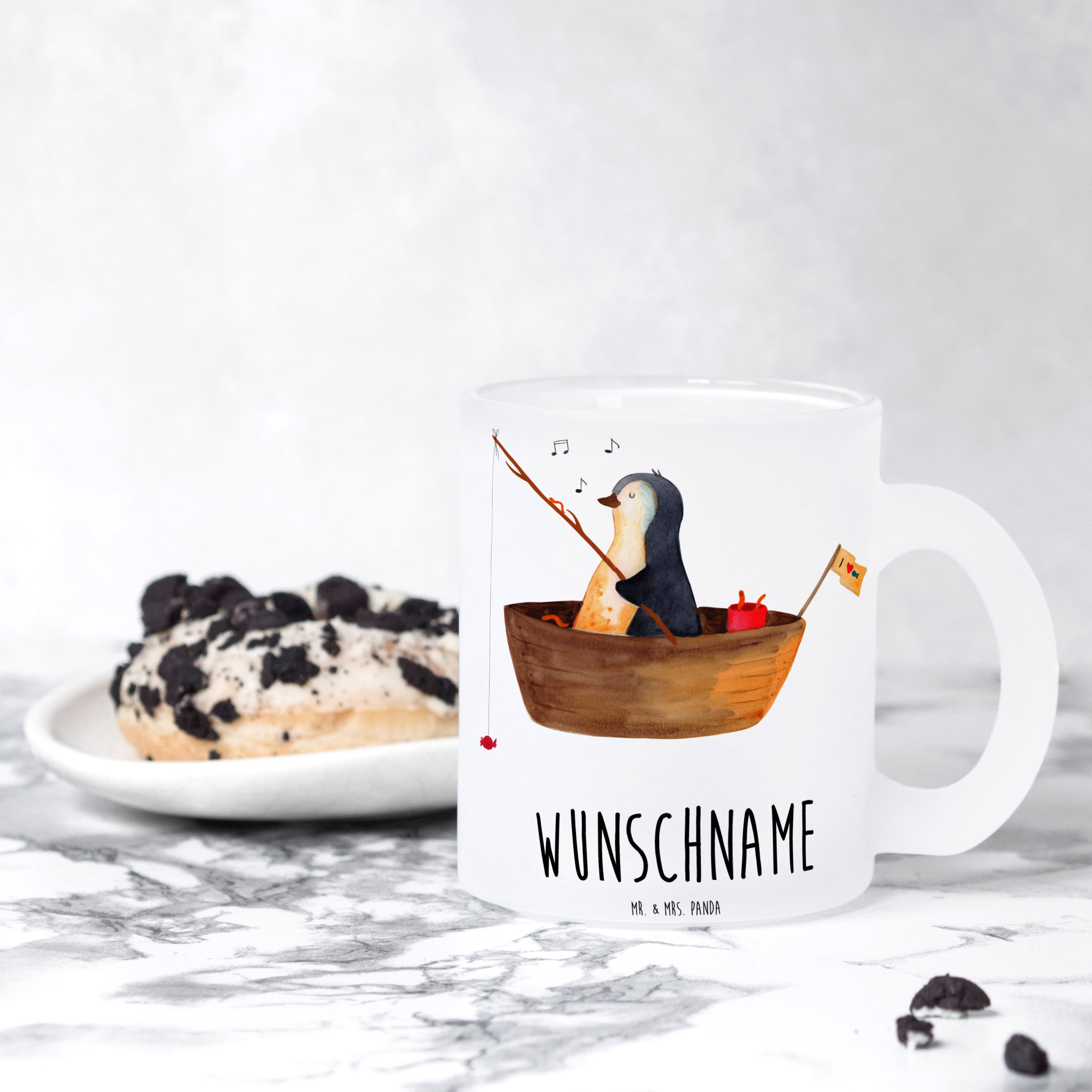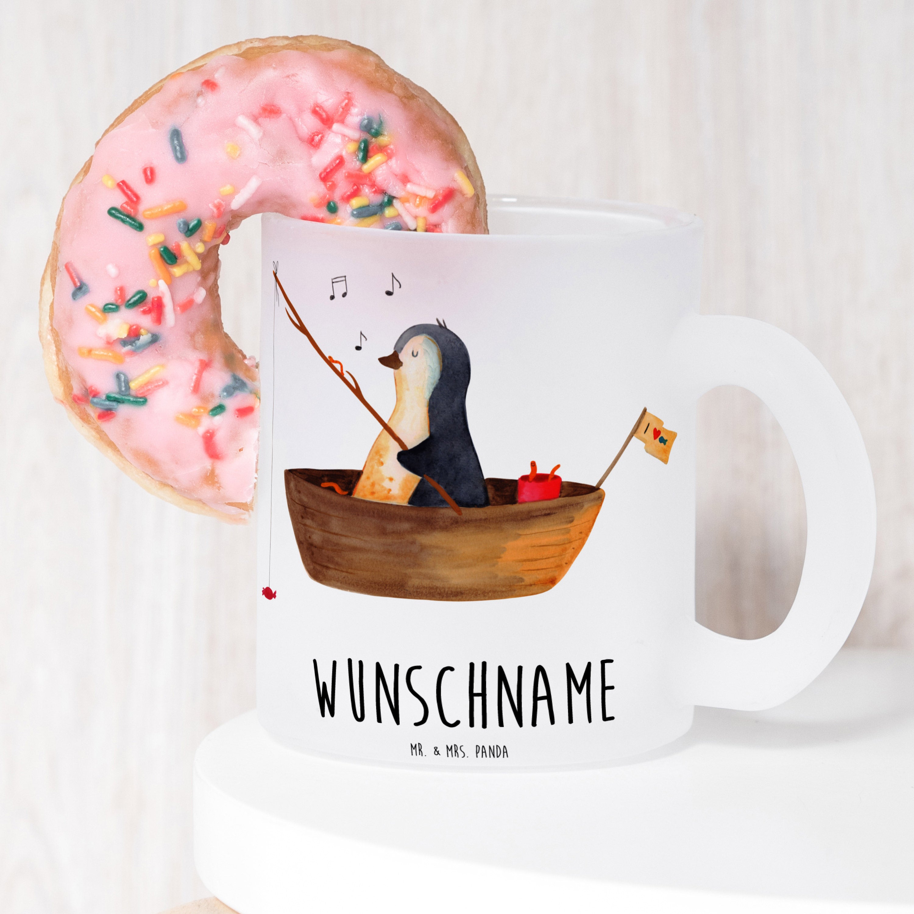 Personalisierte Teetasse Pinguin Angelboot