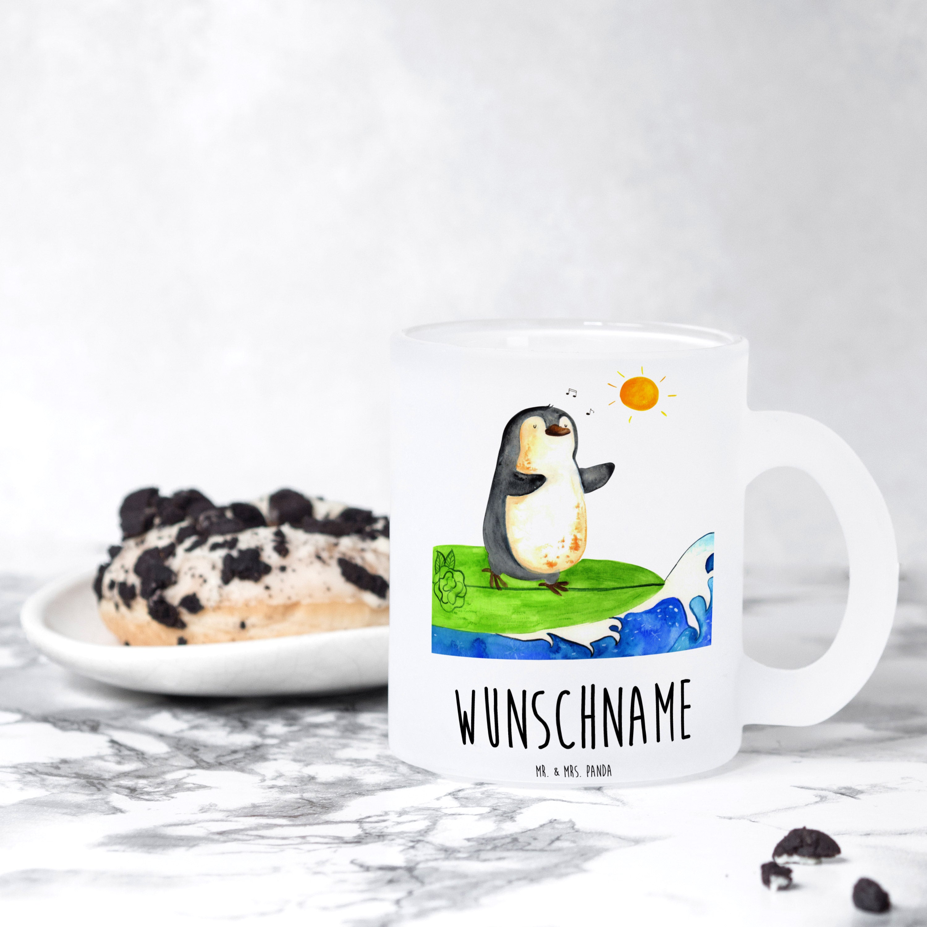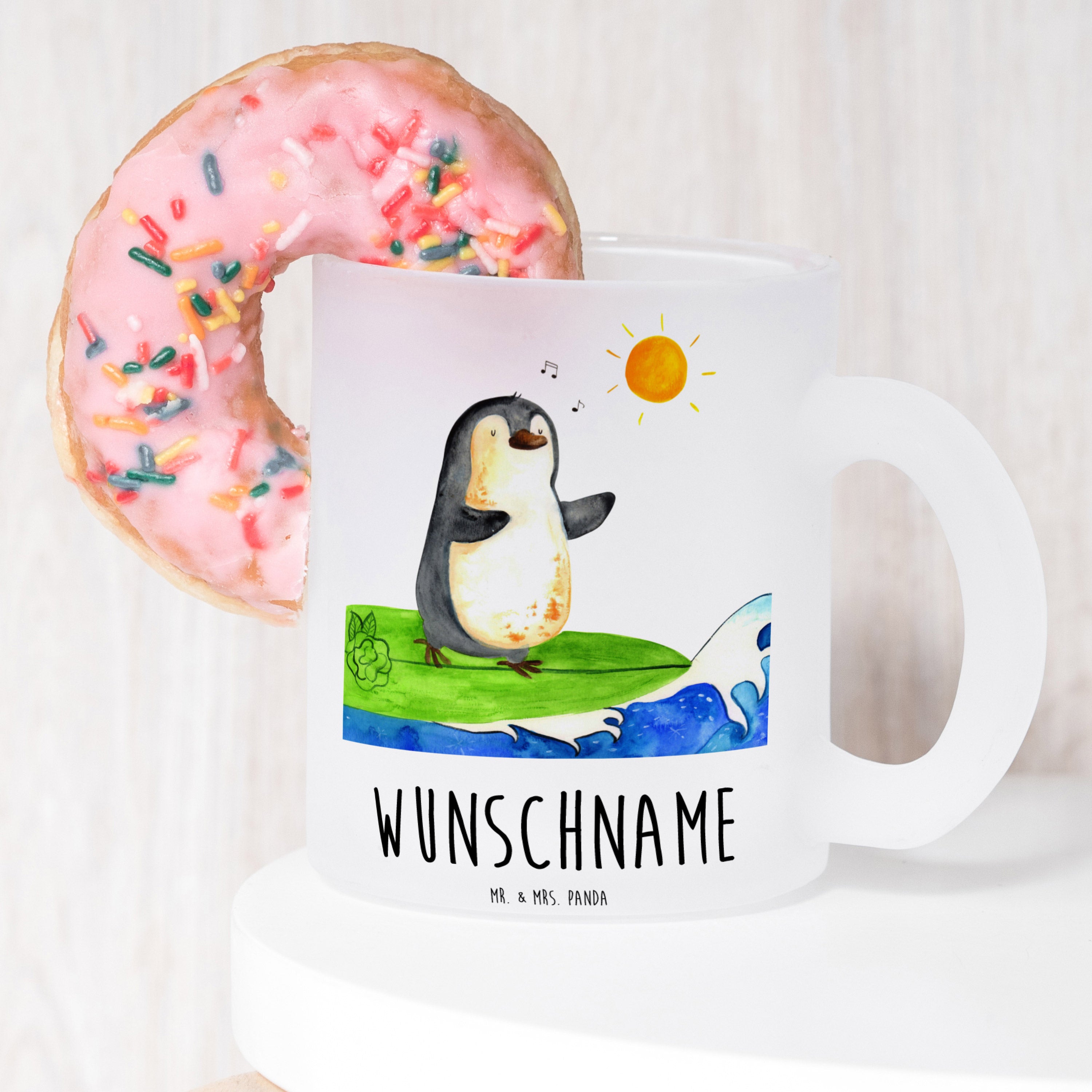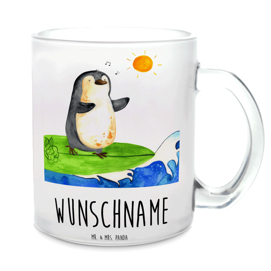 Personalisierte Teetasse Pinguin Surfer