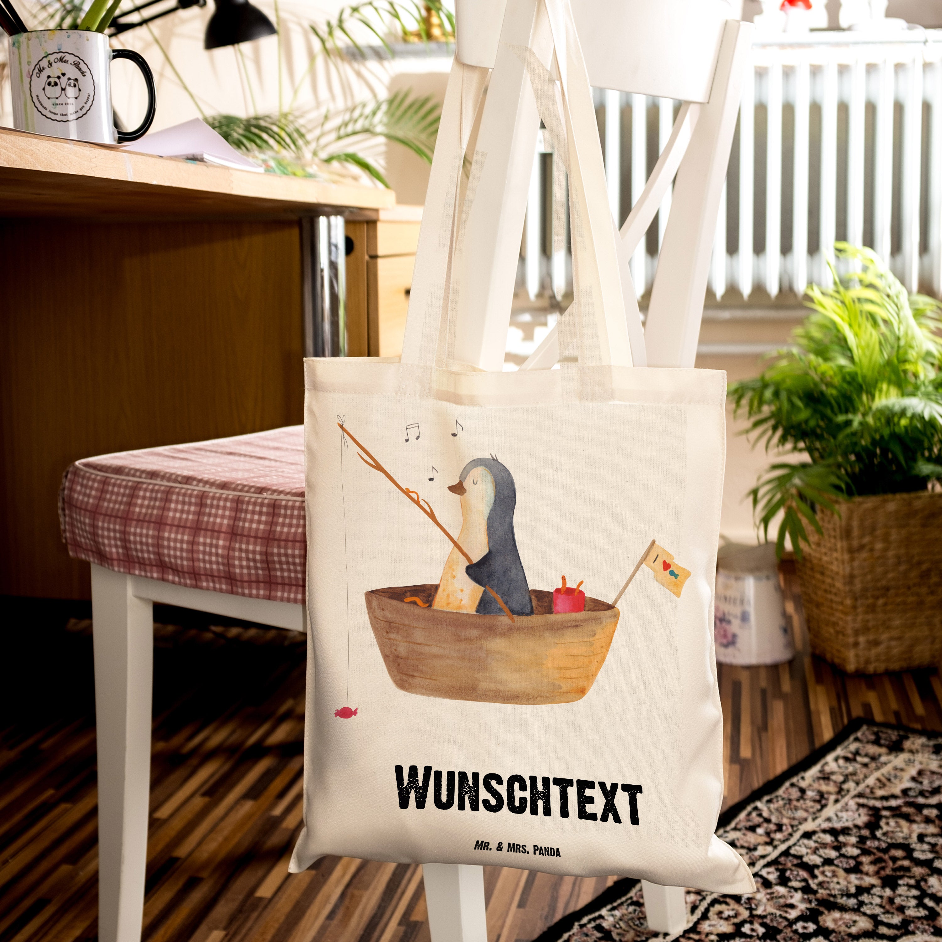 Personalisierte Tragetasche Pinguin Angelboot - Transparent