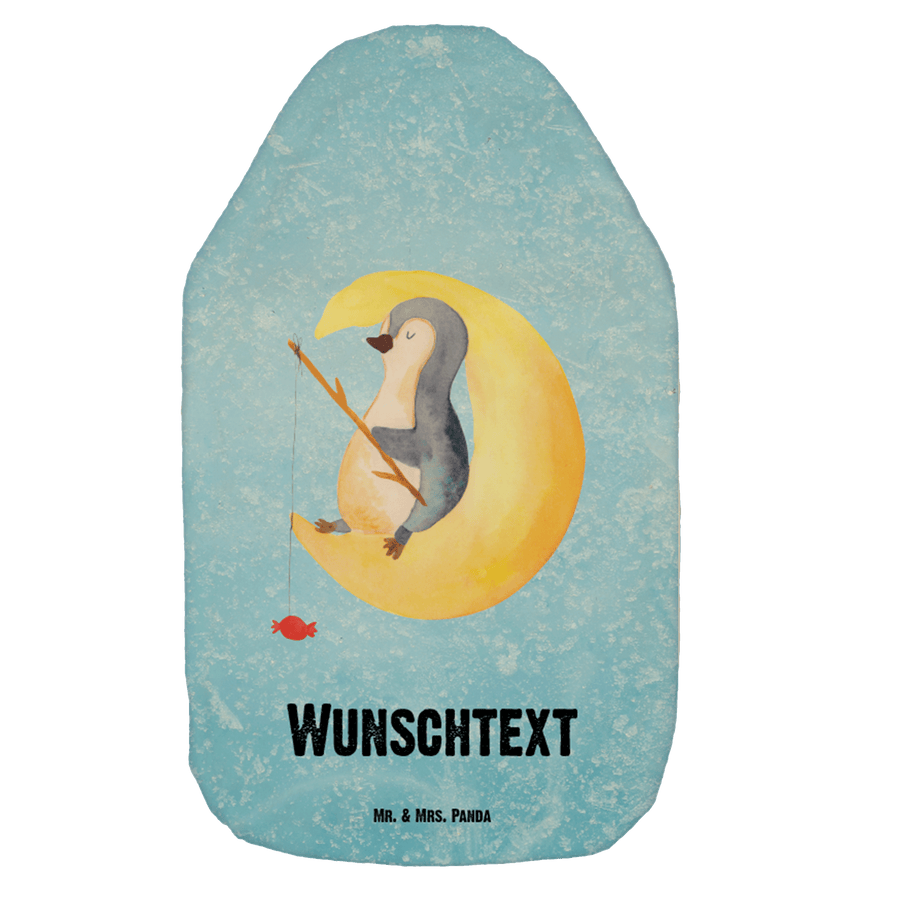 Personalisierte Wärmflasche Pinguin Mond - Eisblau