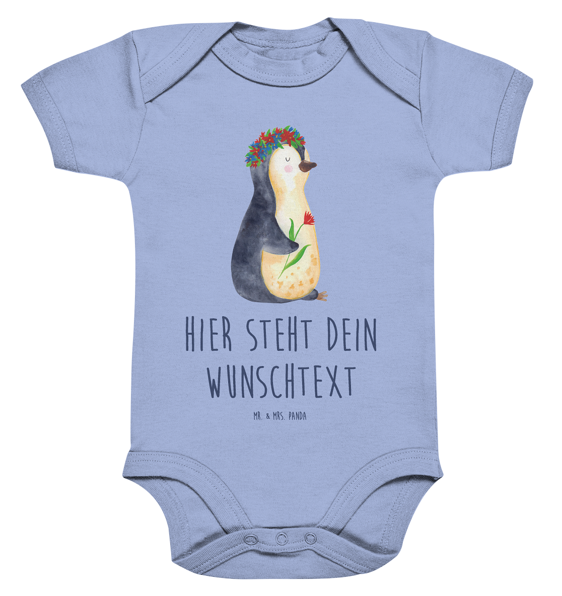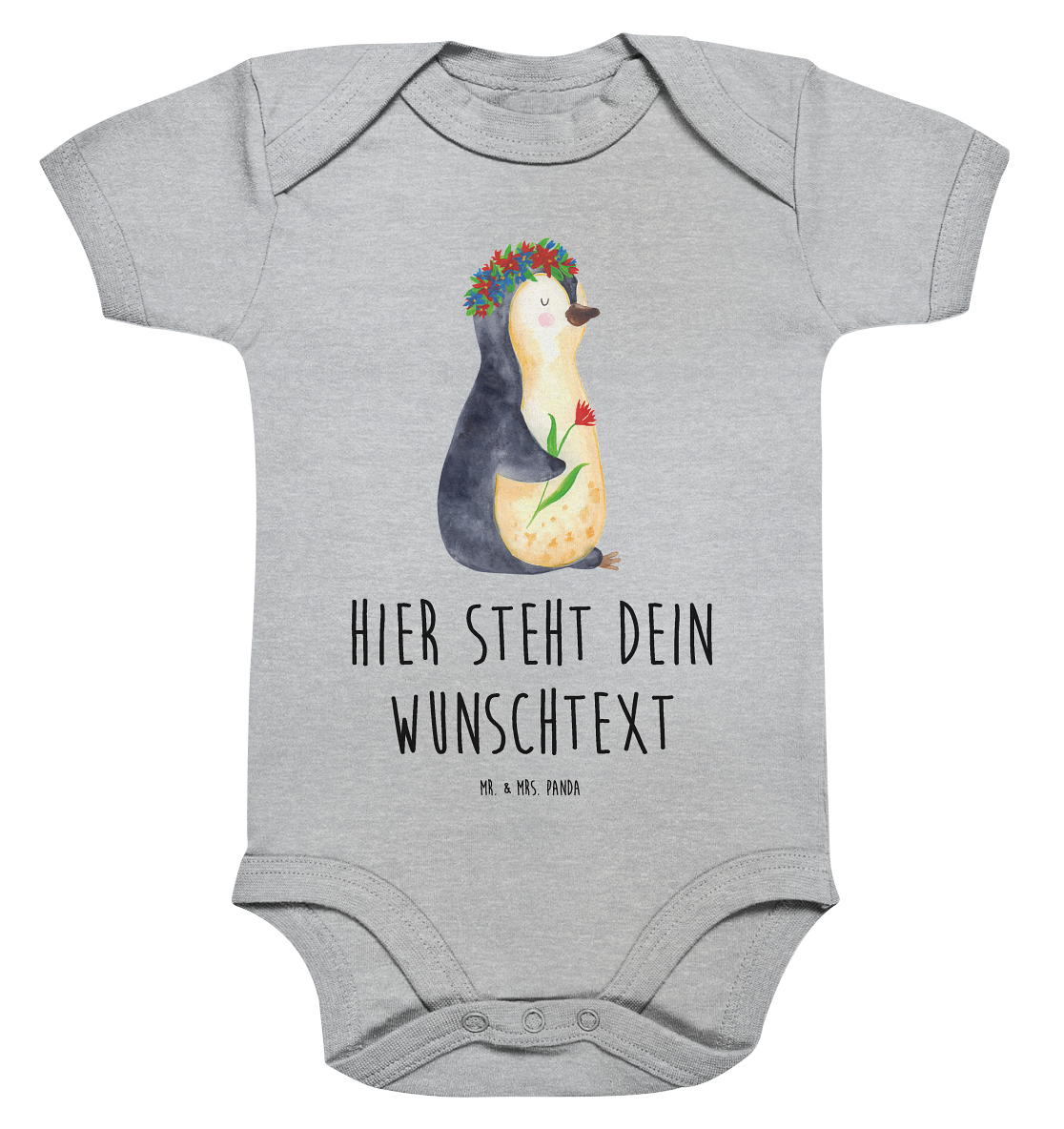 Personalisierter Baby Body Pinguin Blumenkranz - 12. - 18. Monat - Schwarz