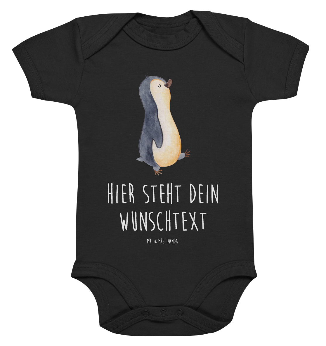 Personalisierter Baby Body Pinguin marschierend - 12. - 18. Monat - Schwarz