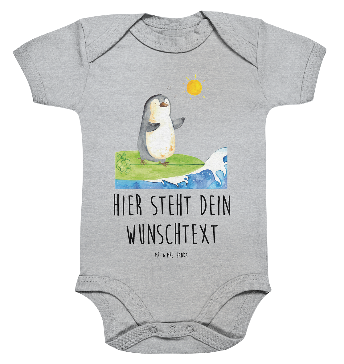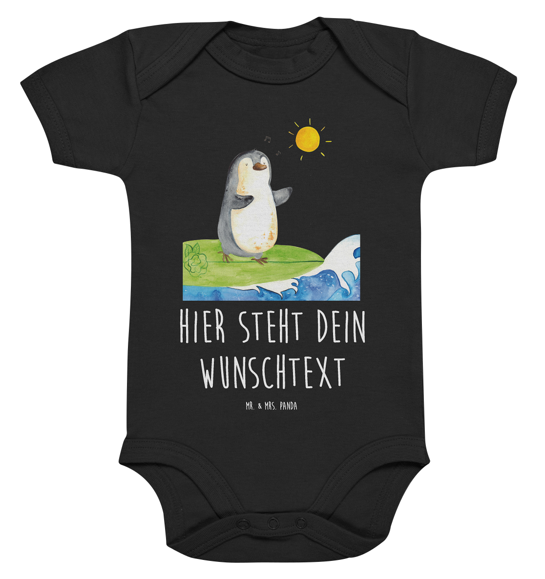 Personalisierter Baby Body Pinguin Surfer - 12. - 18. Monat - Schwarz