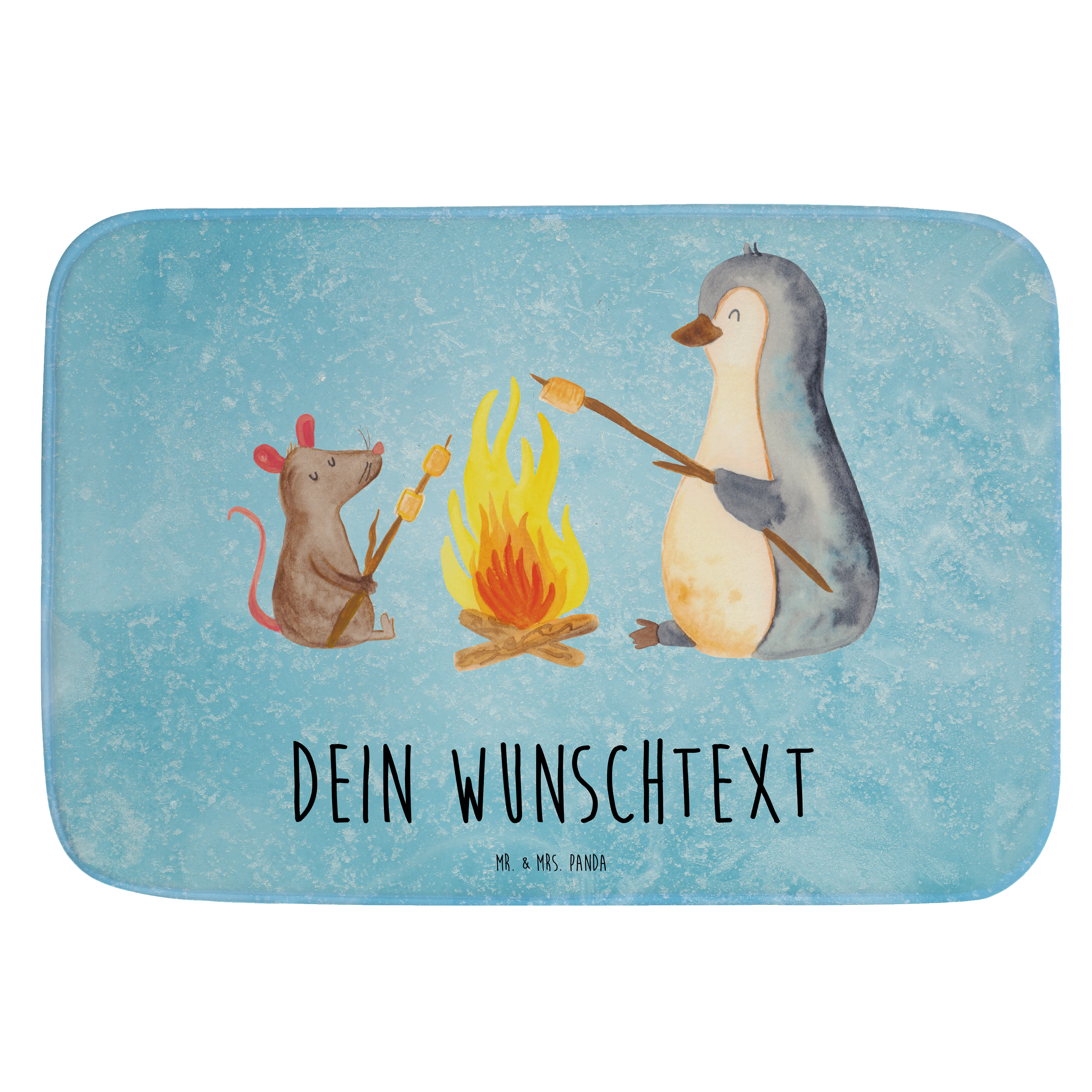 Personalisierter Badvorleger Pinguin Lagerfeuer