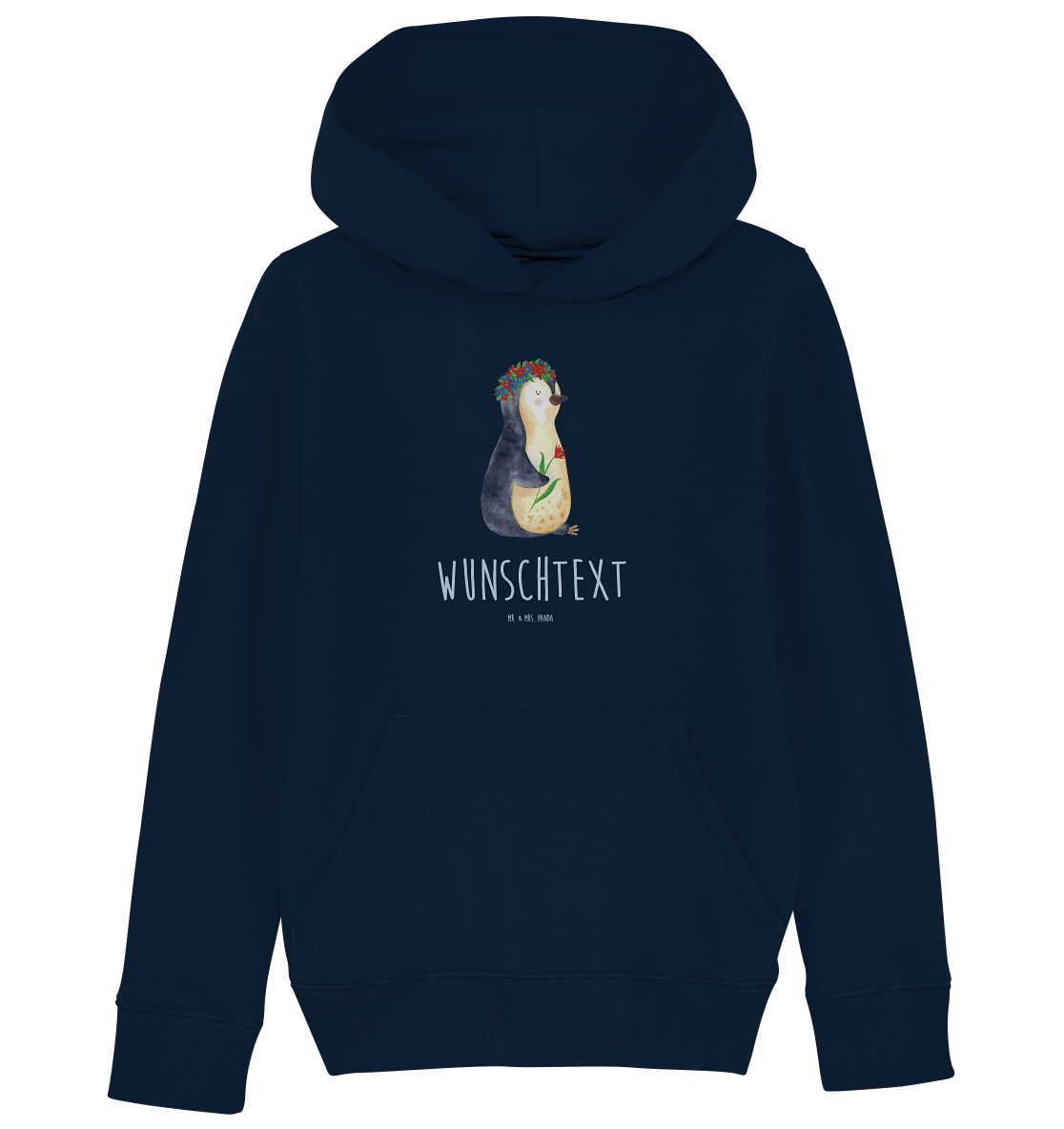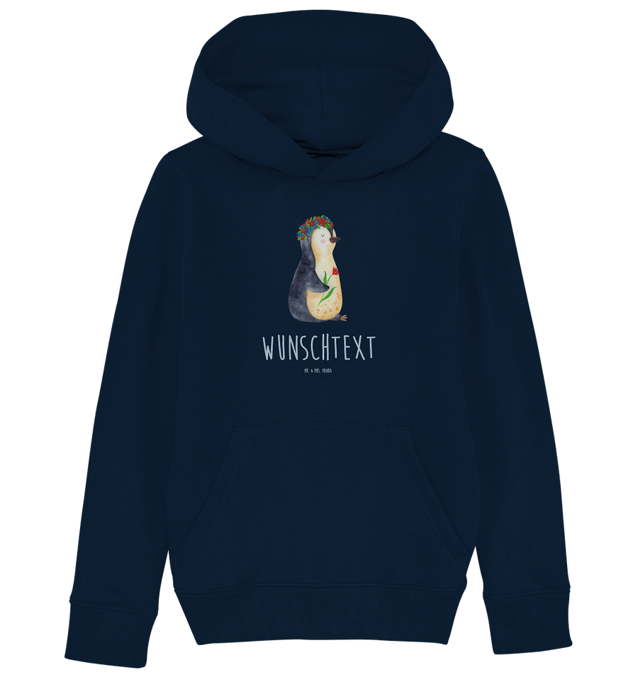 Personalisierter Kinder Hoodie Pinguin Blumenkranz - 12-14 Jahre (152/164) - French Navy