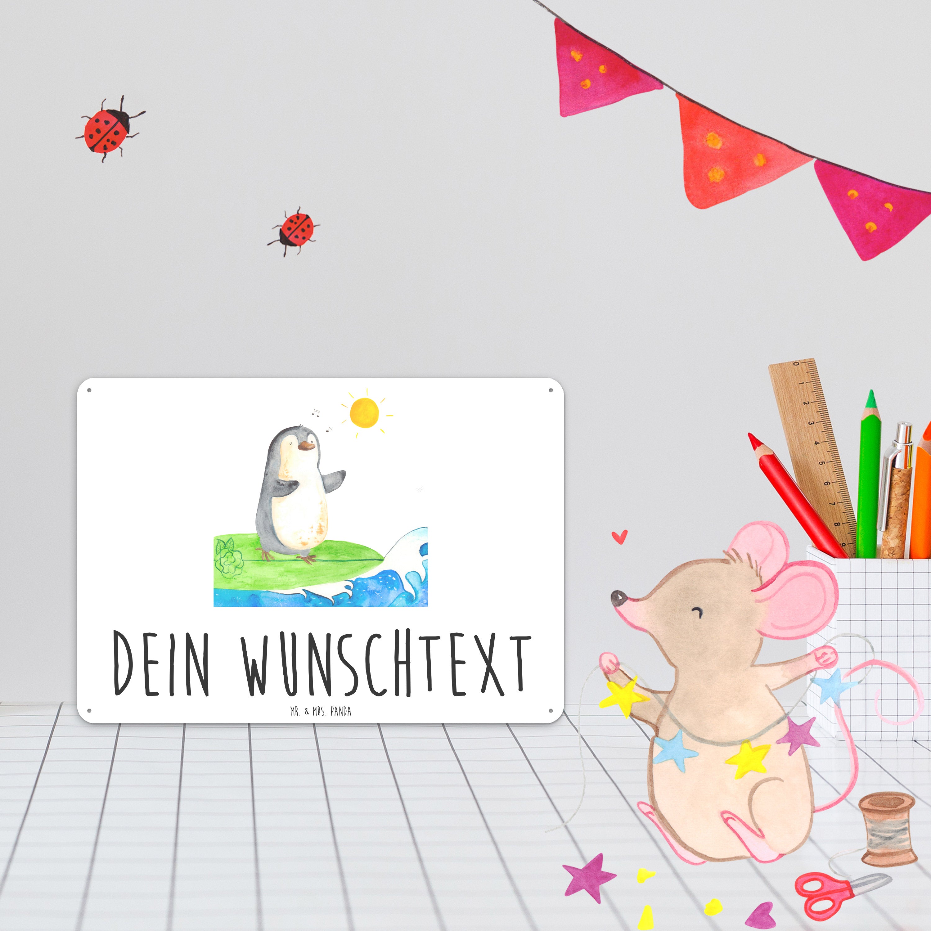 Personalisiertes Blechschild Pinguin Surfer - DIN A3