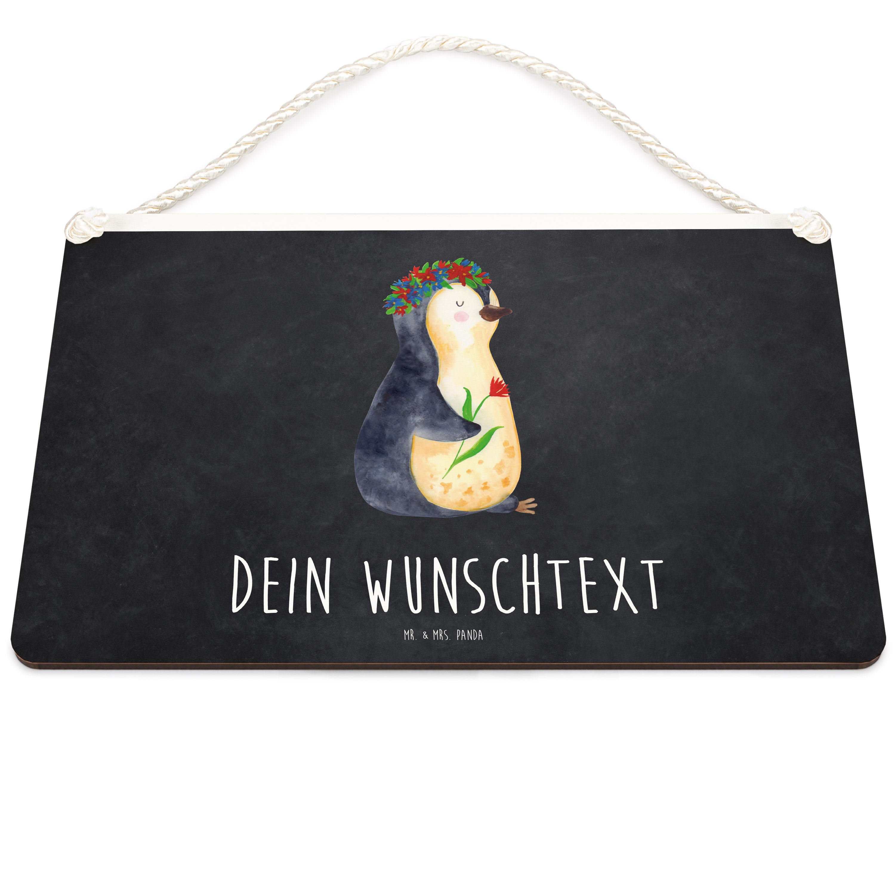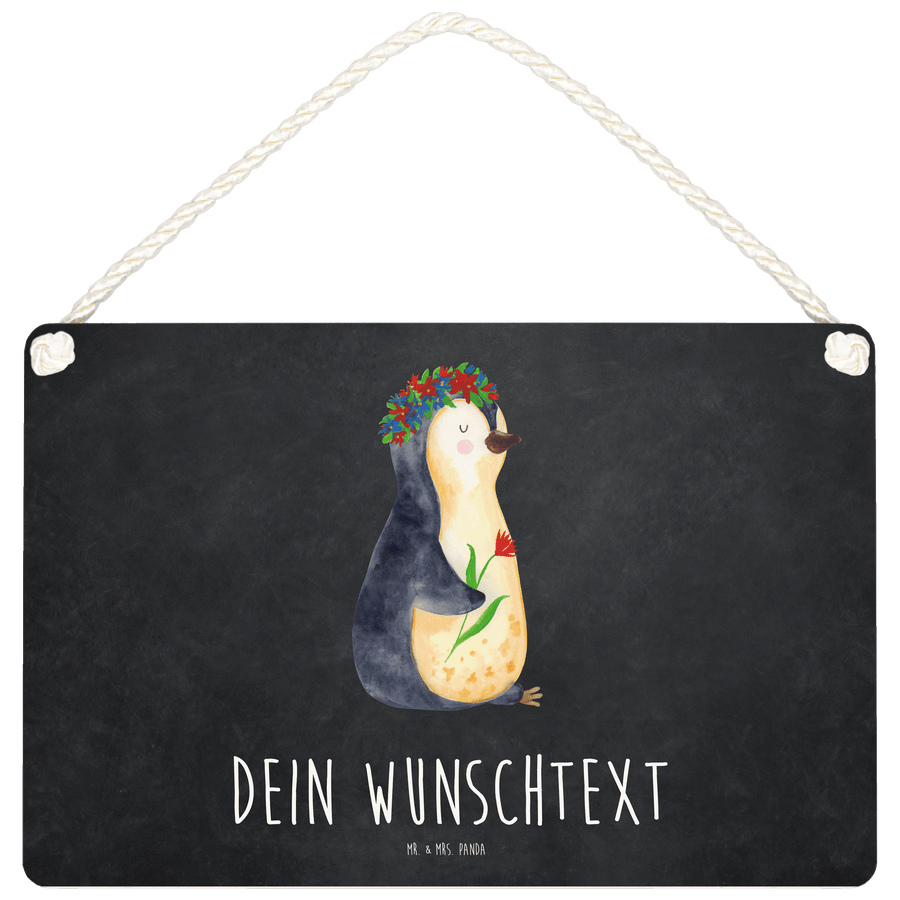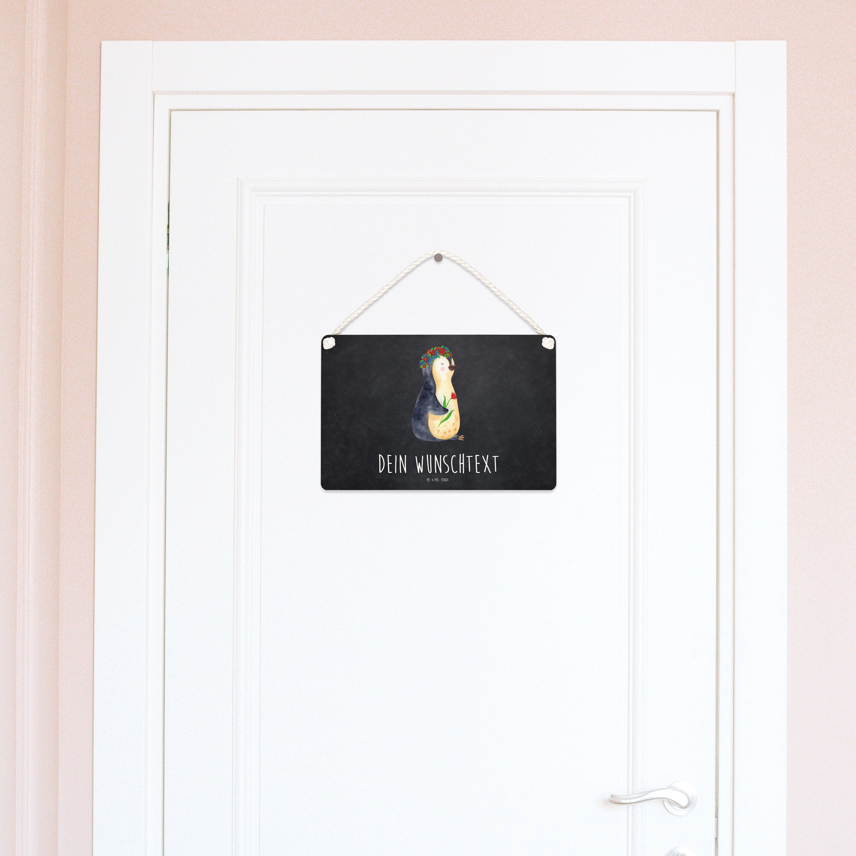 Personalisiertes Deko Schild Pinguin Blumenkranz - DIN A6 - Kreidetafel