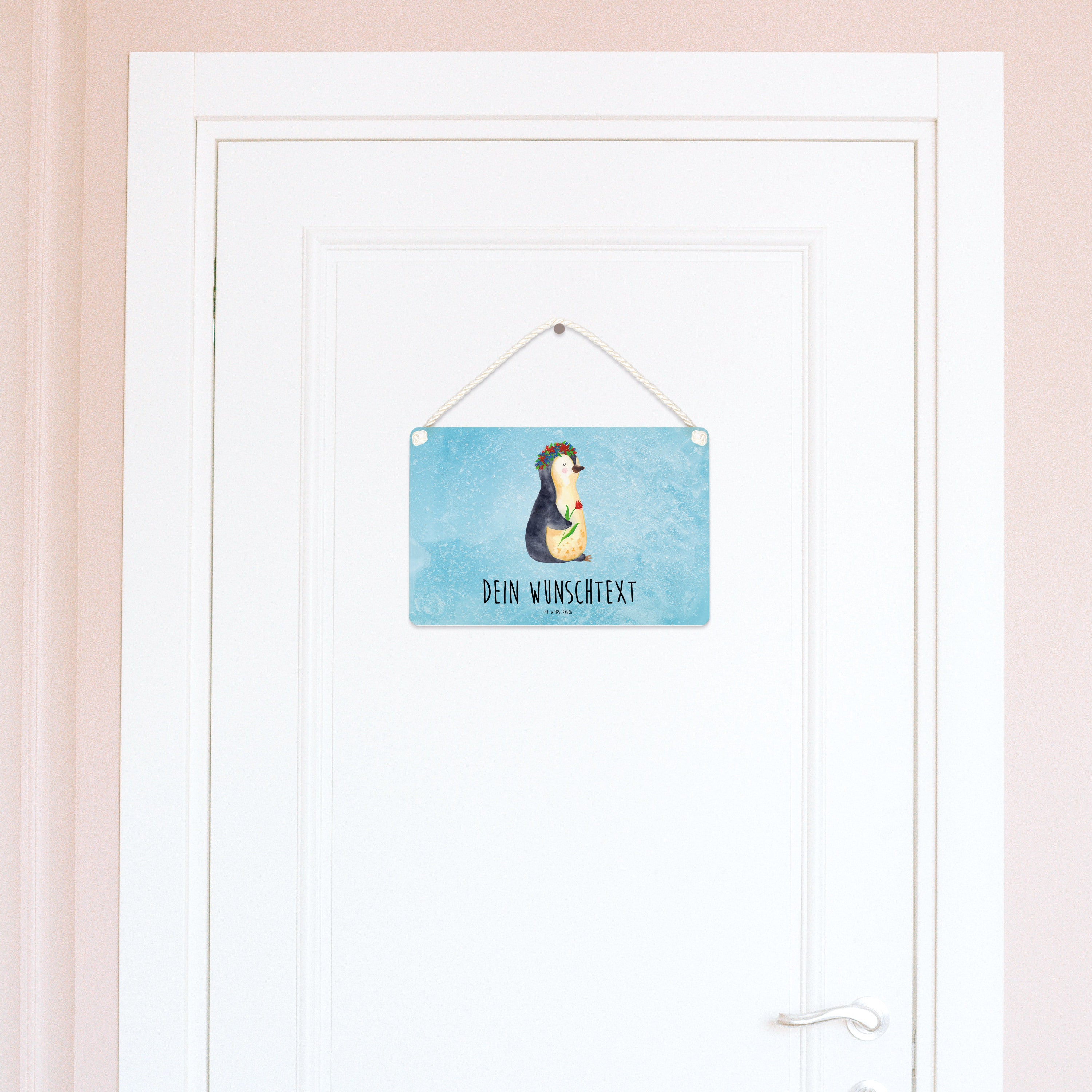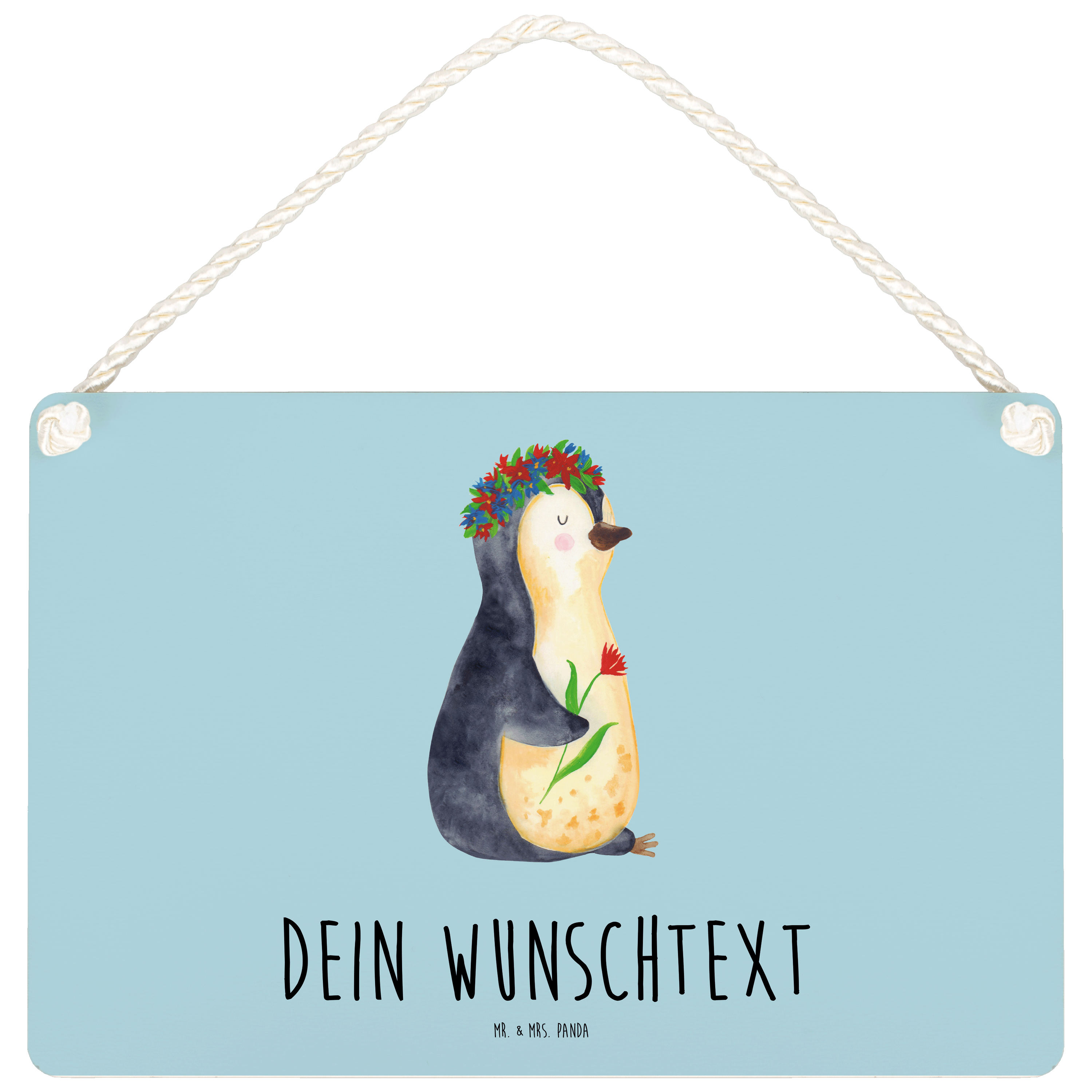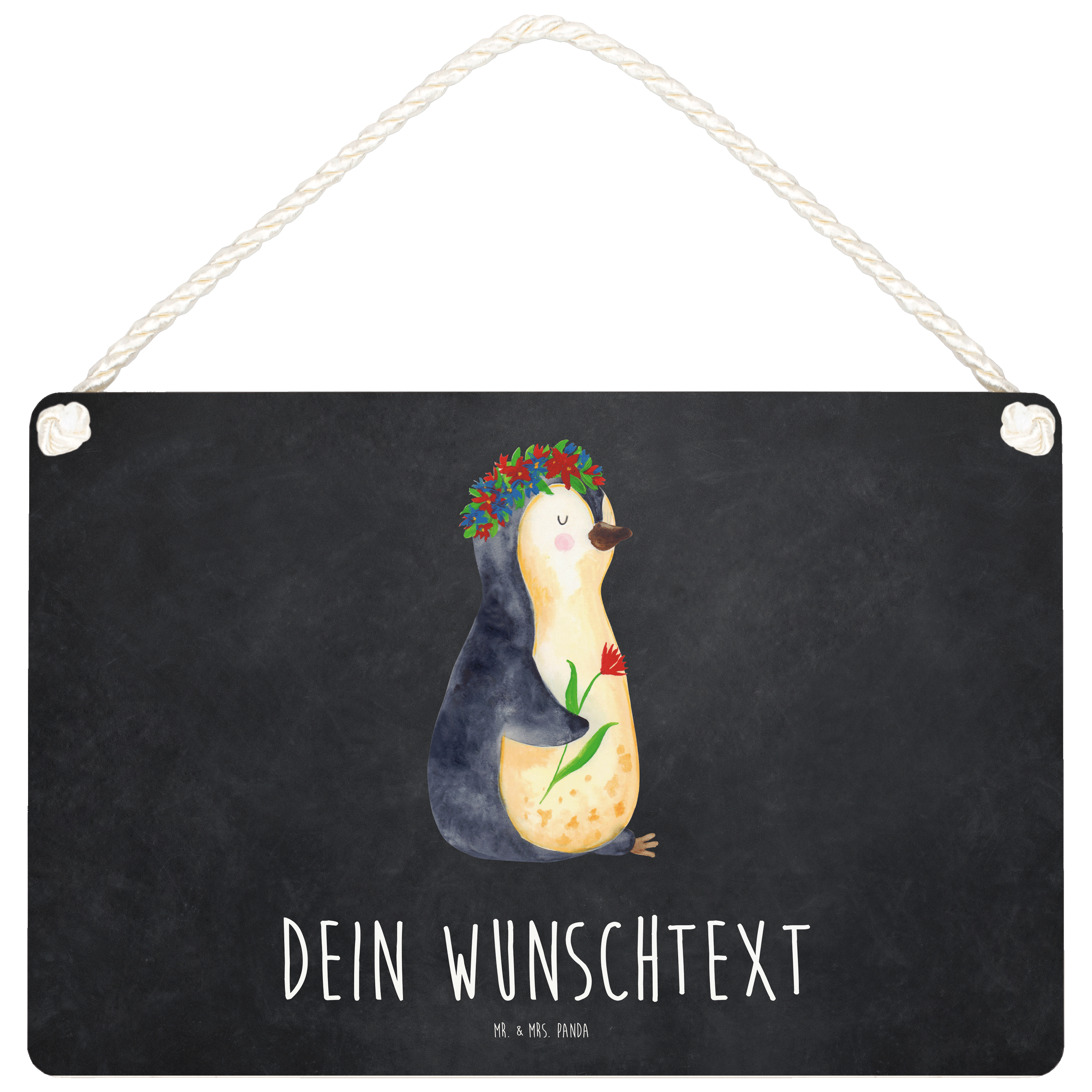 Personalisiertes Deko Schild Pinguin Blumenkranz - DIN A6 - Kreidetafel