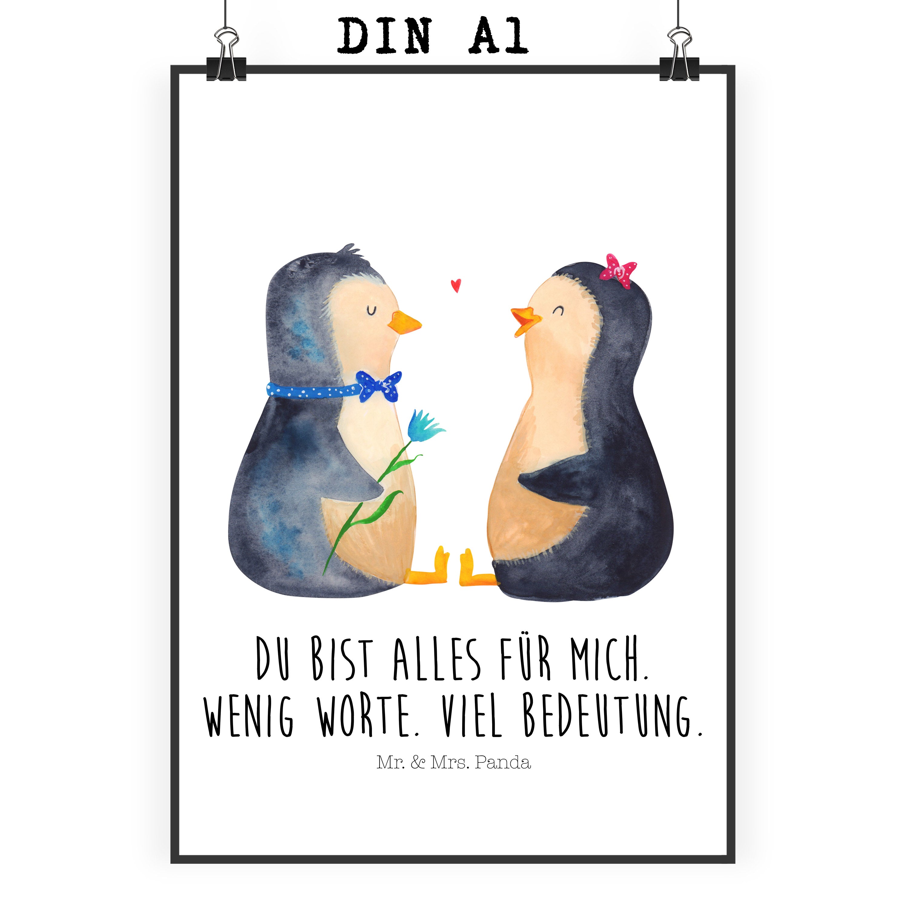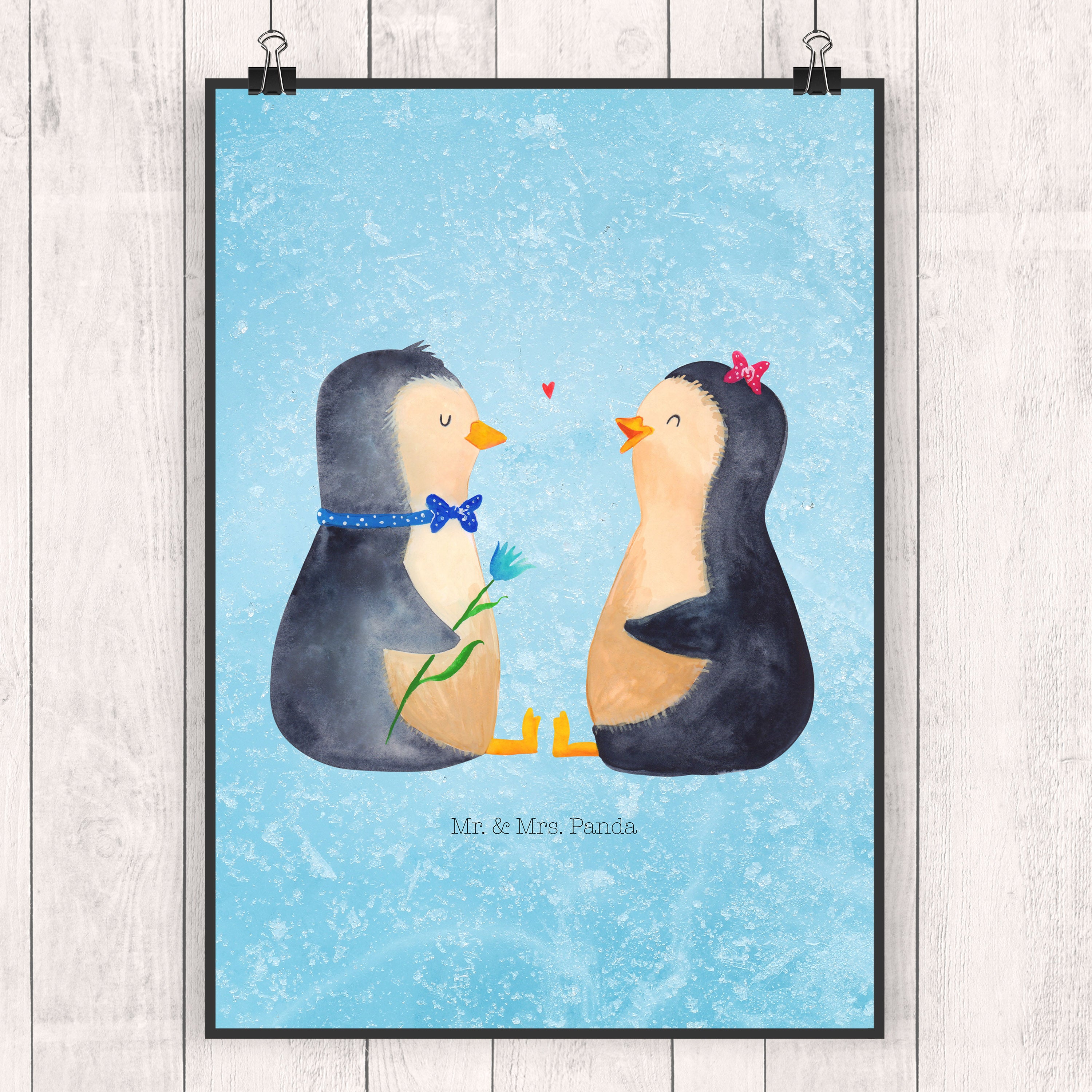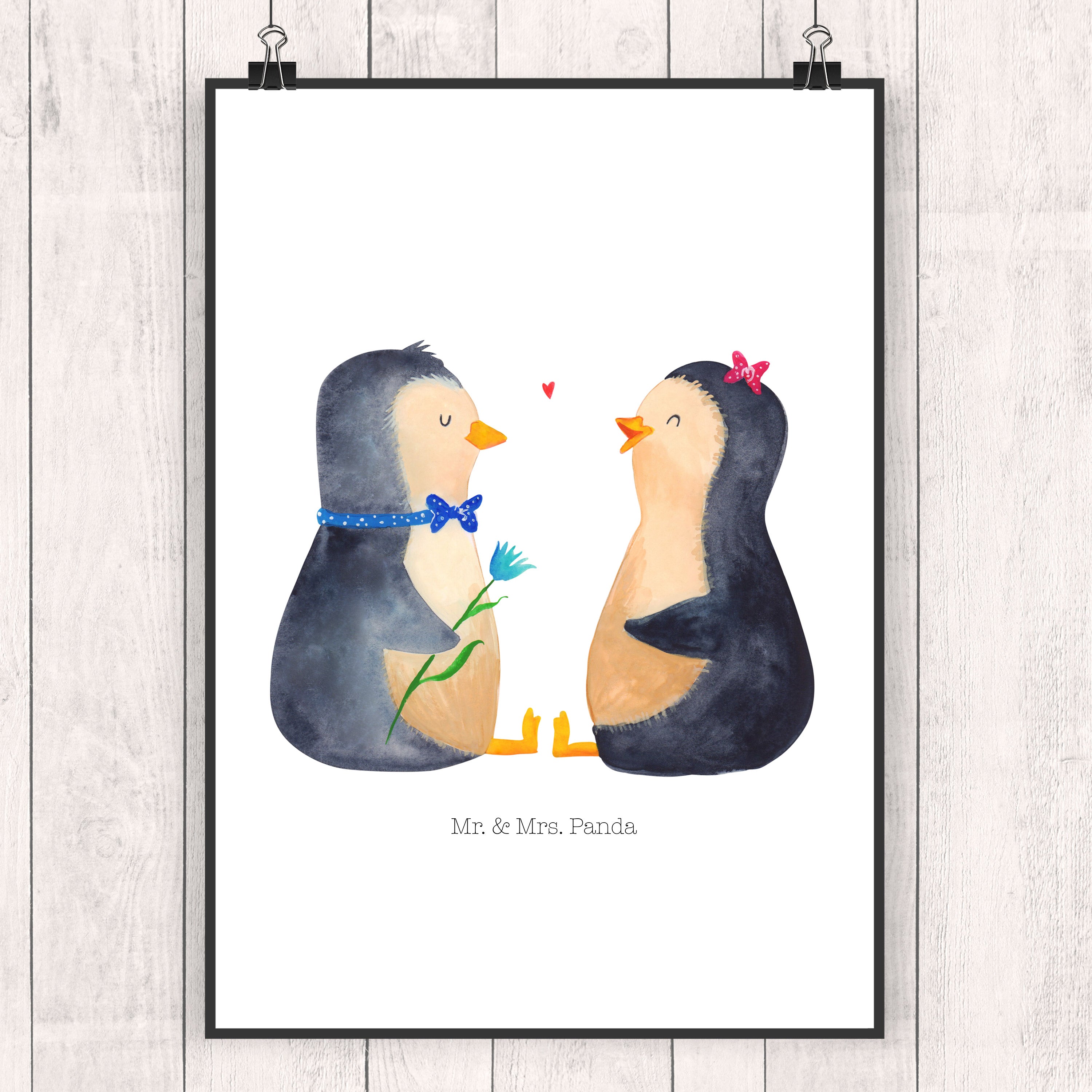 Poster Pinguin Pärchen Poster, Wandposter, Bild, Wanddeko, Küchenposter, Kinderposter, Wanddeko Bild, Raumdekoration, Wanddekoration, Handgemaltes Poster, Mr. & Mrs. Panda Poster, Designposter, Kunstdruck, Posterdruck, Pinguin, Pinguine, Liebe, Liebespaar, Liebesbeweis, Liebesgeschenk, Verlobung, Jahrestag, Hochzeitstag, Hochzeit, Hochzeitsgeschenk, große Liebe, Traumpaar