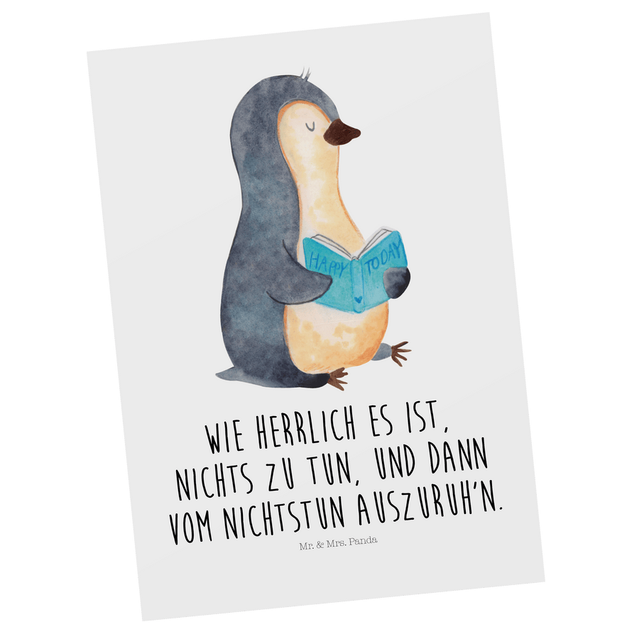 Postkarte Pinguin Buch - mit Spruch - Weiß