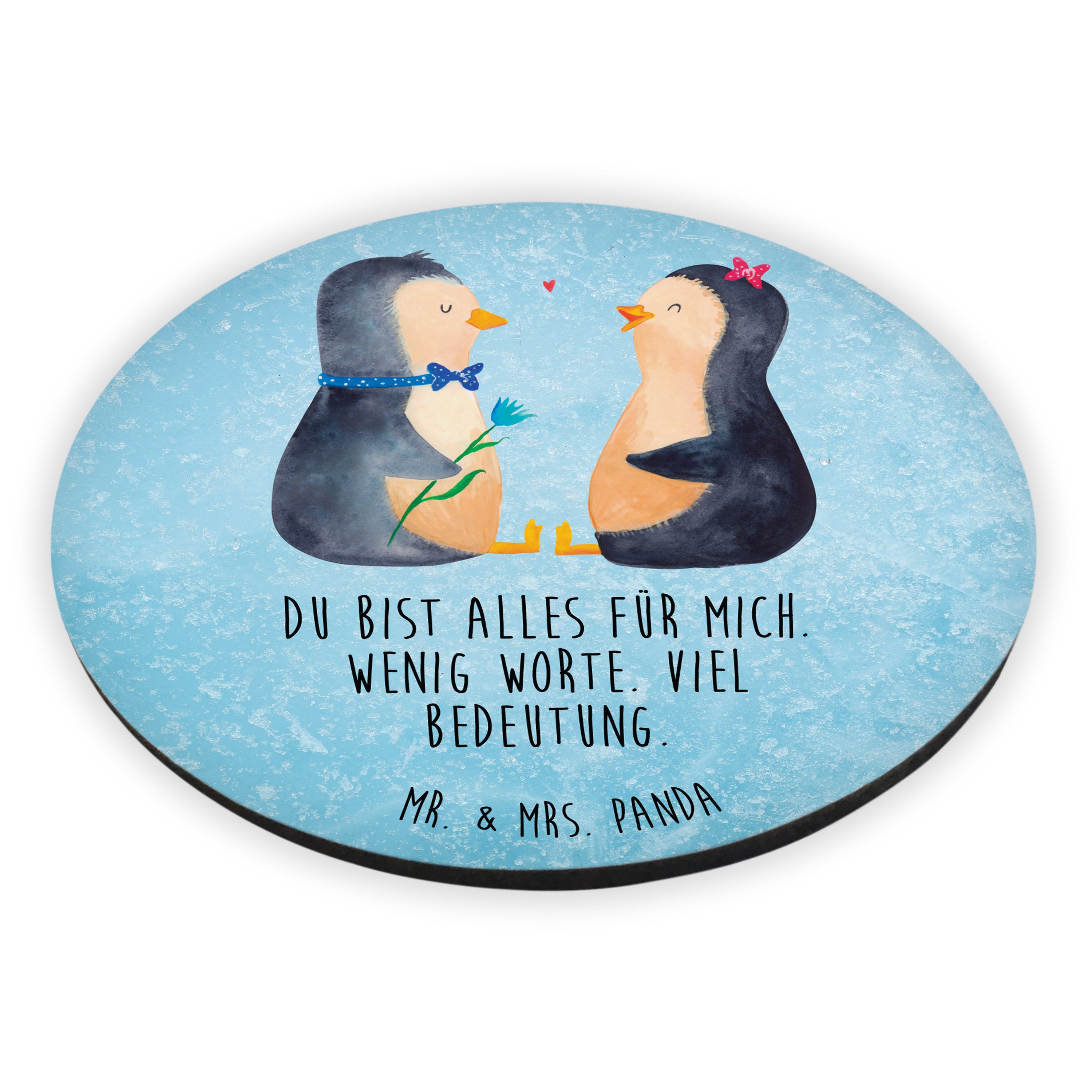 Das "Pinguin Pärchen" von Mr. & Mrs. Panda ist das perfekte Motiv für Verliebte. Die beiden süßen Pinguine sitzen sich gegenüber und schauen sich liebevoll an. Der Junge und das Mädchen sind nicht nur optisch ein tolles Paar und bringen jeden zum Schmunzeln. Dieses Motiv versprüht pure Lebensfreude und ist ein wundervolles Geschenk für den Partner oder die Partnerin.