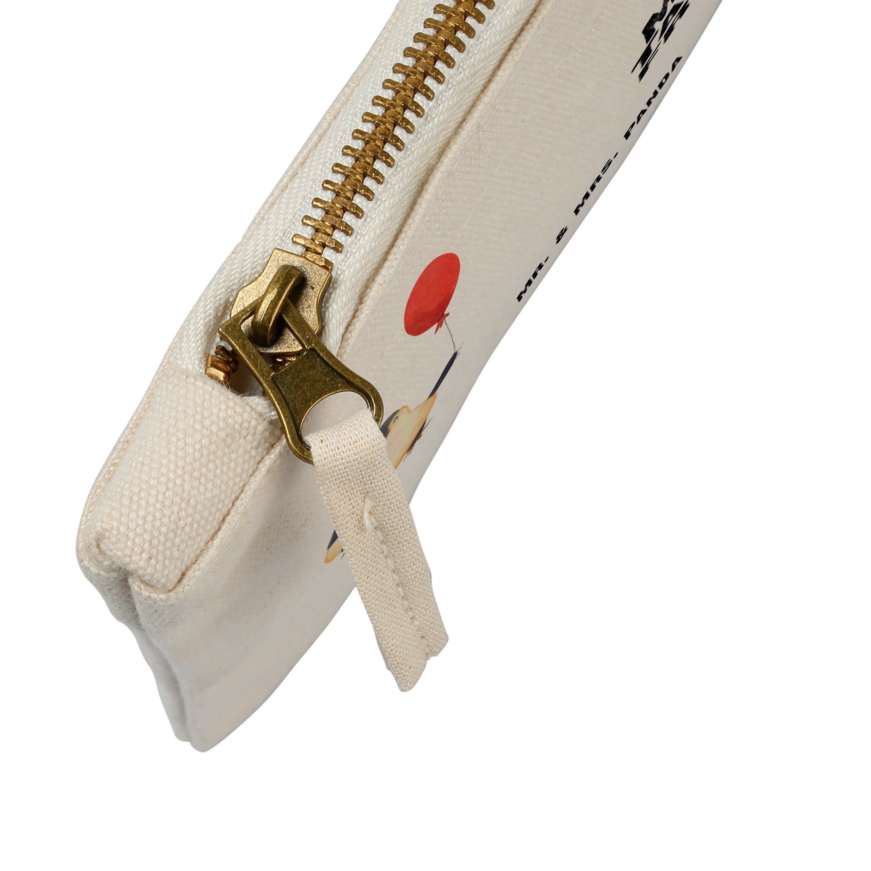 Eine wunderschöne Schminktasche von Mr. & Mrs. Panda mit Reißverschlussfach. Diese Kosmetiktasche oder Kosmetikbeutel ist aus 100% Baumwolle und bedruckt mit unseren wunderschönen handgezeichneten Motiven. Hol dir dieses einzigartige Etui direkt nach Hause - du kannst die Tasche auch perfekt als Stiftemäppchen, Federmappe, Schlamper oder Etui verwenden.