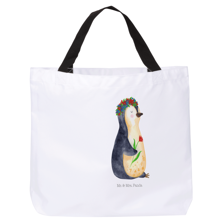Shopper Pinguin Blumenkranz - ohne Spruch - Weiß