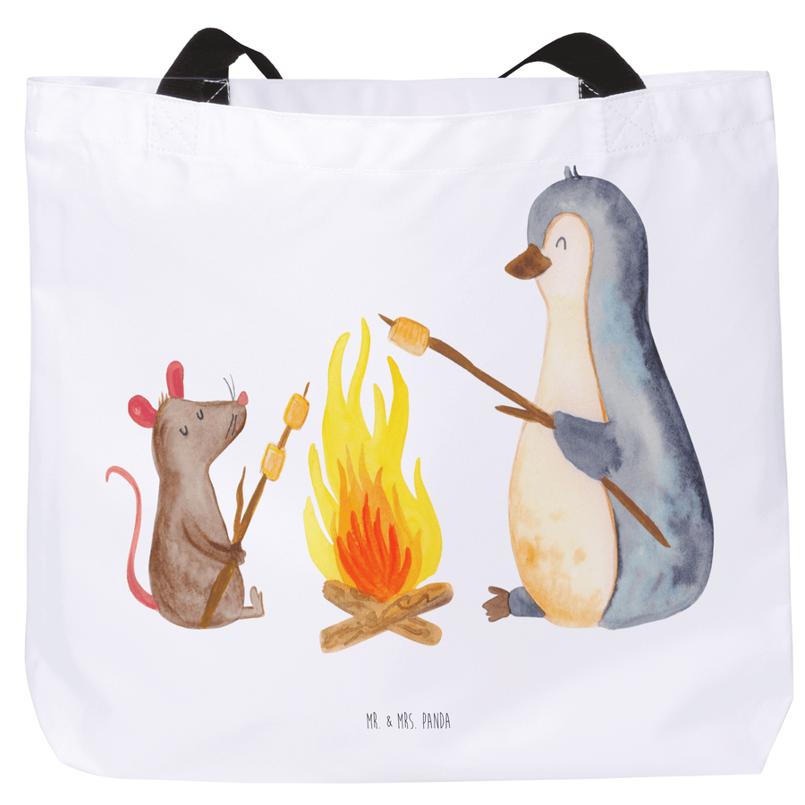 Shopper Pinguin Lagerfeuer - ohne Spruch - Weiß