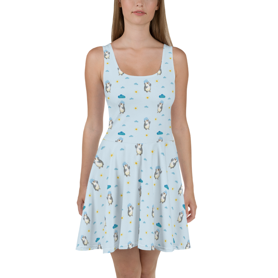 - Das Kleid ist leicht ausgestellt und reicht bis zur Hälfte der Knie.