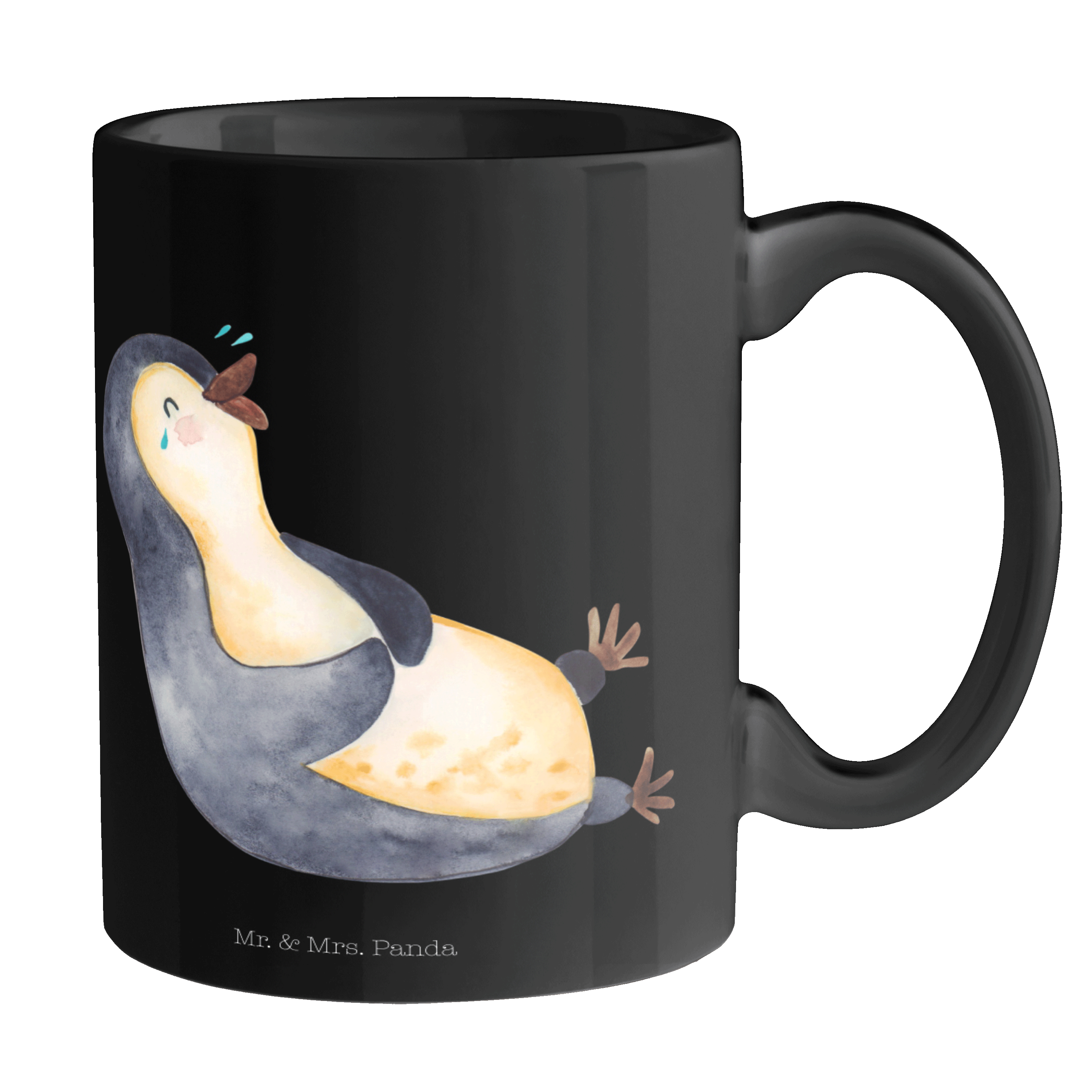 Tasse Pinguin lachend - ohne Spruch - Schwarz