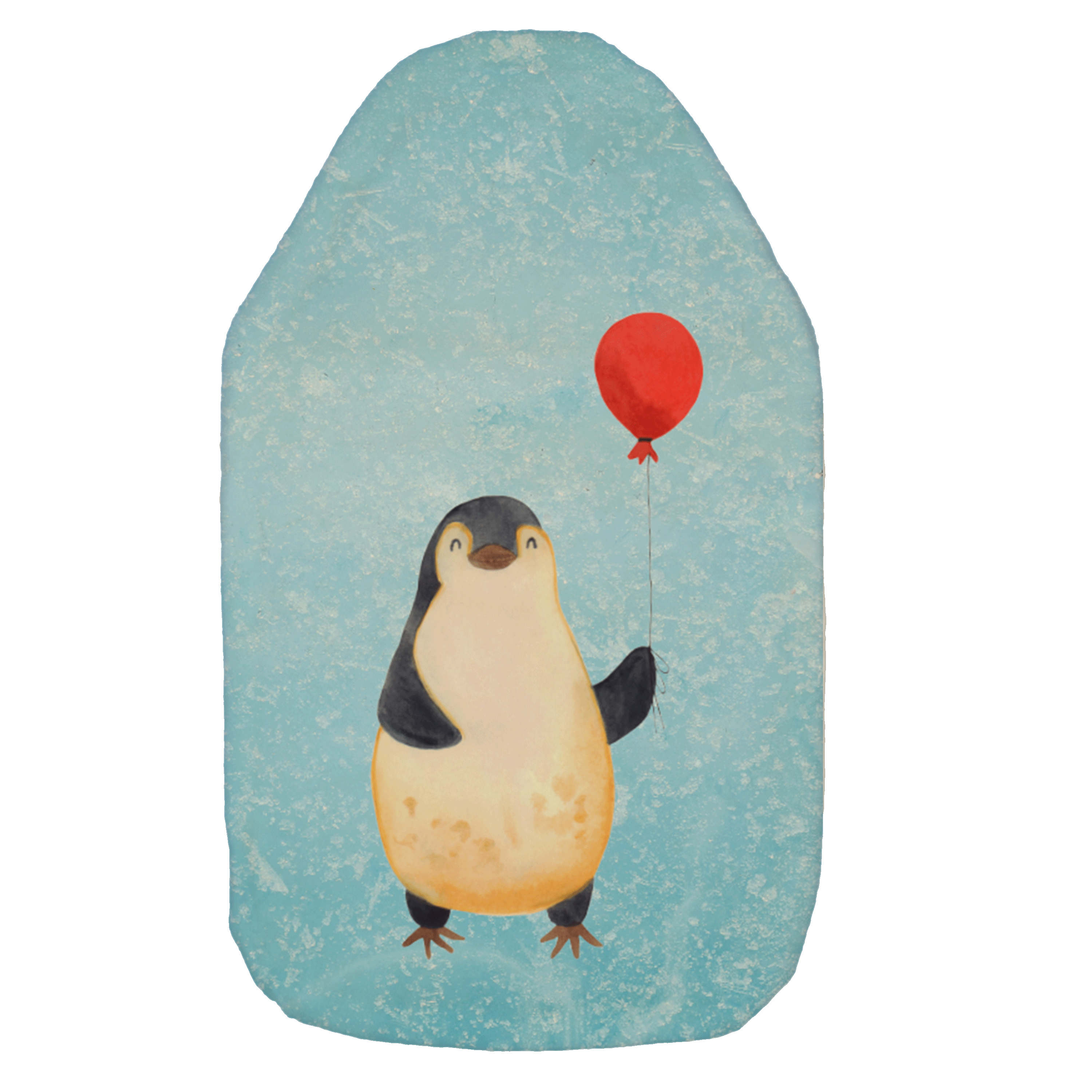 Wärmflasche Pinguin Luftballon - mit Spruch - Eisblau