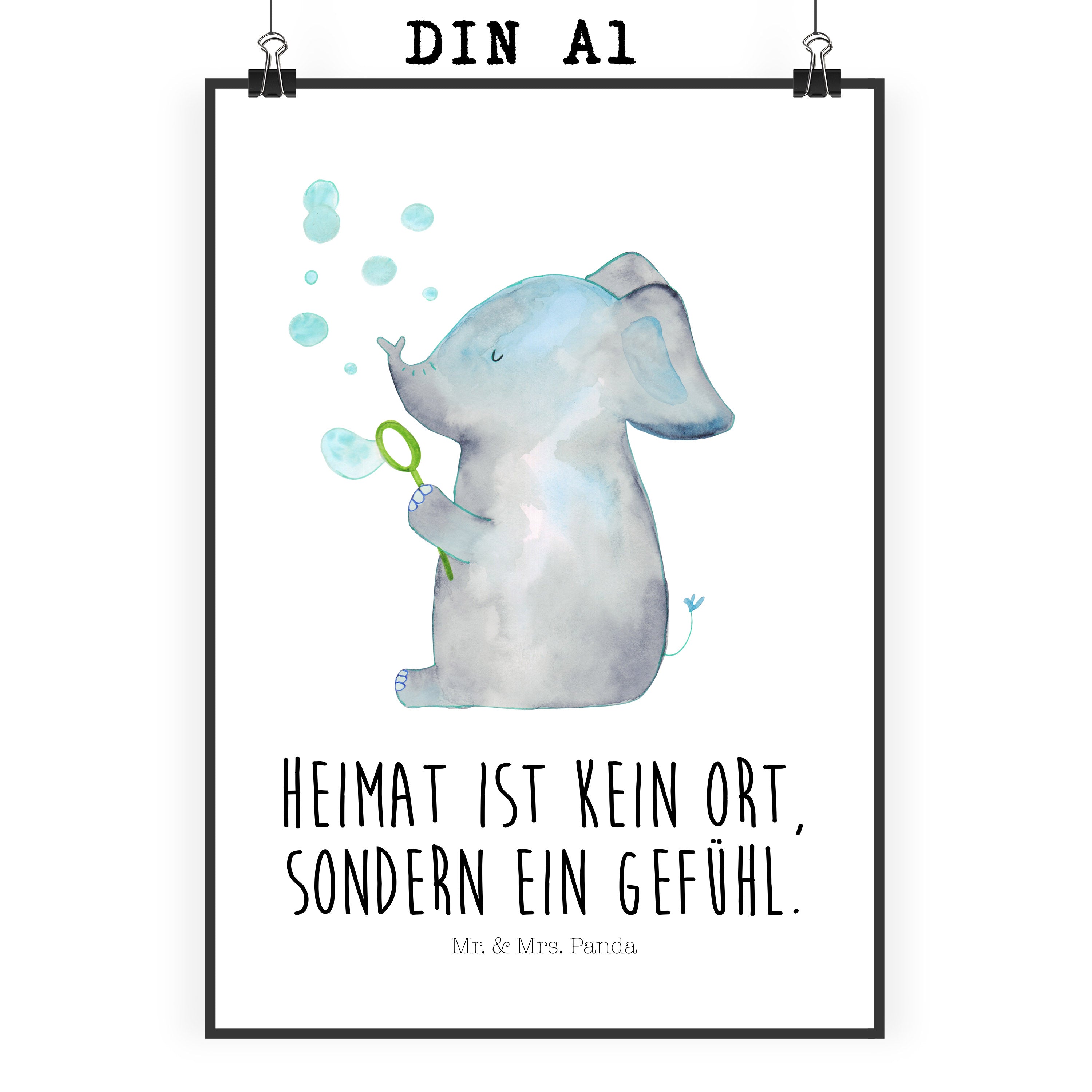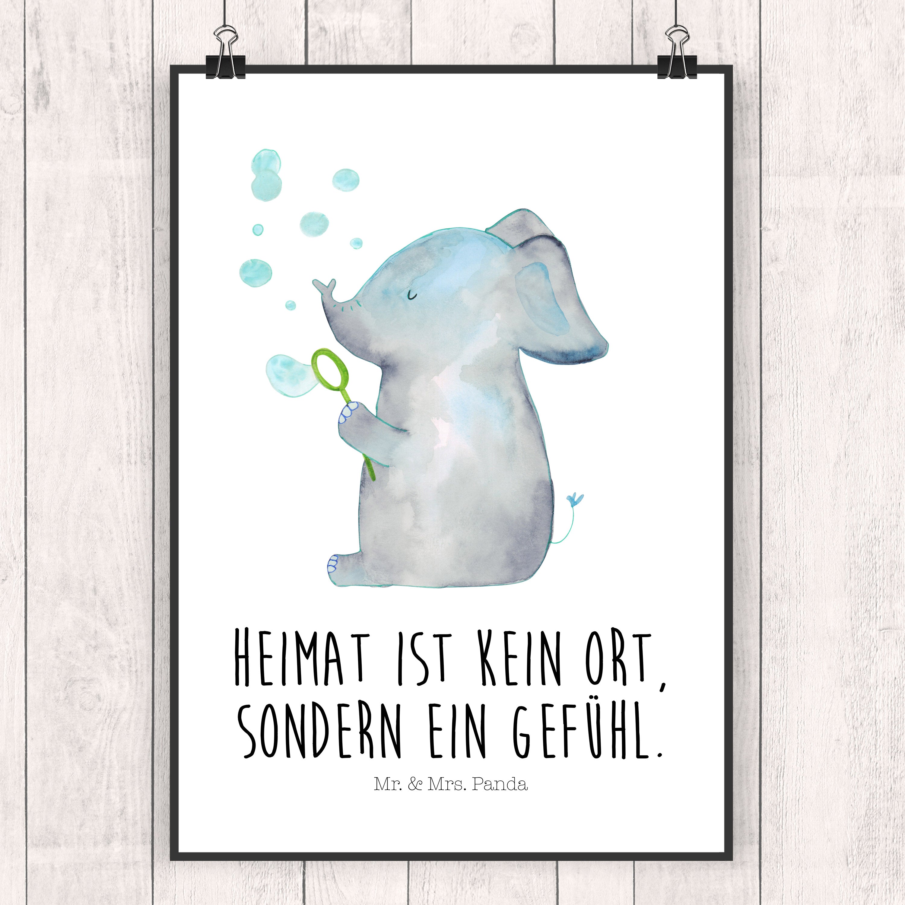 Poster Elefant Seifenblasen - DIN A0 - mit Spruch