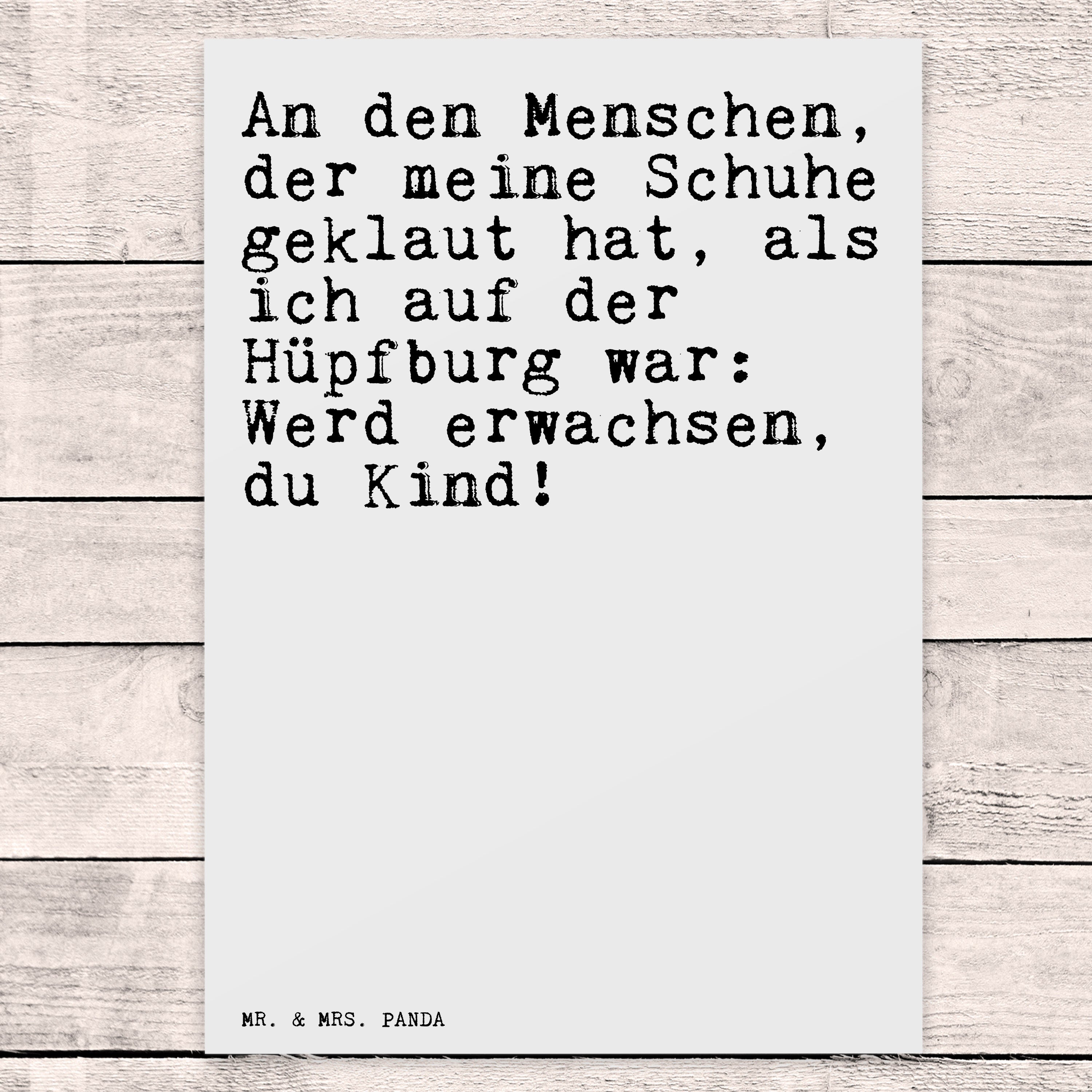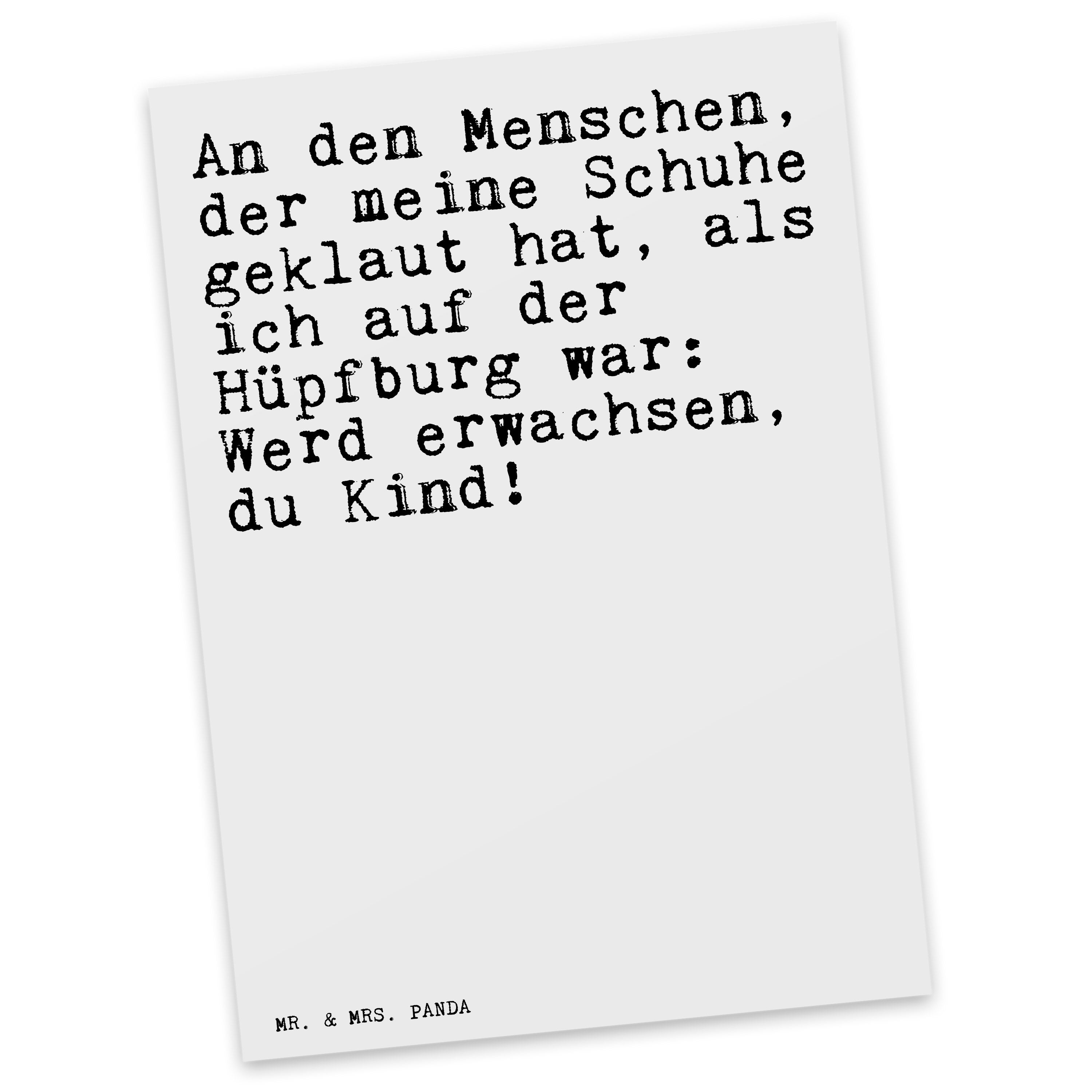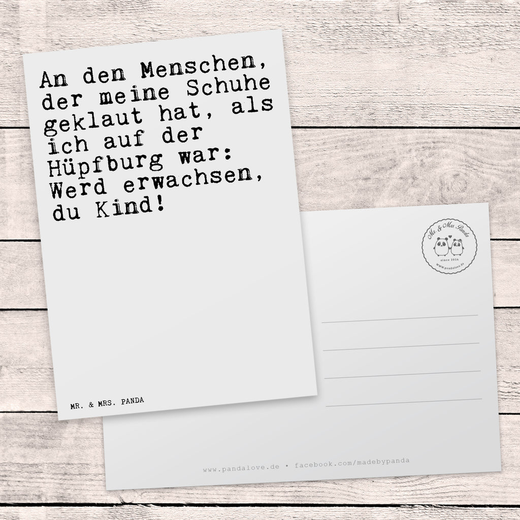 Postkarte Sprüche und Zitate An den Menschen, der meine Schuhe geklaut hat, als ich auf der Hüpfburg war: Werd erwachsen, du Kind!