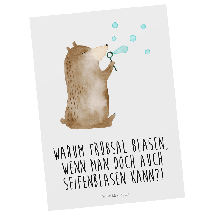 Postkarte Bär Seifenblasen - mit Spruch - Weiß