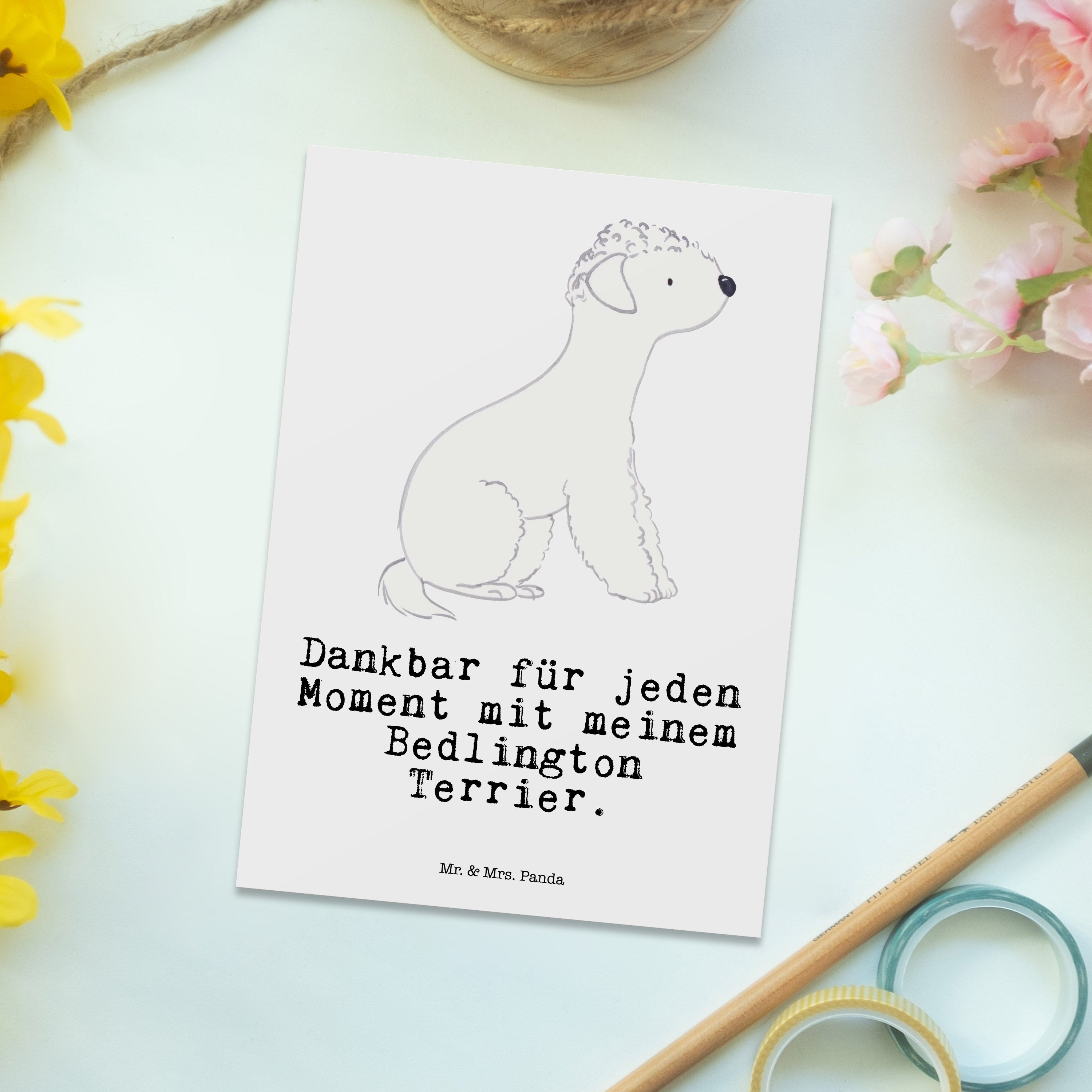 Postkarte Bedlington Terrier Moment