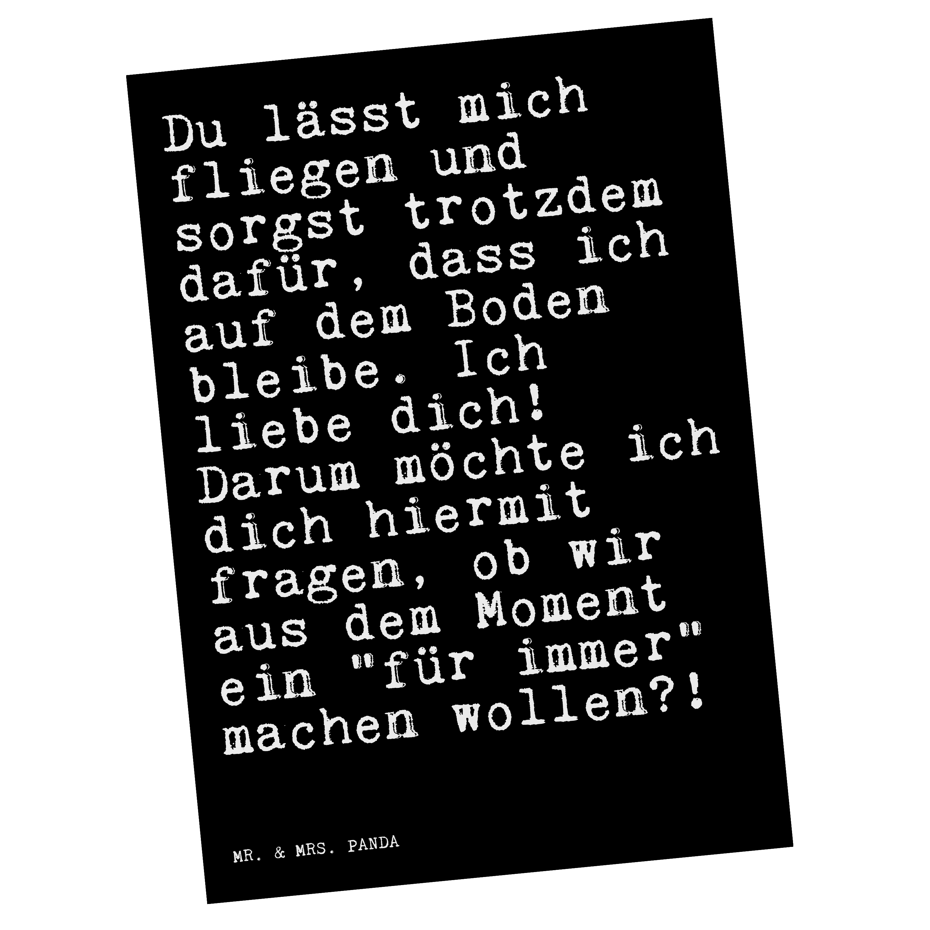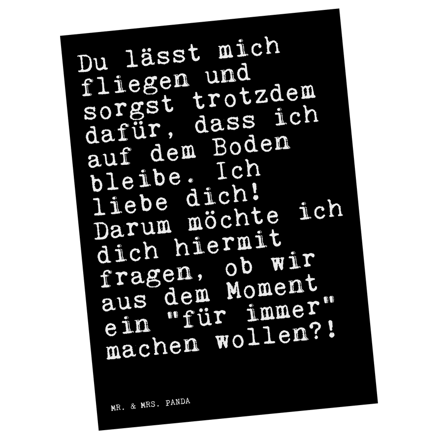 Postkarte Sprüche und Zitate Du lässt mich fliegen und sorgst trotzdem dafür, dass ich auf dem Boden bleibe. Ich liebe dich! Darum möchte ich dich hiermit fragen, ob wir aus dem Moment ein "für immer" machen wollen?!