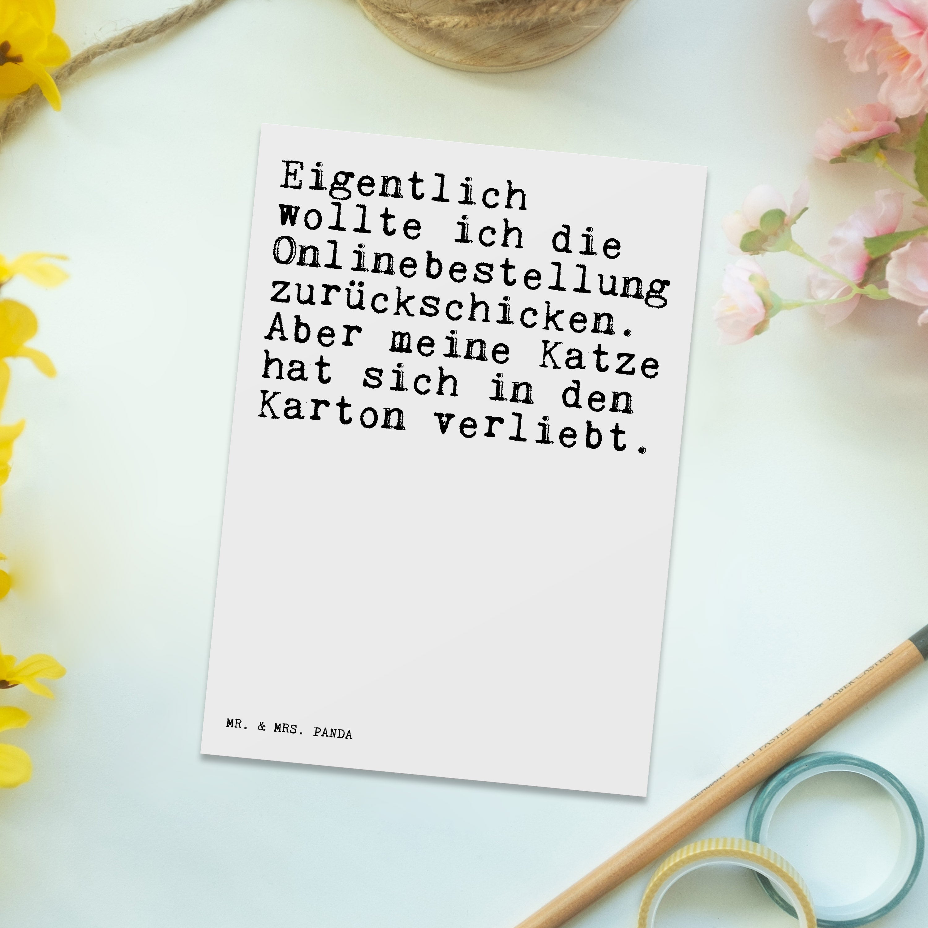 Die Mr. & Mrs. Panda Postkarten haben das Standard Postkarten Maß und sind auf der Rückseite blanko, damit du viel freien Platz für deine kreativen Texte und Zeichnungen hast. Alle Karten werden mit sehr hochwertigen Tinten gedruckt und sind 40 Jahre UV-Lichtbeständig. Sie sind perfekt geeignet zum Geburtstag, zur Hochzeit, zur Taufe oder auch zu jedem anderen Anlass. Und können deine Wände ein wenig bunter und lebensfroher machen!