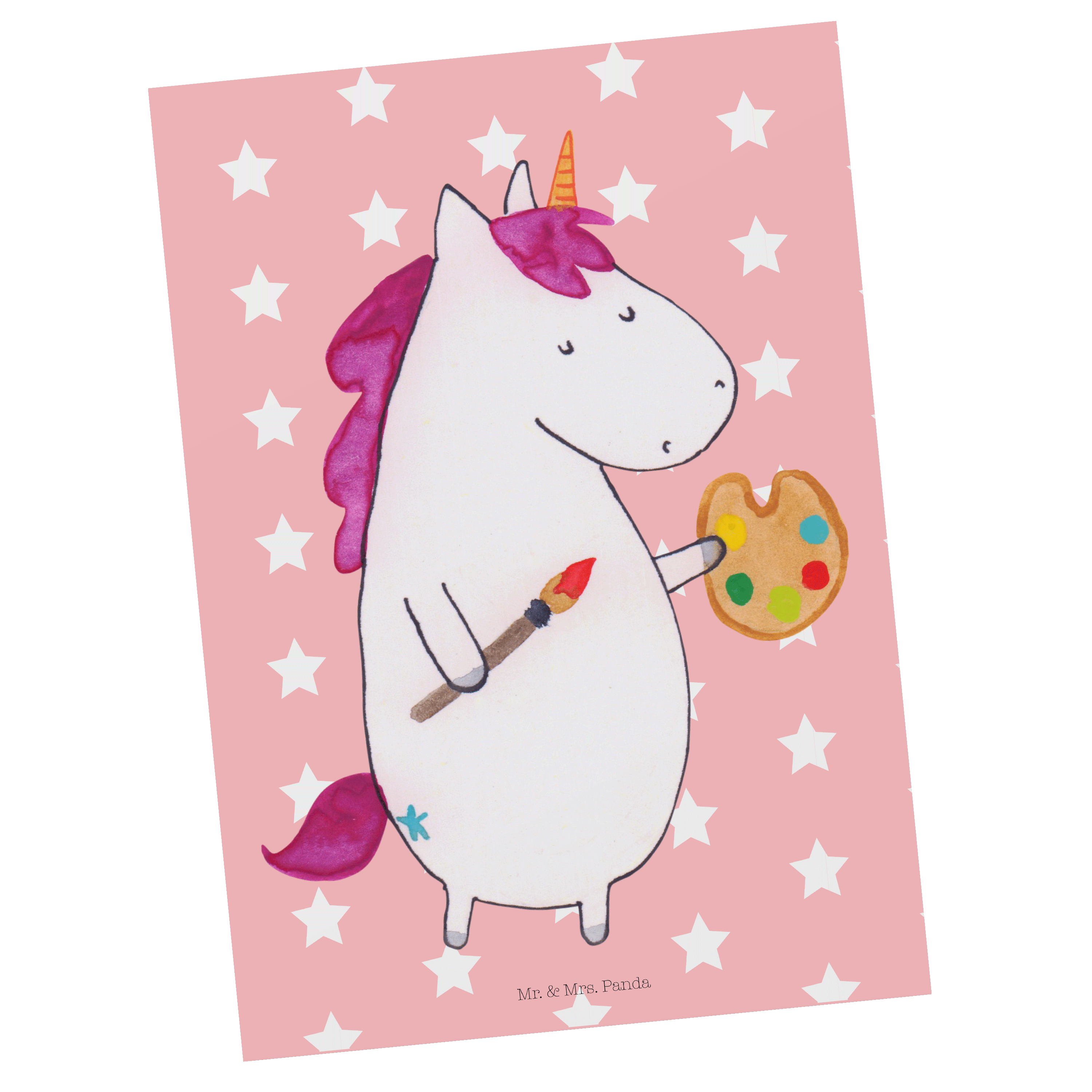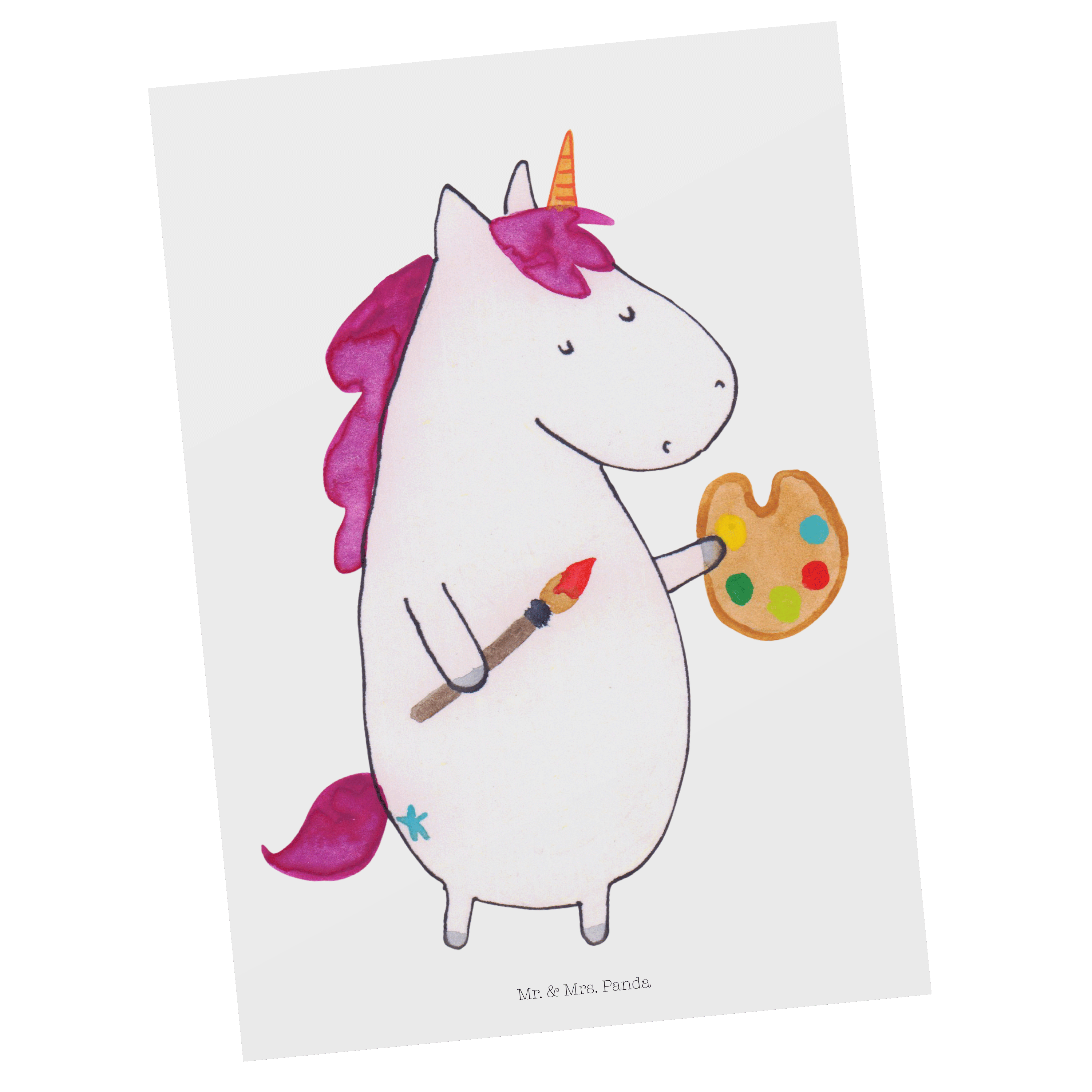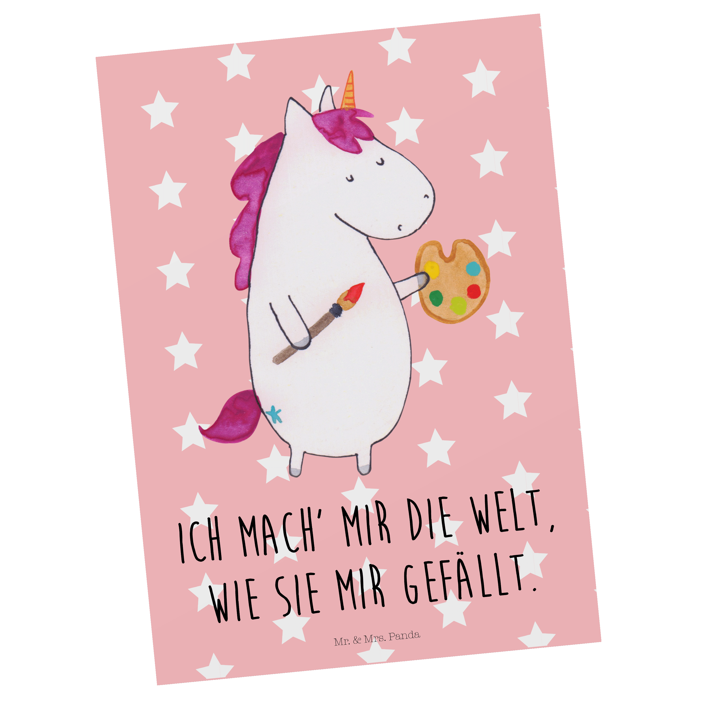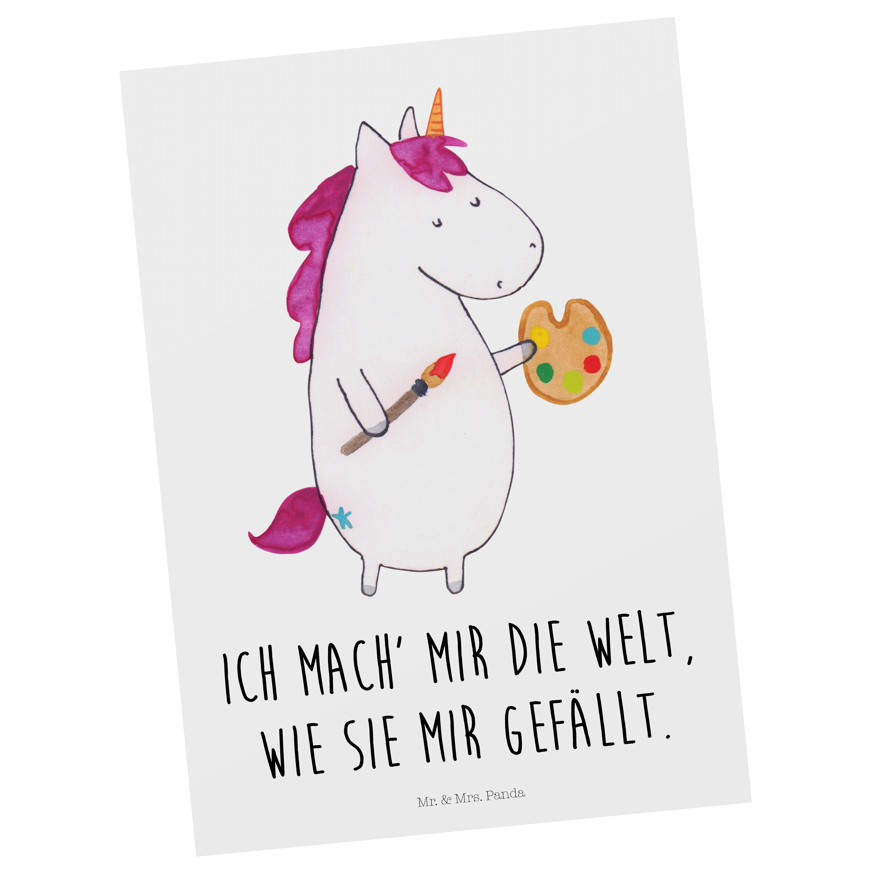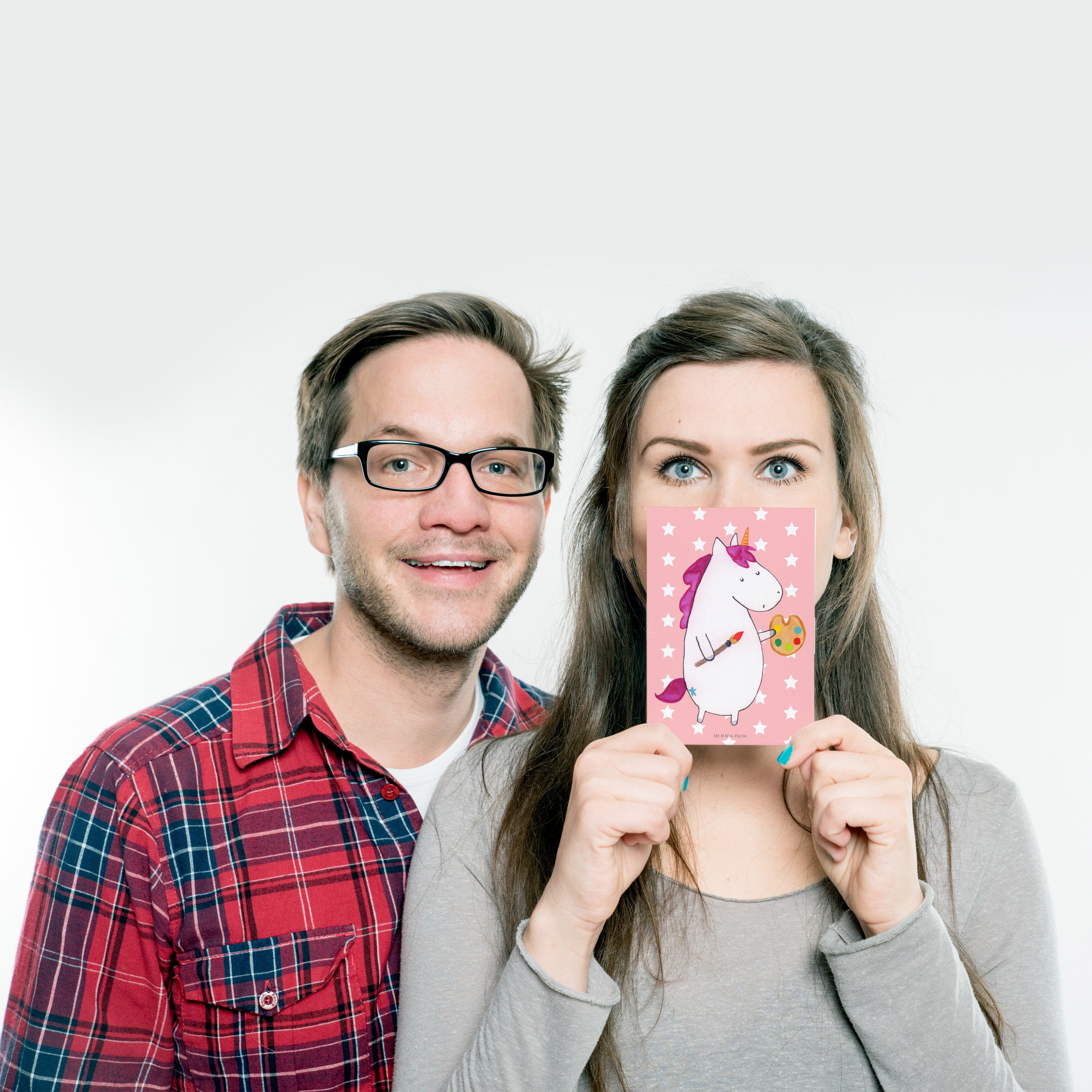 Postkarte Einhorn Künstler Geschenkkarte, Grußkarte, Karte, Einladung, Ansichtskarte, Geburtstagskarte, Einladungskarte, Einhorn, Einhörner, Einhorn Deko, Pegasus, Unicorn, Englisch, Künstler, Artist, Malen, Zeichnen, Welt, Farbe, Stift, Pinsel, Geschenk, Maler