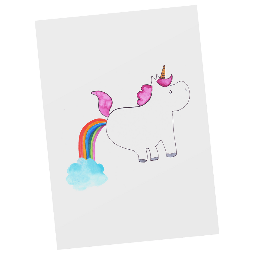 Das pupsende Einhorn ist die schönste Botschaft, um die Freundin zu fragen, ob sie das Erwachsensein manchmal auch nervt. Mit viel Glitzer über einen Regenbogen zu jagen macht auch irgendwie mehr Spaß als den Müll rauszubringen. Vielleicht ist das pupsende Einhorn daher eines der beliebtesten Motive von Mr. & Mrs. Panda.