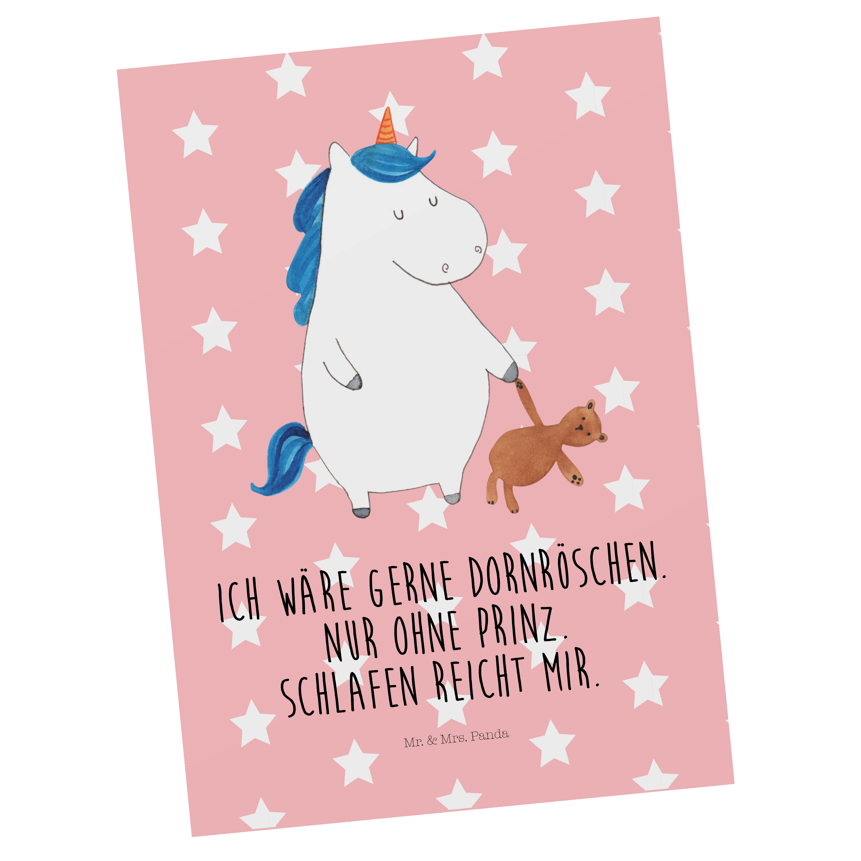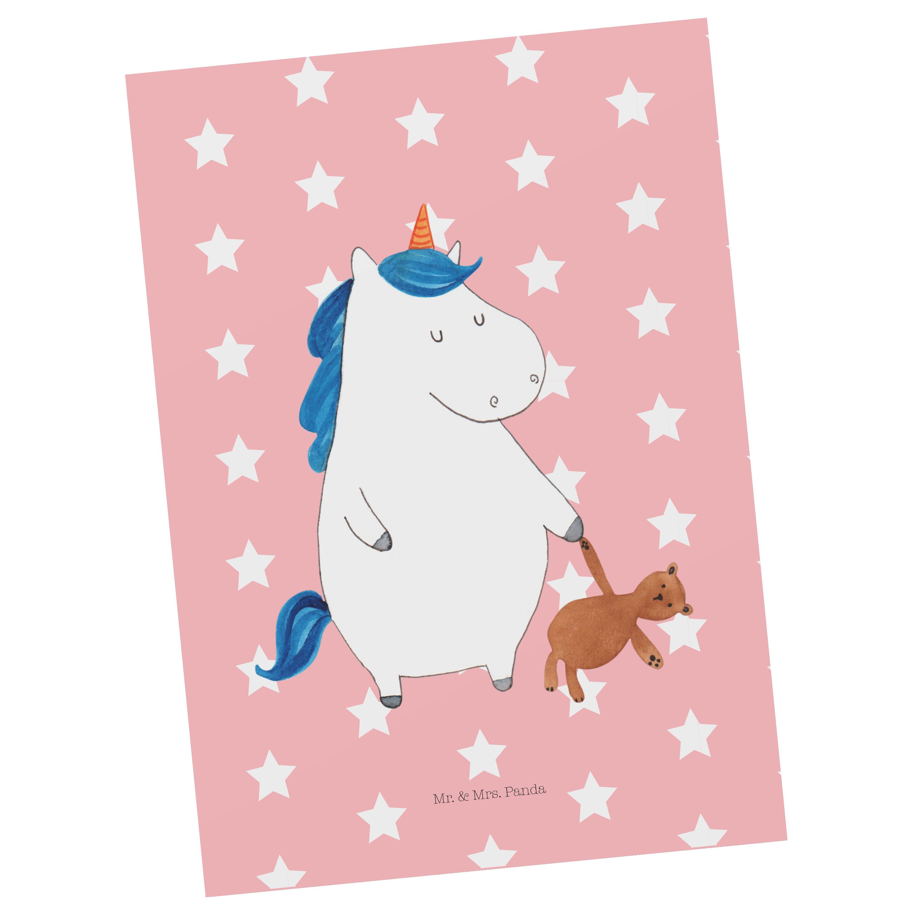 Postkarte Einhorn Teddy - mit Spruch - Rot Pastell