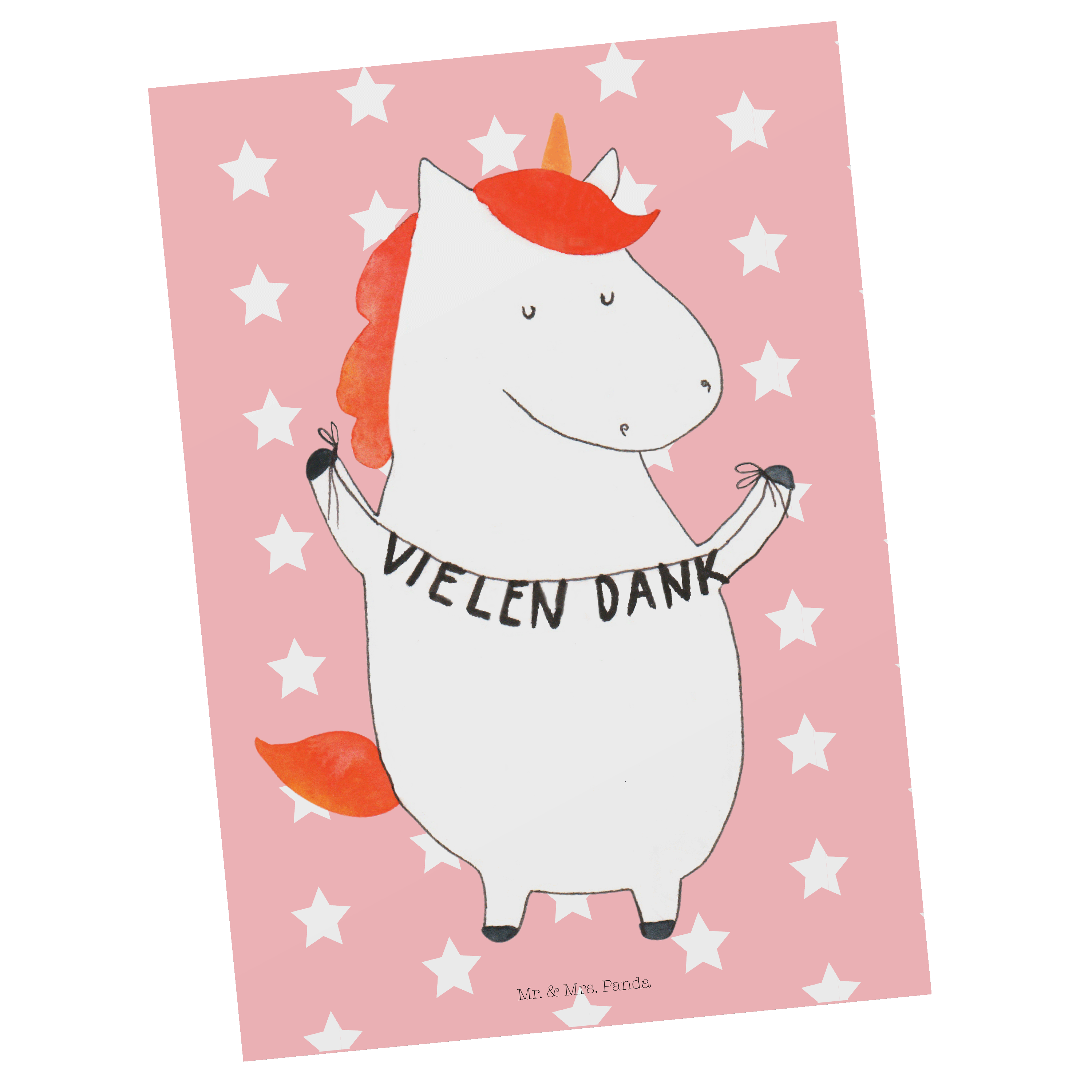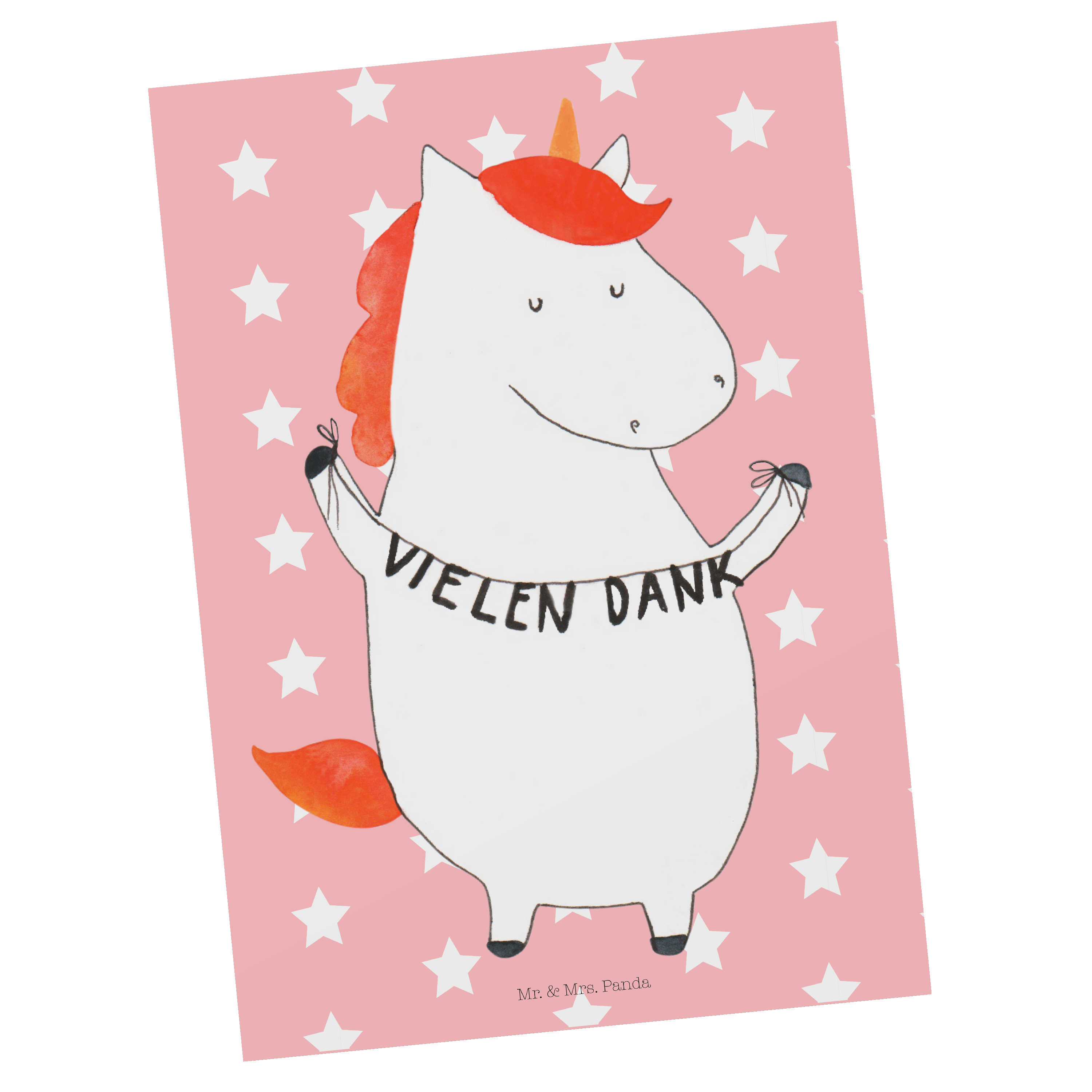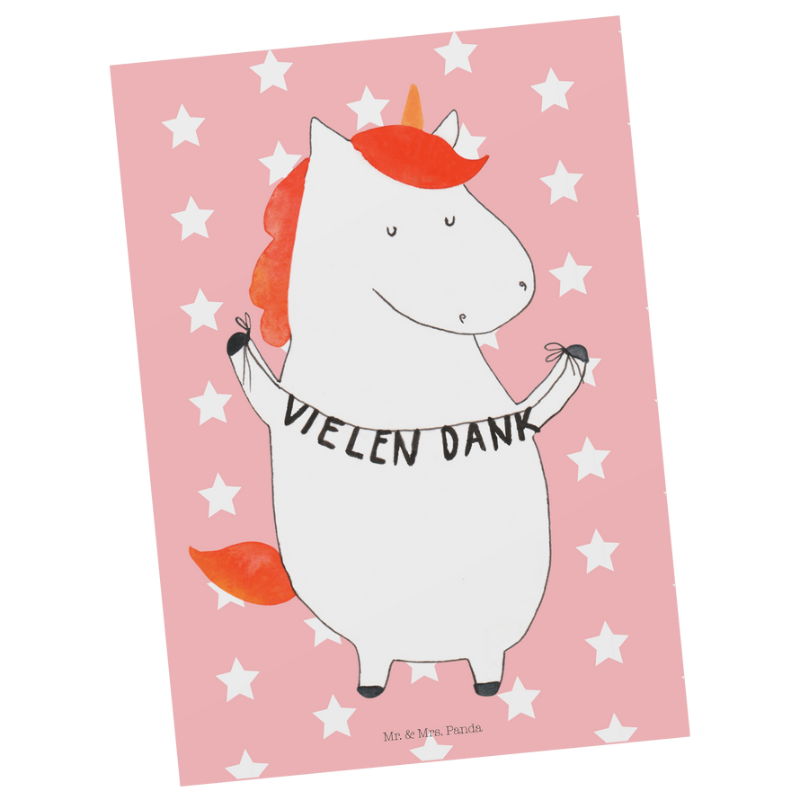 Postkarte Einhorn Vielen Dank - mit Spruch - Rot Pastell