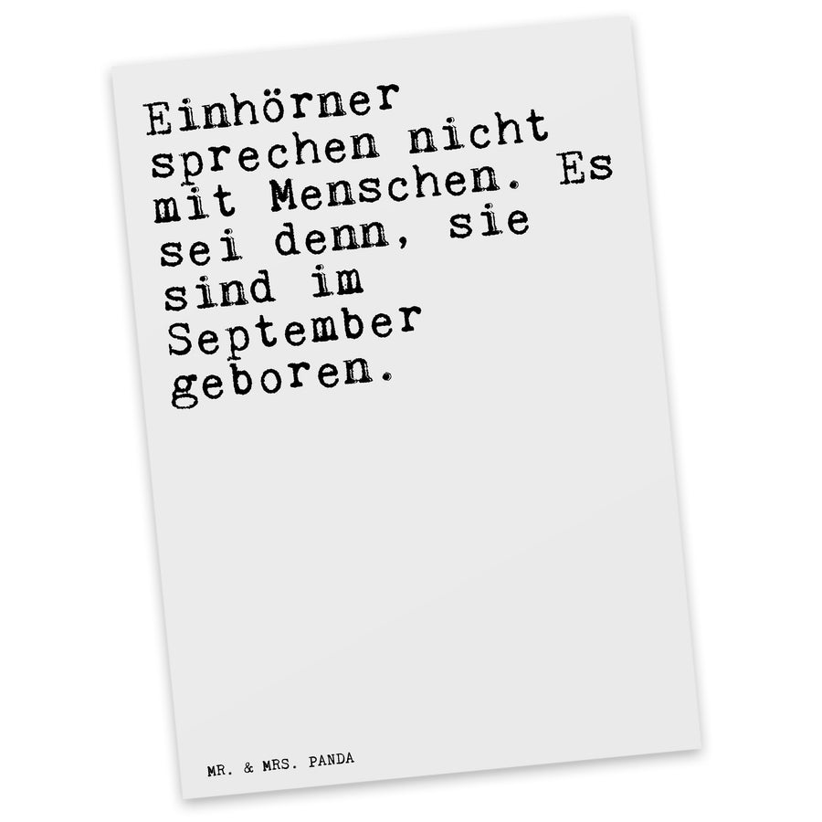 Postkarte Sprüche und Zitate Einhörner sprechen nicht mit Menschen. Es sei denn, sie sind im September geboren.