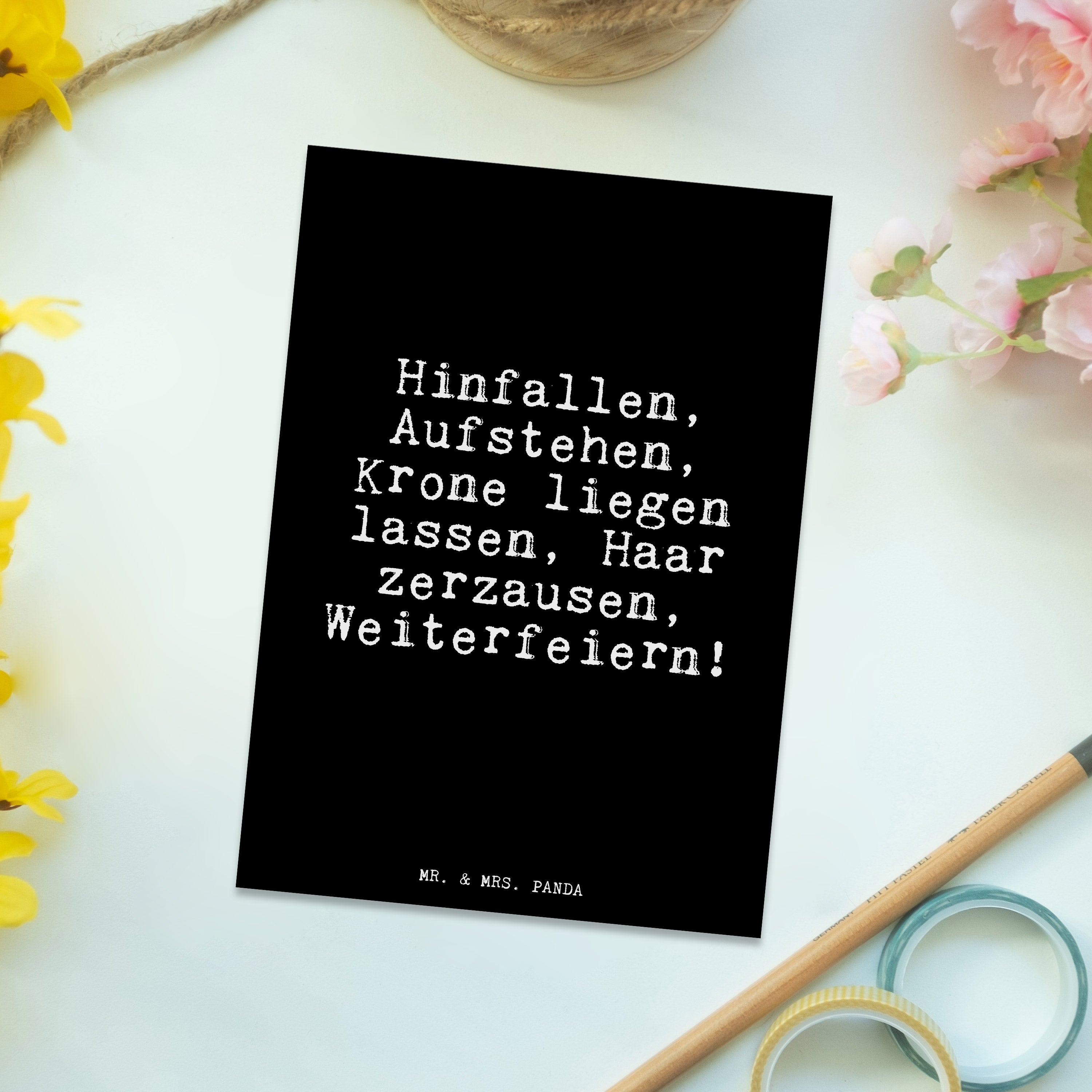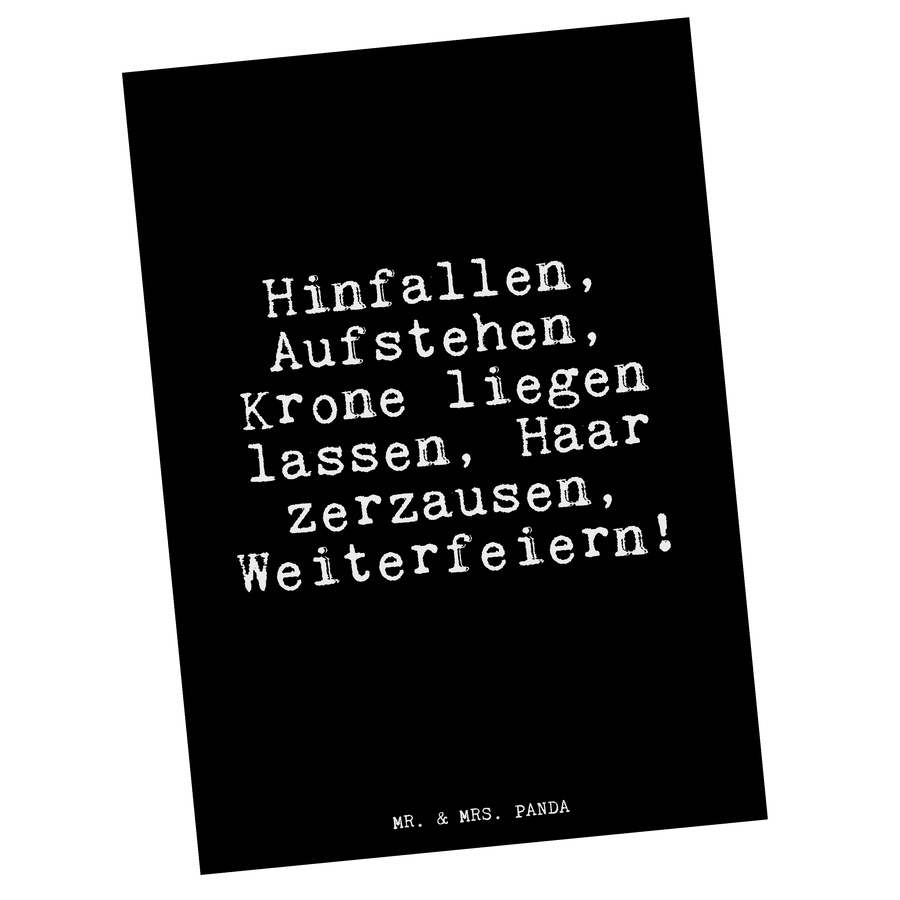 Postkarte Fun Talk Hinfallen, Aufstehen, Krone liegen lassen, Haar zerzausen, Weiterfeiern!