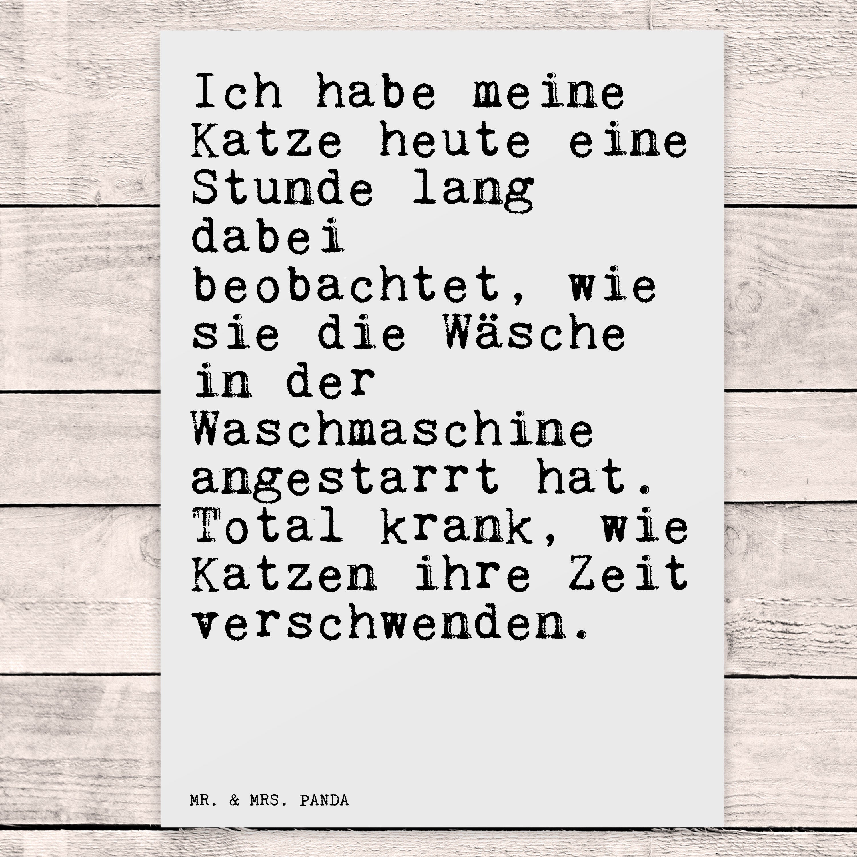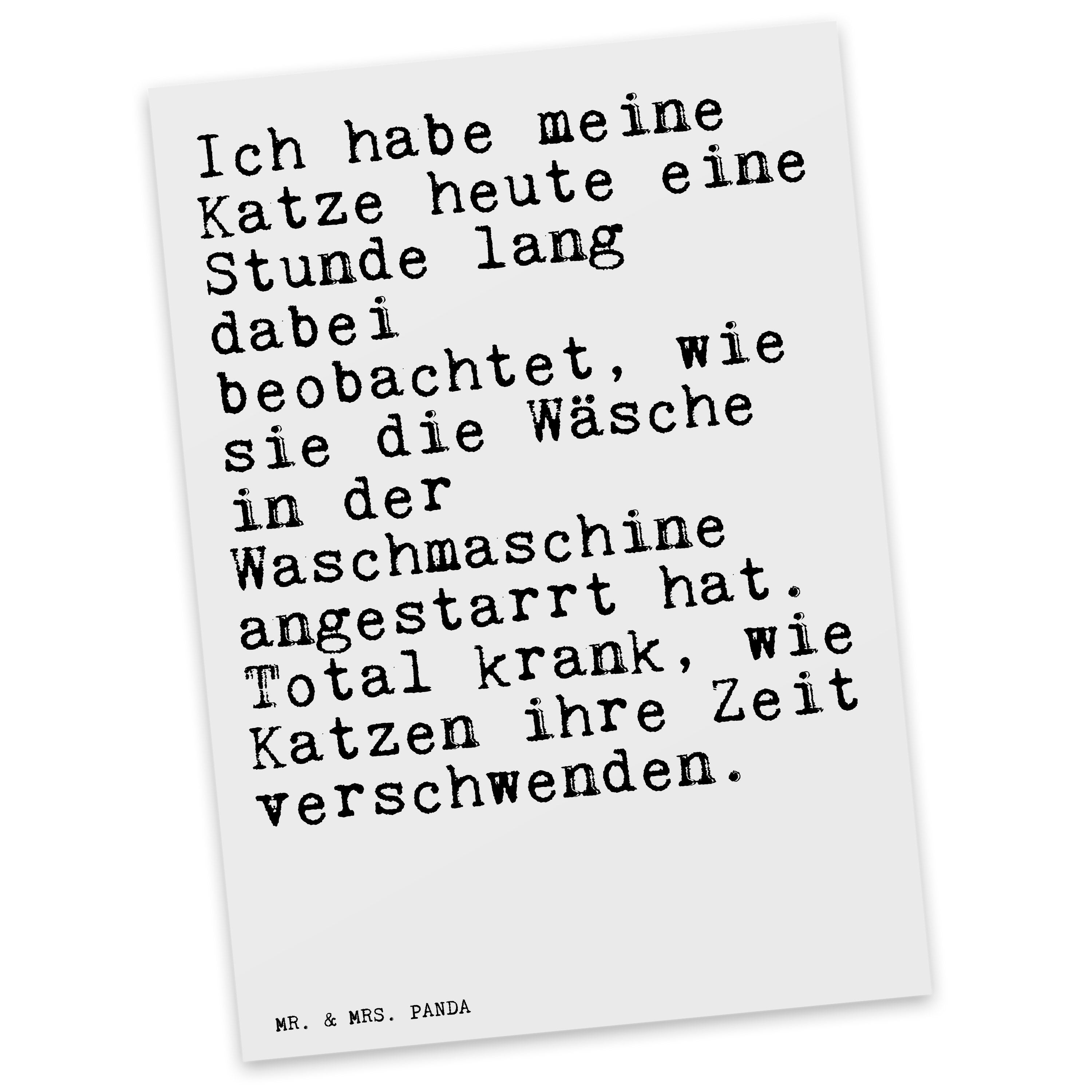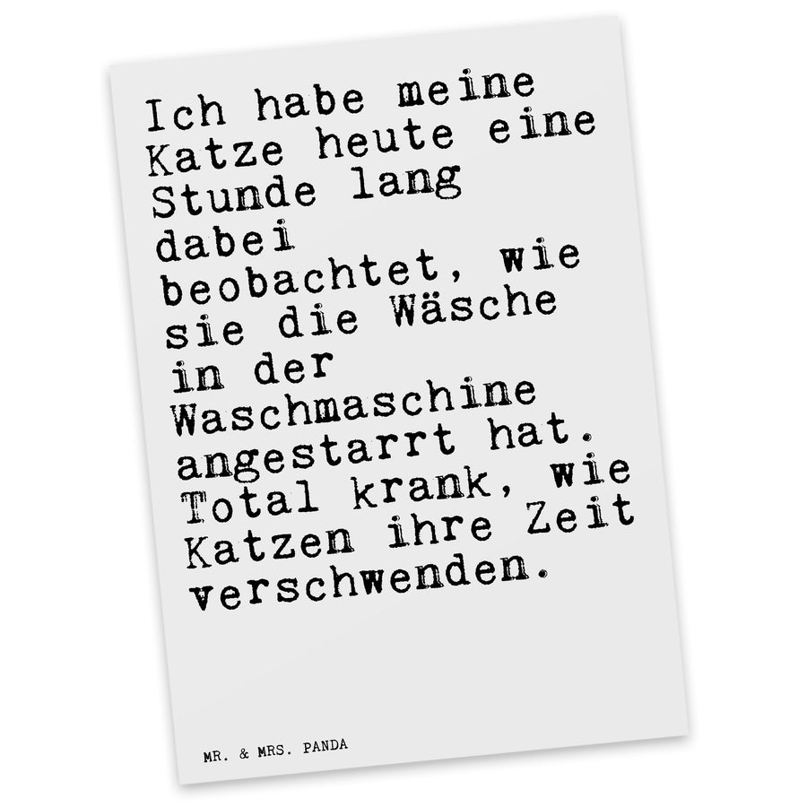 Postkarte Sprüche und Zitate Ich habe meine Katze heute eine Stunde lang dabei beobachtet, wie sie die Wäsche in der Waschmaschine angestarrt hat. Total krank, wie Katzen ihre Zeit verschwenden.