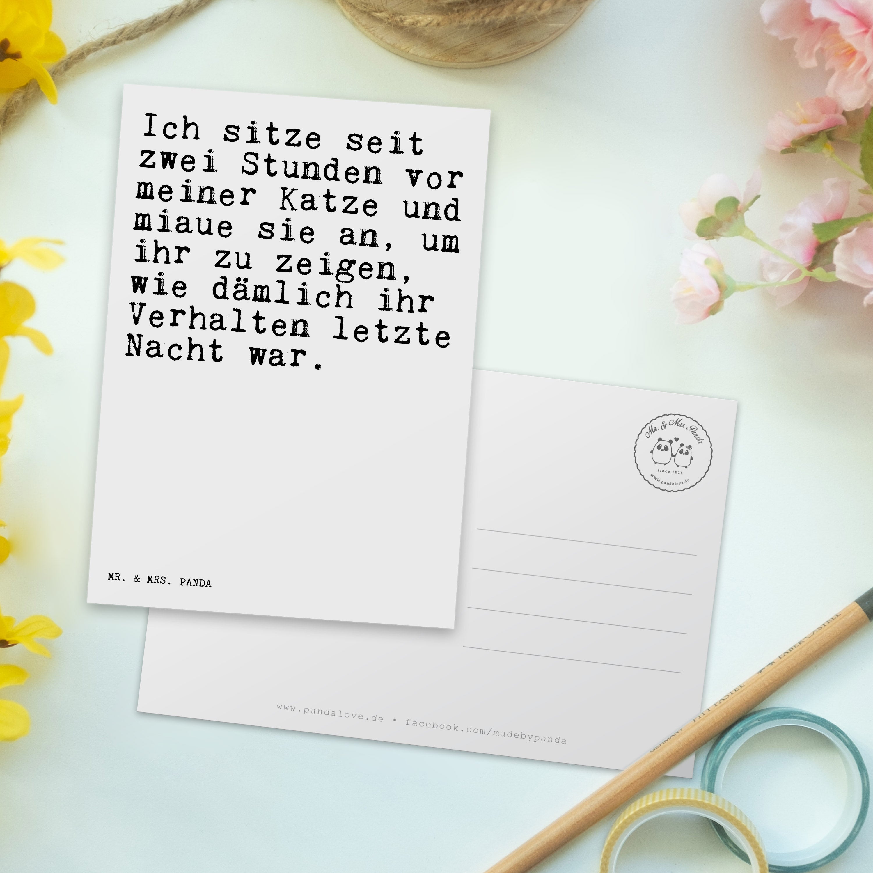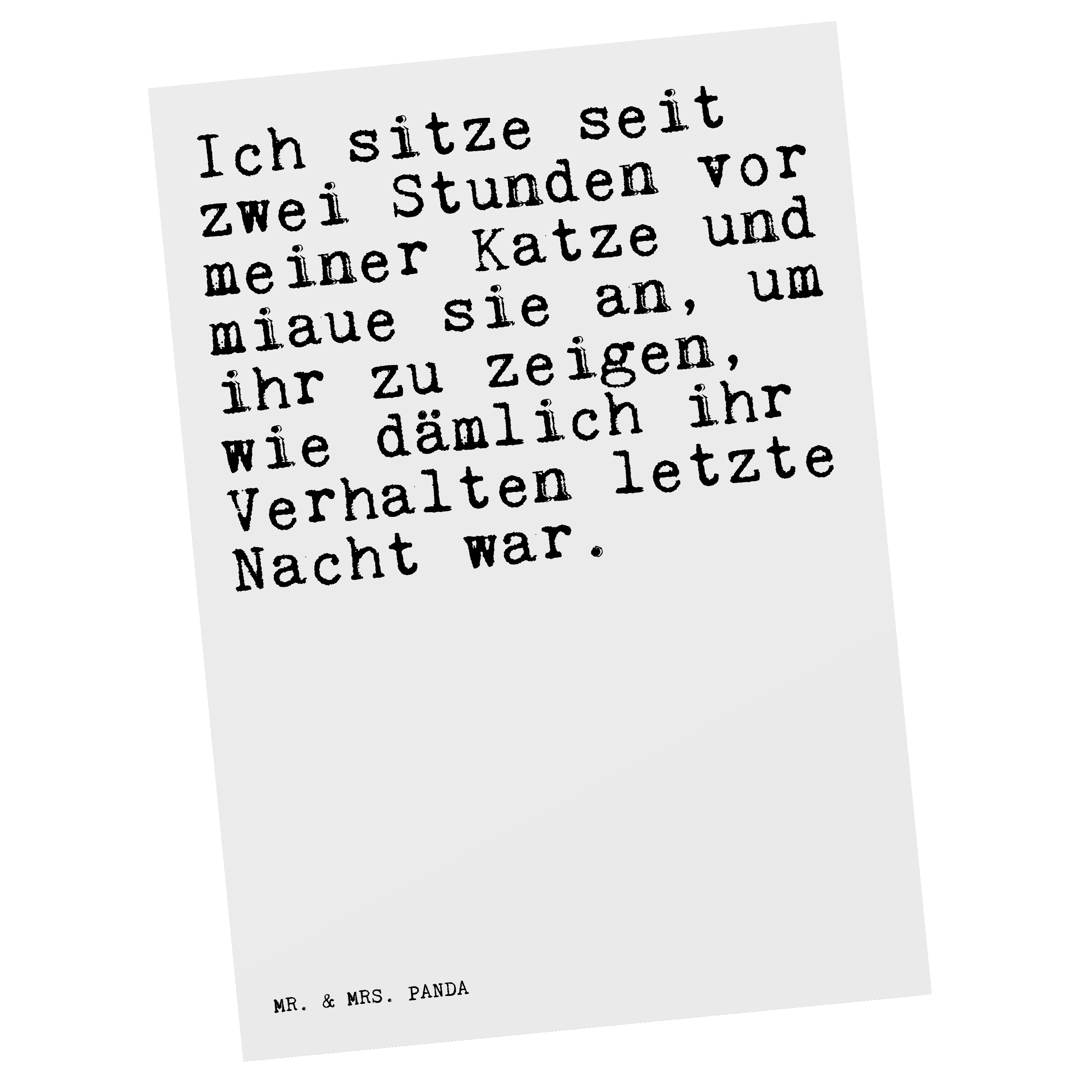 Postkarte Sprüche und Zitate Ich sitze seit zwei Stunden vor meiner Katze und miaue sie an, um ihr zu zeigen, wie dämlich ihr Verhalten letzte Nacht war.