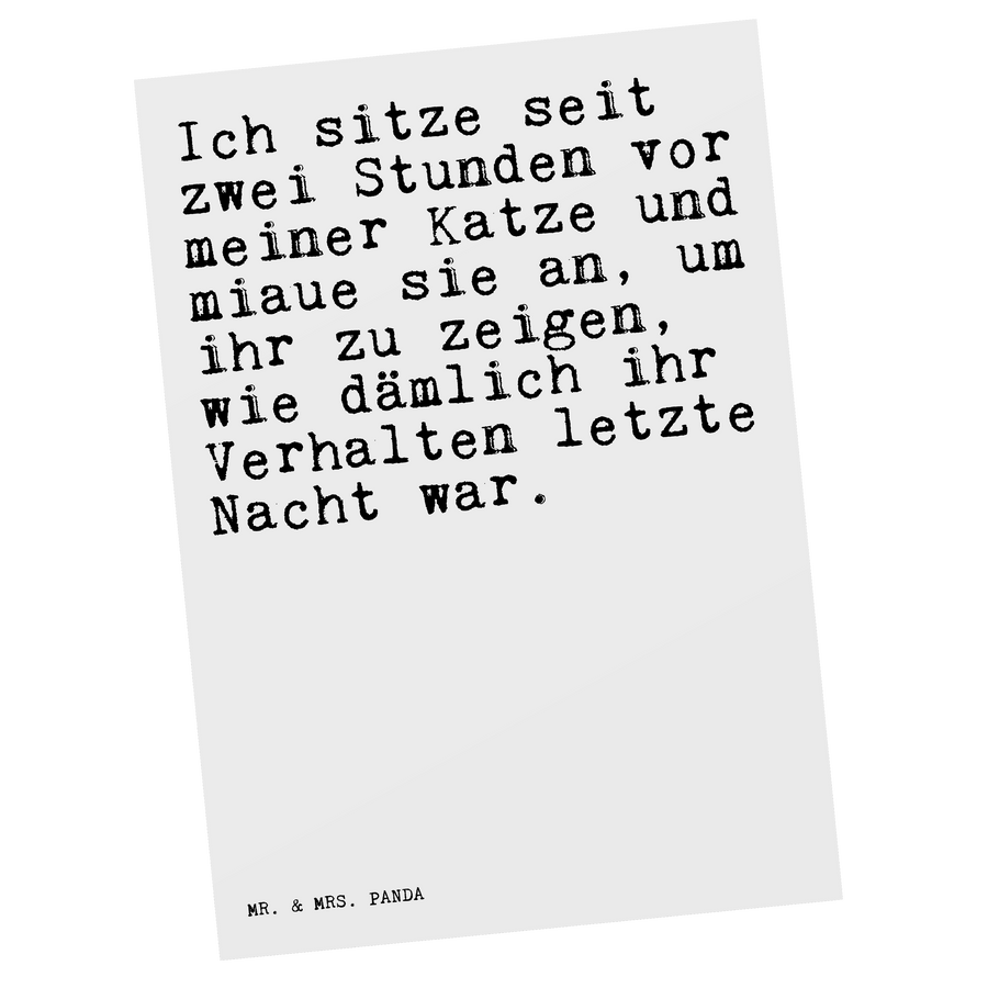 Postkarte Sprüche und Zitate Ich sitze seit zwei Stunden vor meiner Katze und miaue sie an, um ihr zu zeigen, wie dämlich ihr Verhalten letzte Nacht war. Geschenkkarte, Grußkarte, Karte, Einladung, Ansichtskarte, Geburtstagskarte, Einladungskarte, Dankeskarte, Spruch, Sprüche, lustig, Weisheiten, Zitate, Spruch Sprüche Weisheiten Zitate Lustig Weisheit Worte